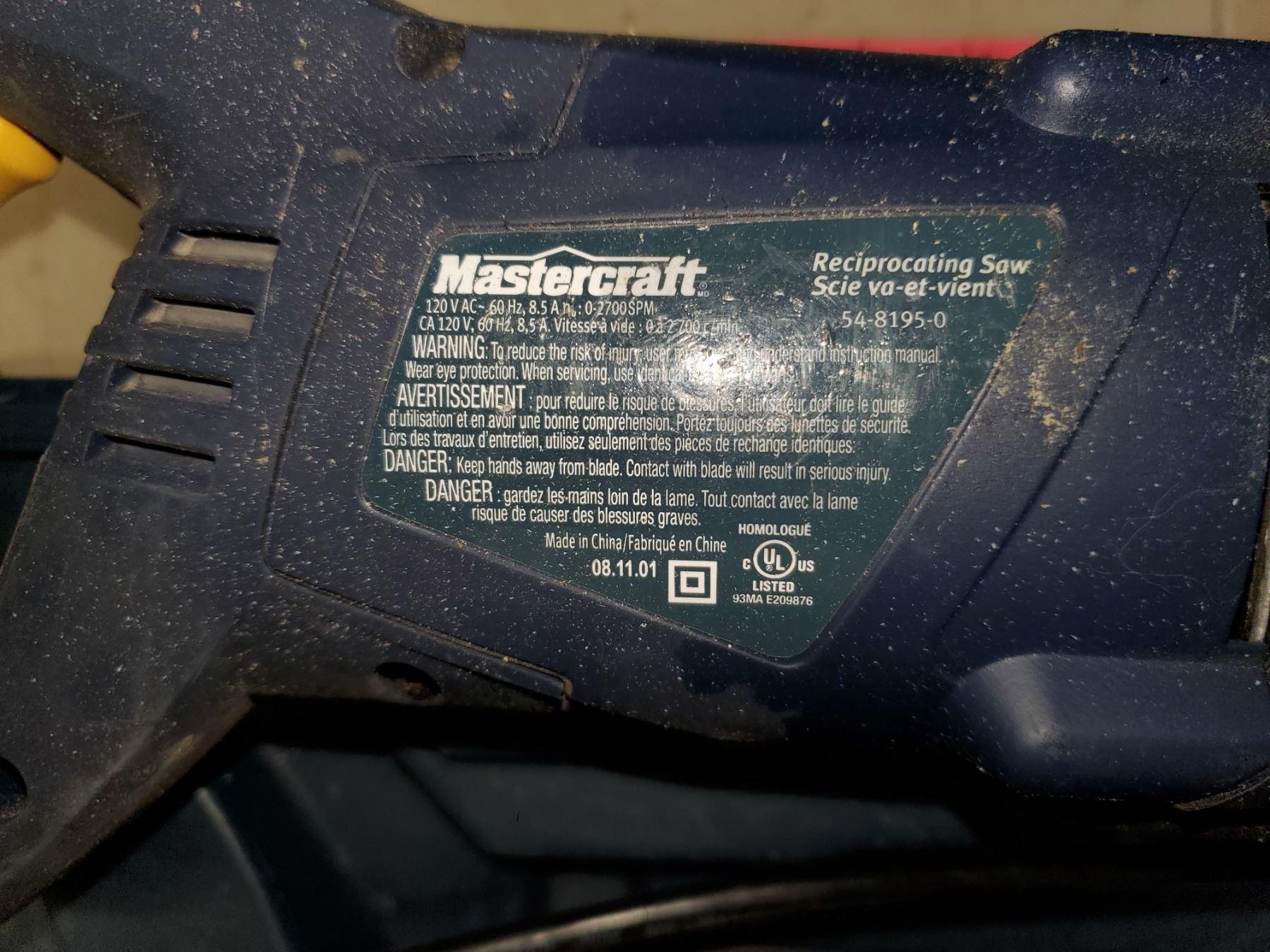 Mastercraft reciprocating saw in case