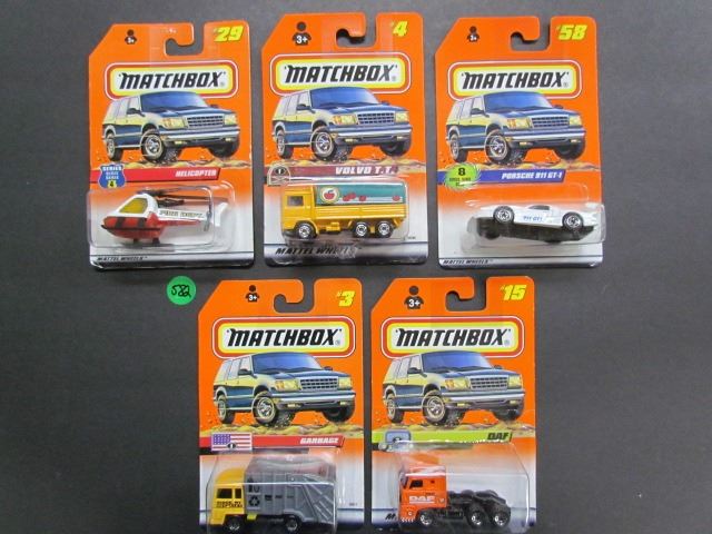 Matchbox Helicopter #29 Series 4, Volvo TT #4, Porsche 911 GT-1 #58 series 8, Garbage Truck Ridge NY #3, DAF 3300 SC #15