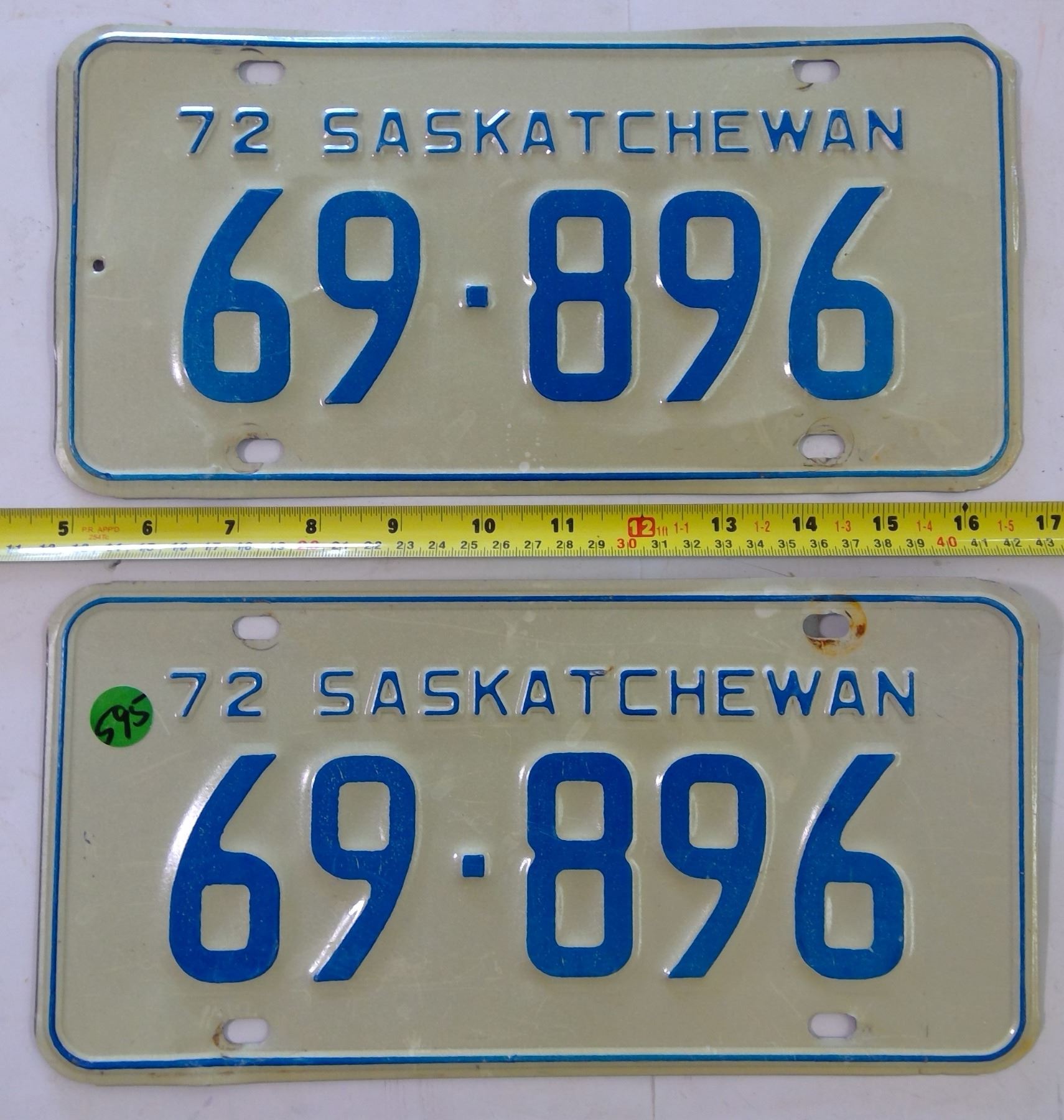 Matched Pair Sask 1972 Plates