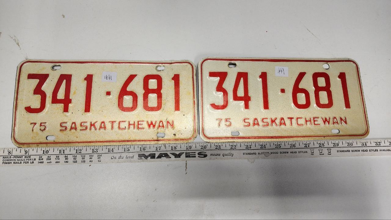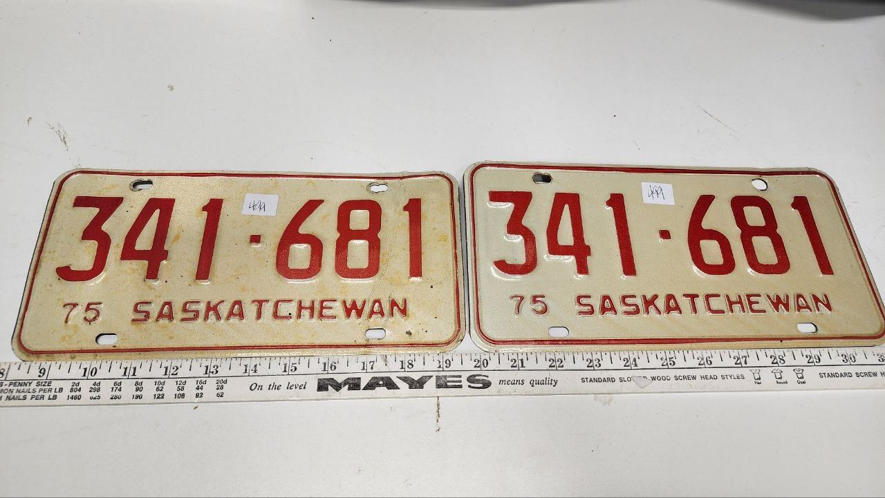 Matched Pair of 1975 Saskatchewan license plates
