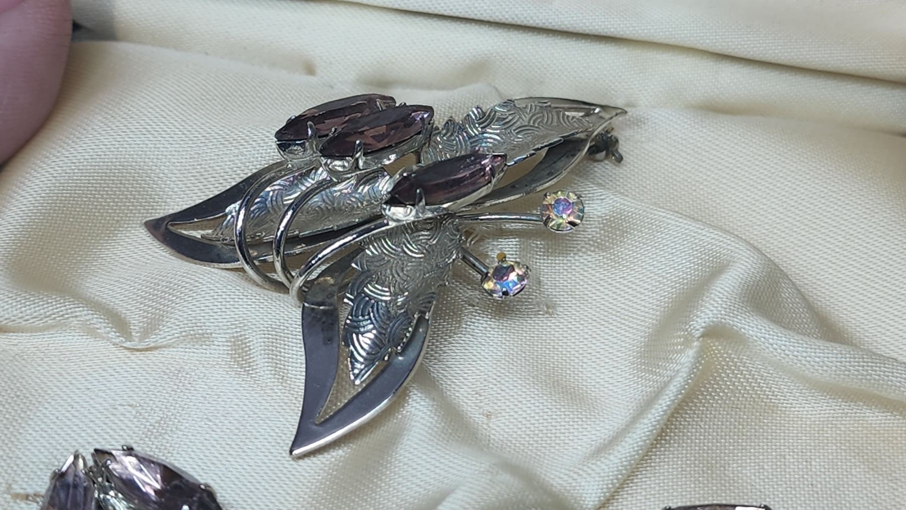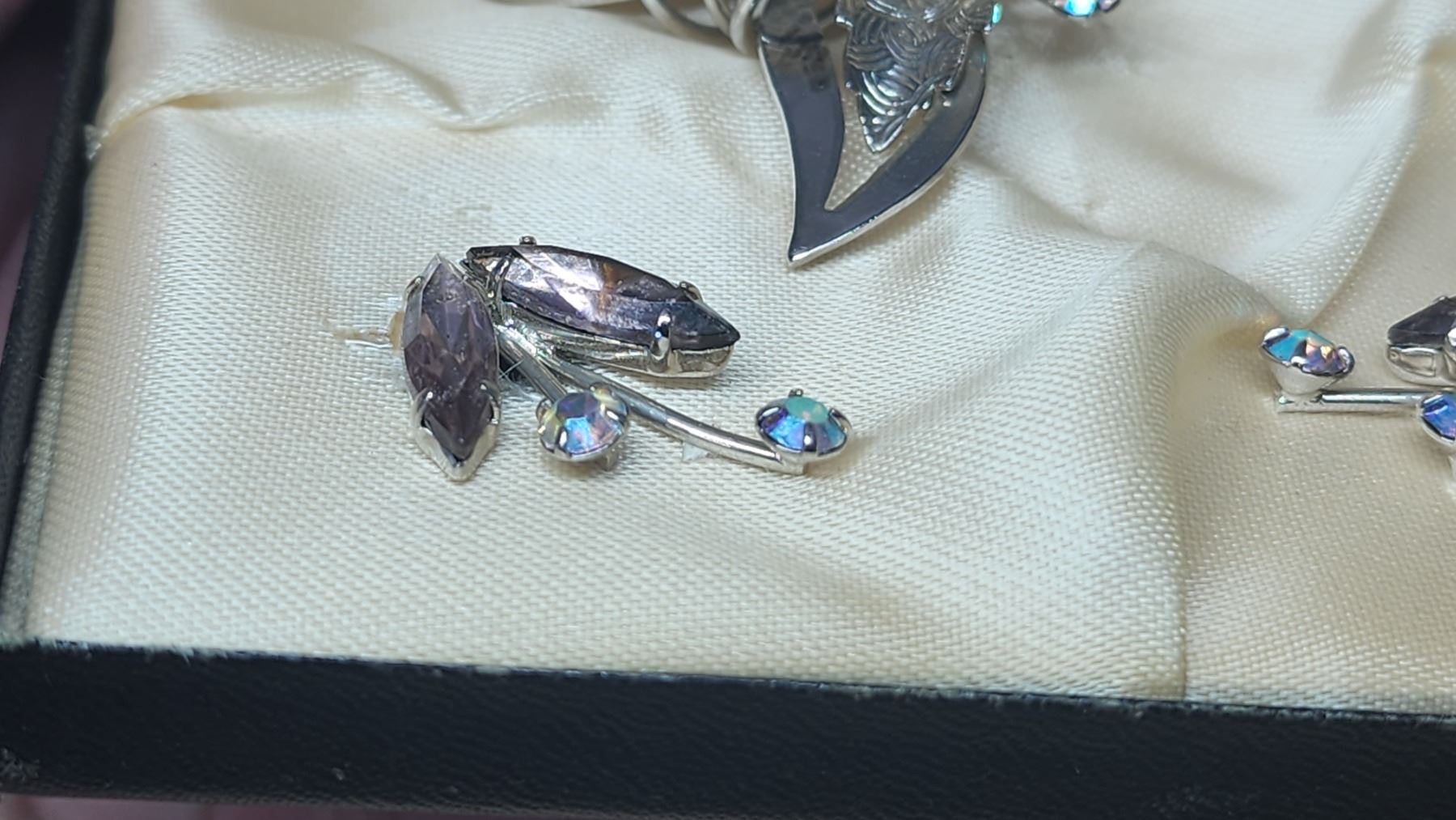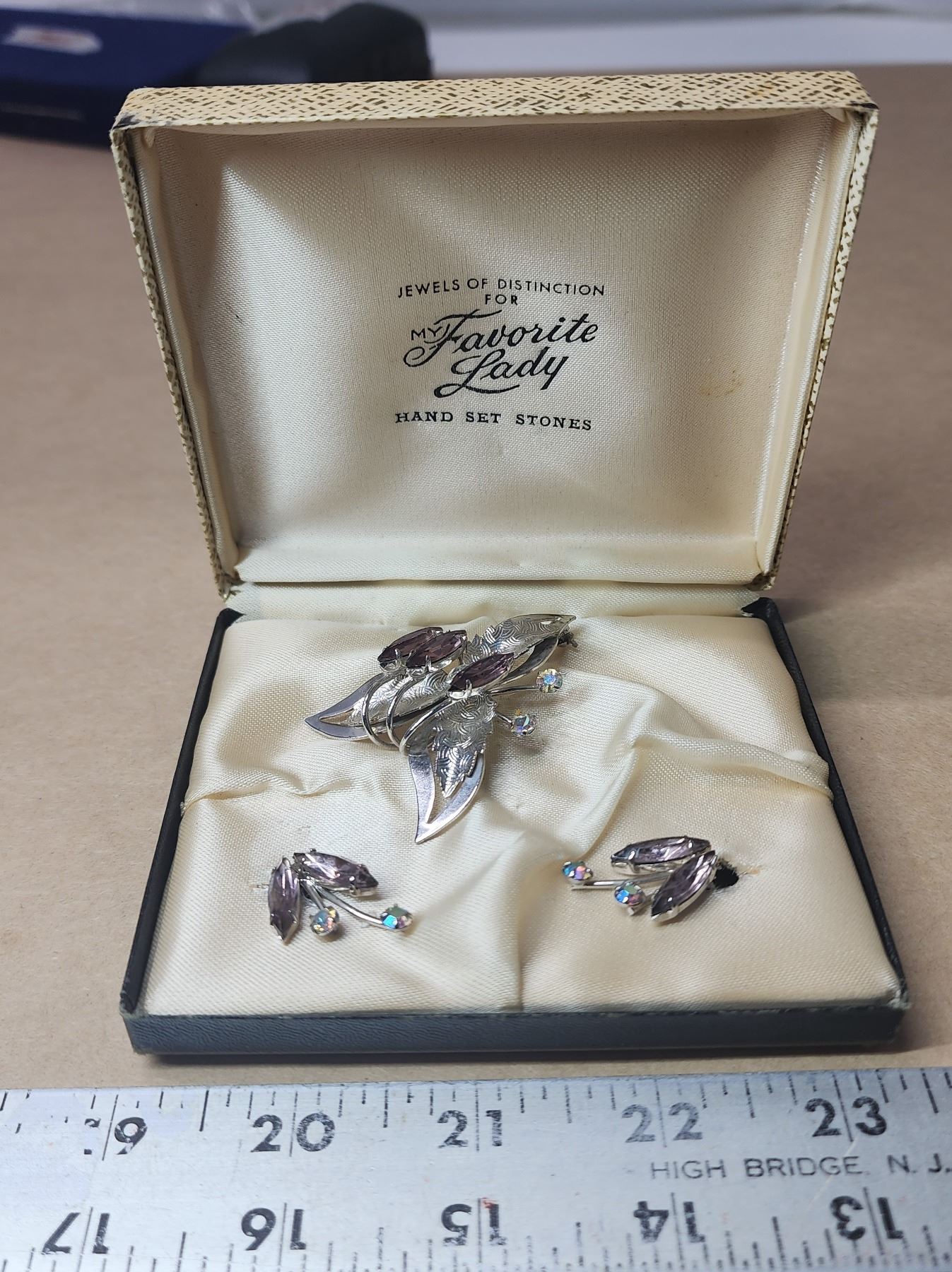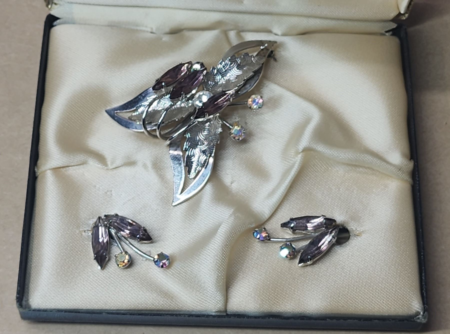 Matching brooch and earring clips - costume rhinestone