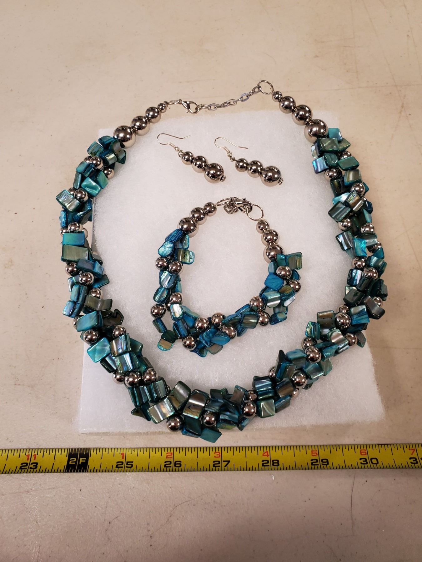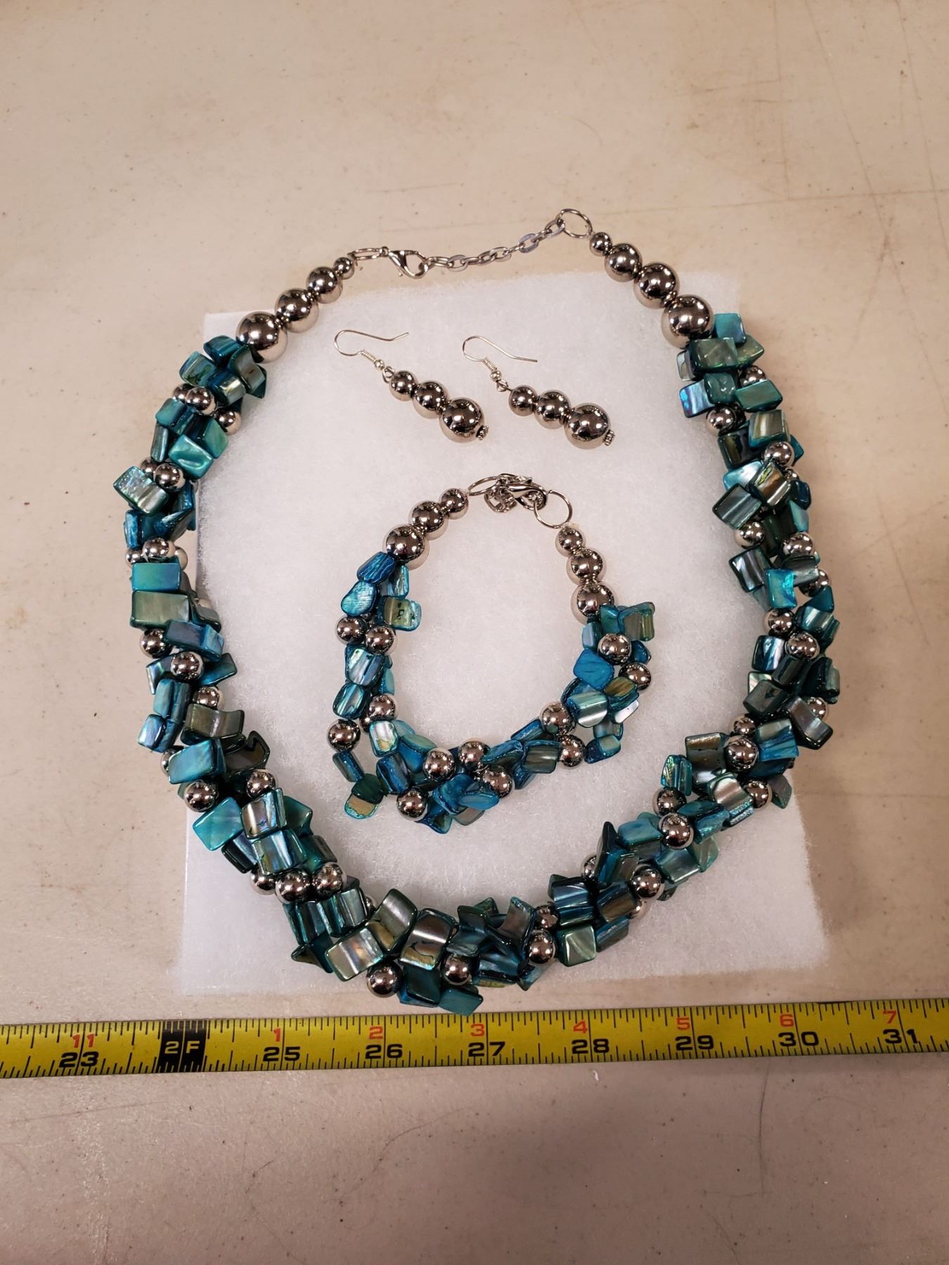 Matching necklace, bracelet & earrings set with box