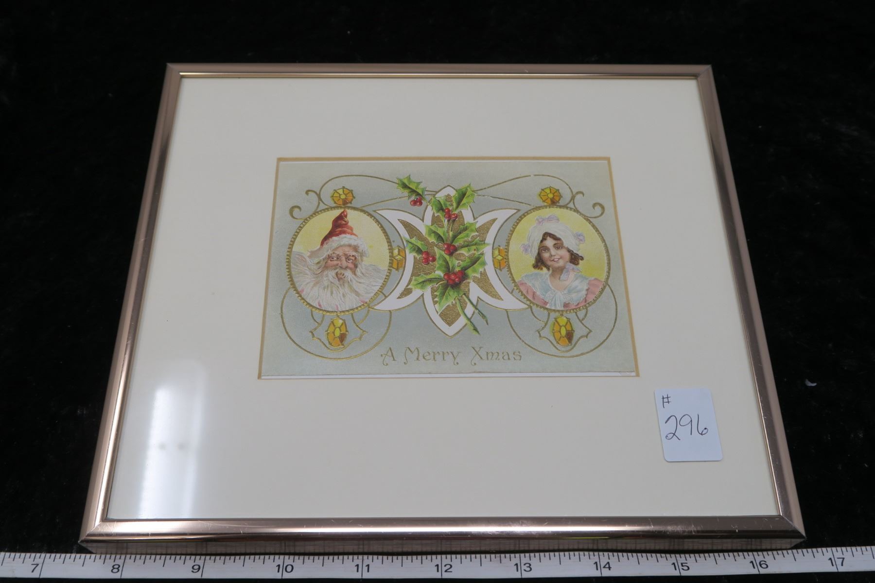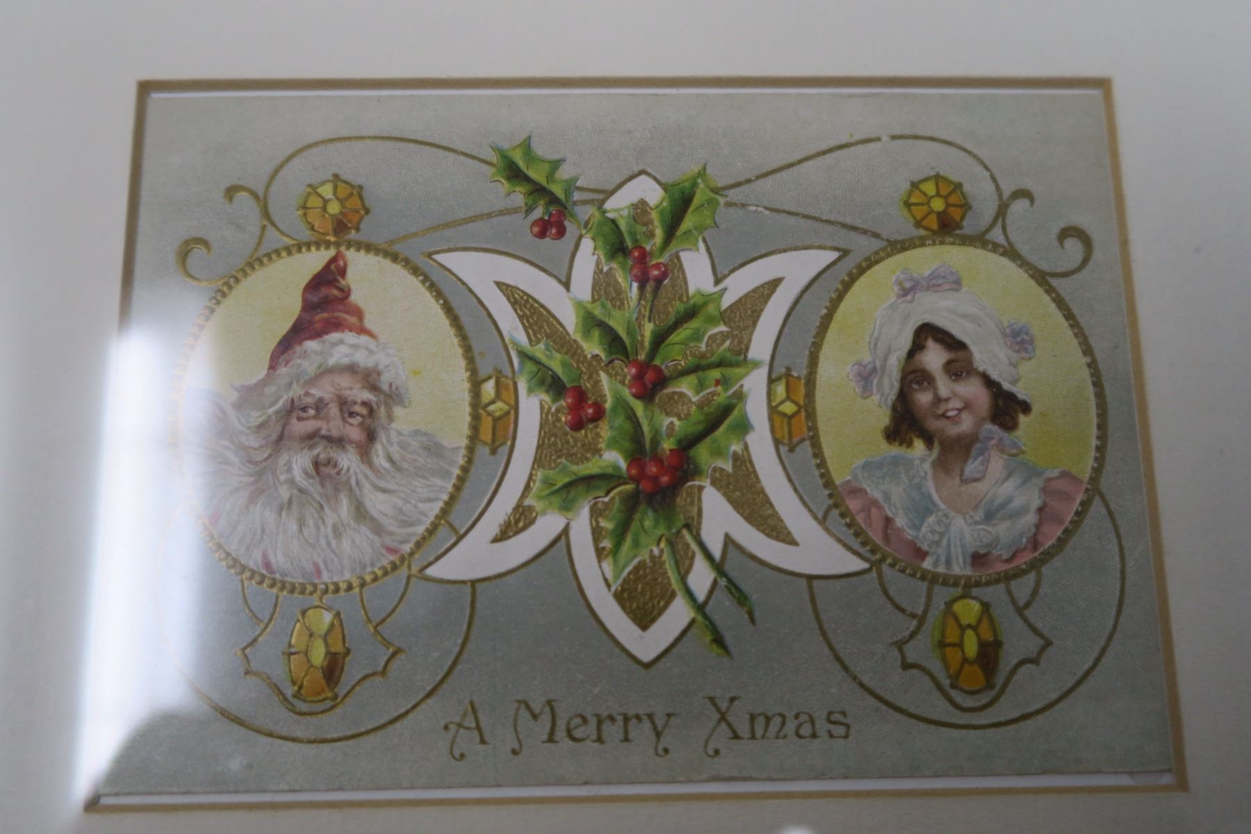 Matted and framed vintage Christmas post card