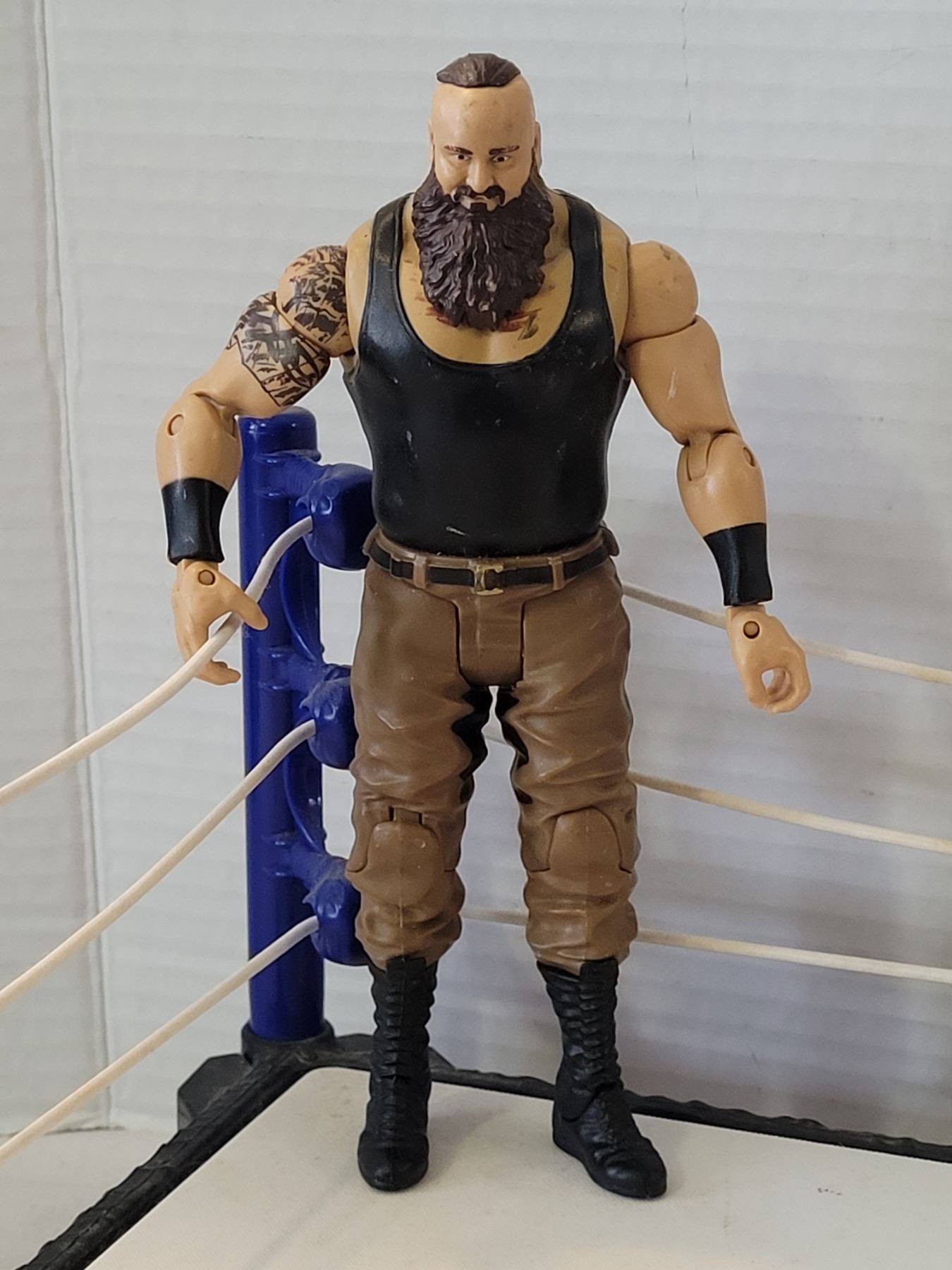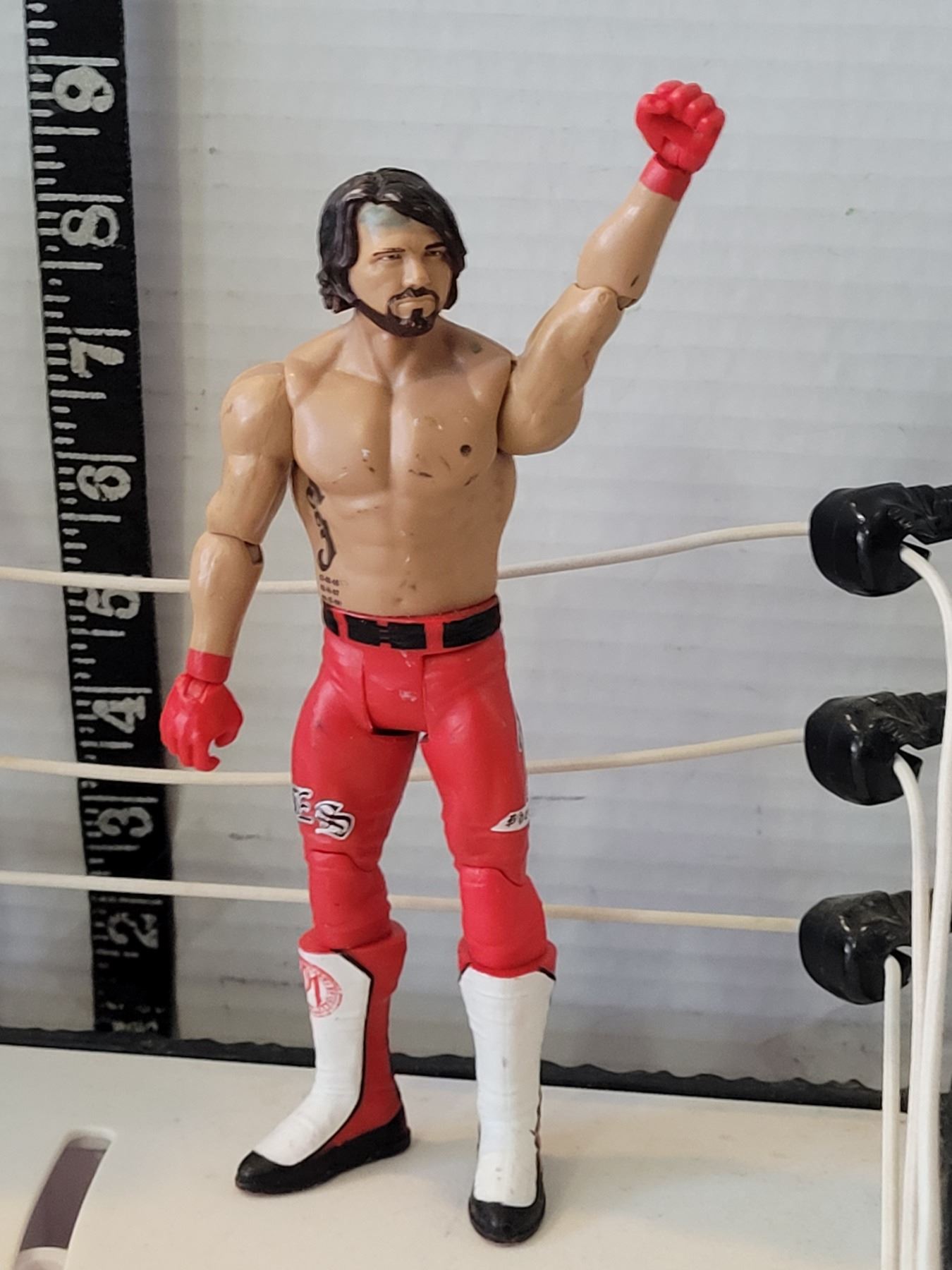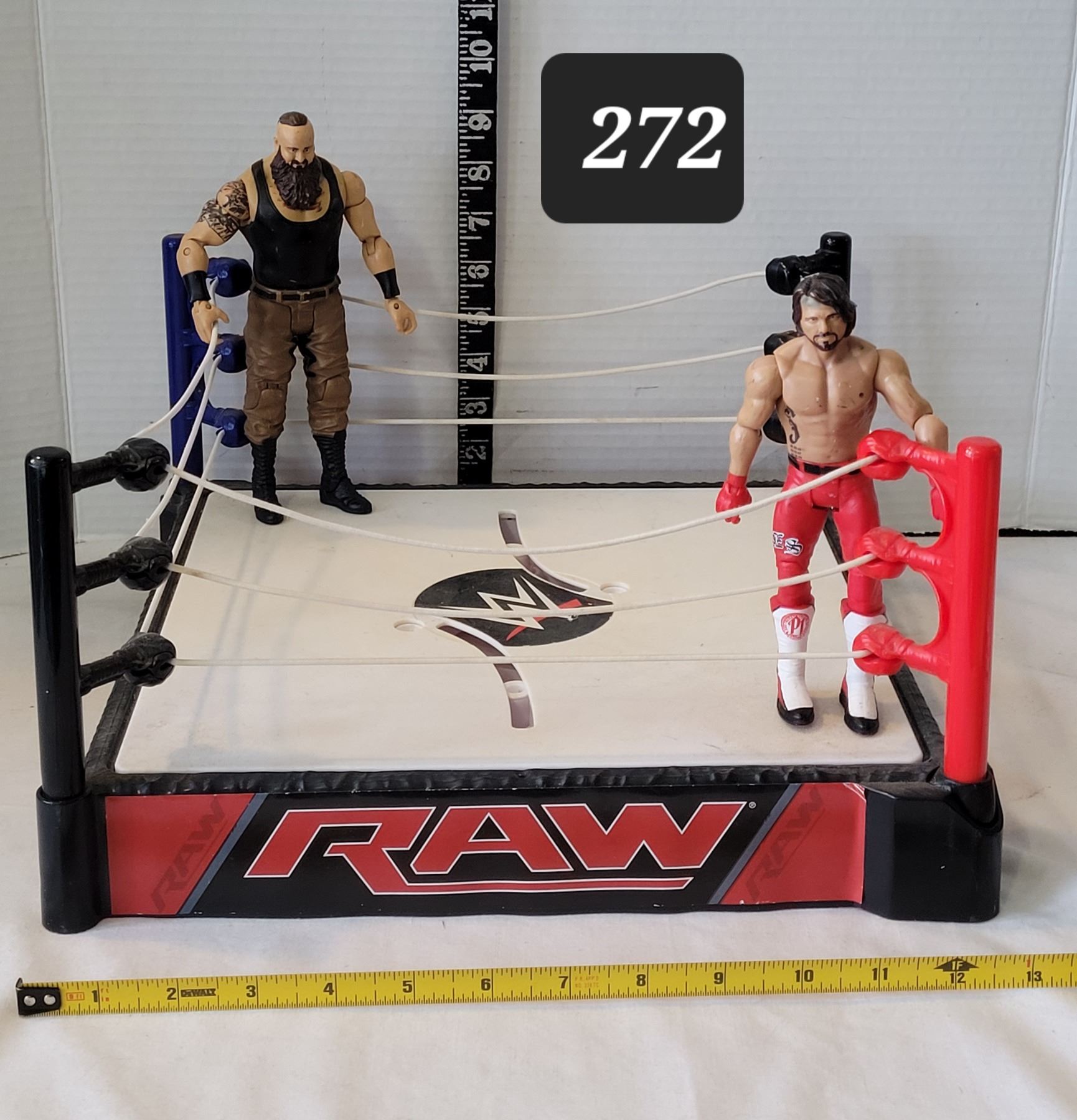 Mattel WWE Raw Ring playset with action figures 2015 Braun Strowman & 2017 AJ Styles.