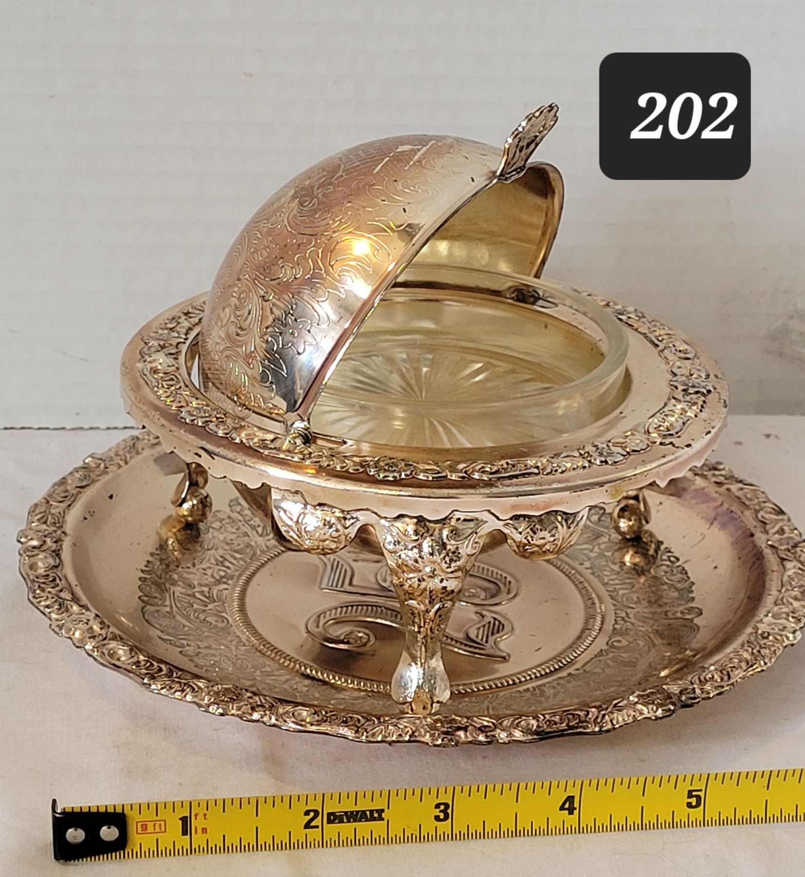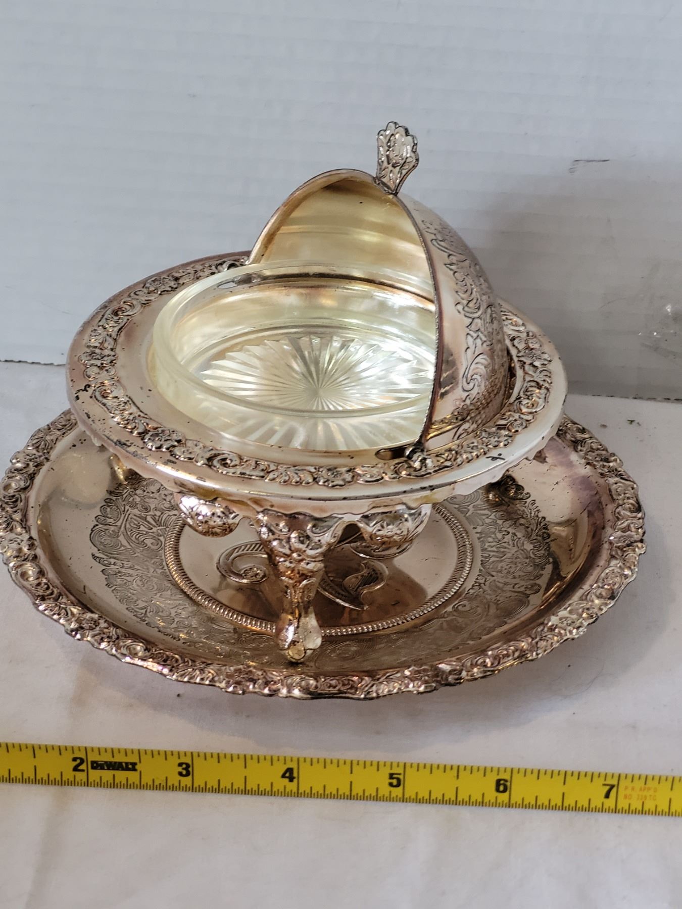 Mayell. EP on steel roll top butter dish on platter. (England)