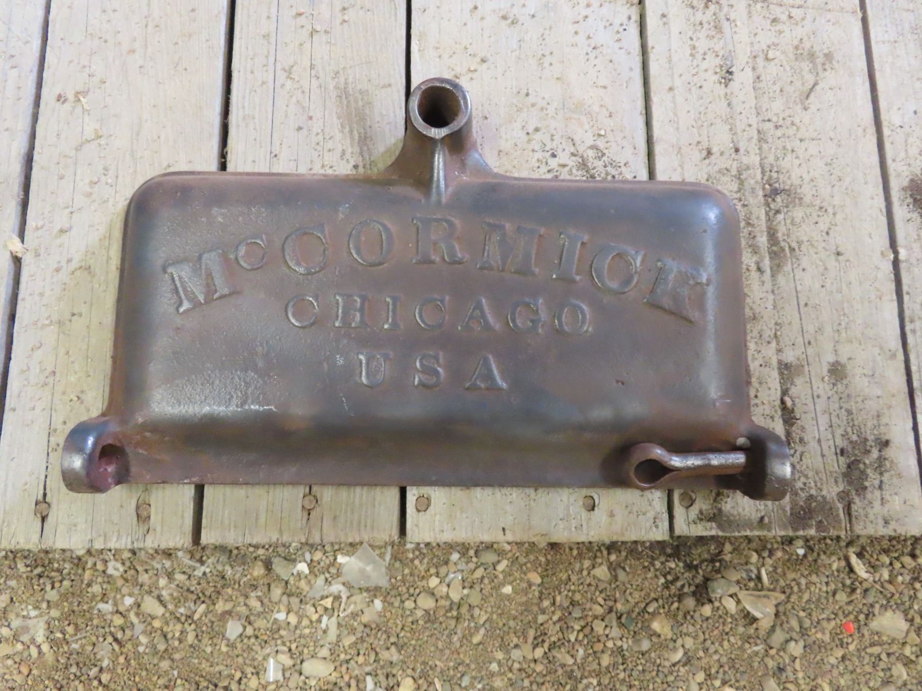 Mc Cormick cast iron tool box mower lid