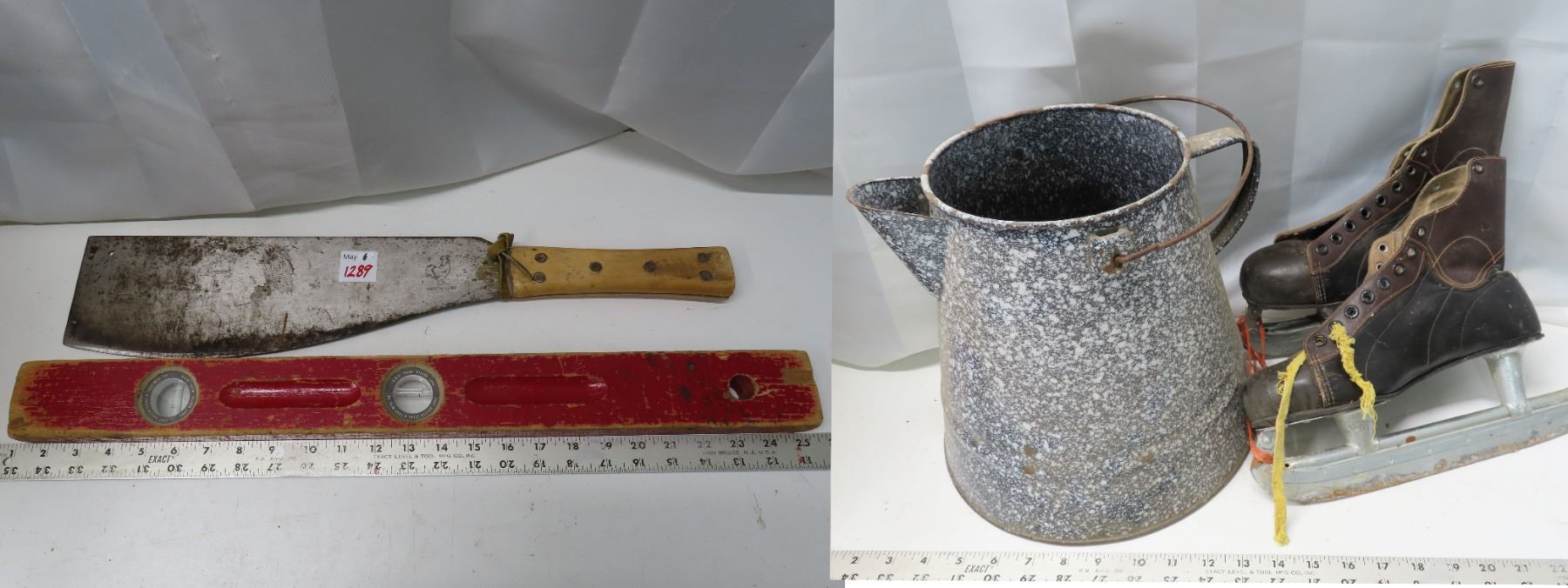 Meat Cleaver + wooden level + Enamel Water pot + Pair of skates