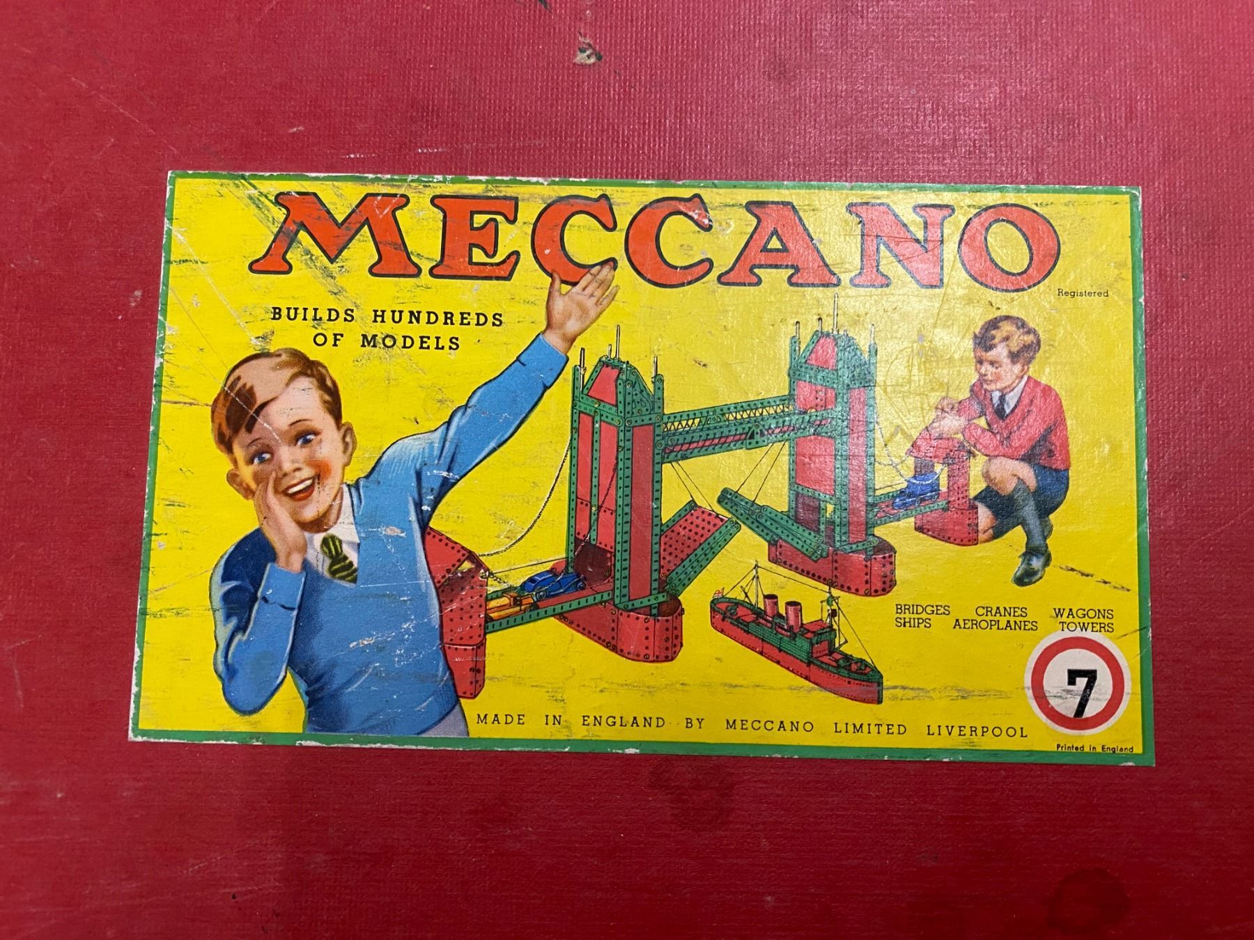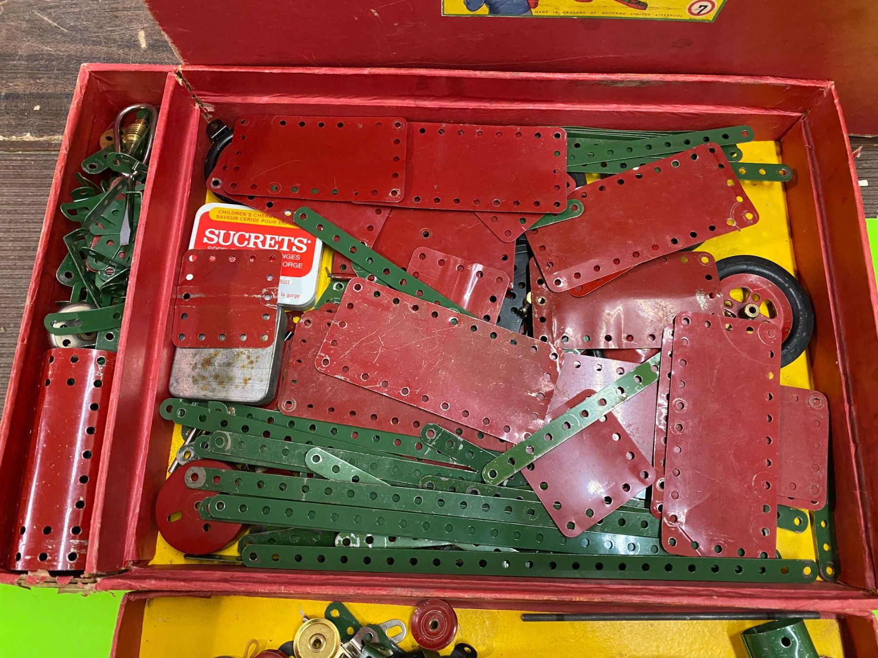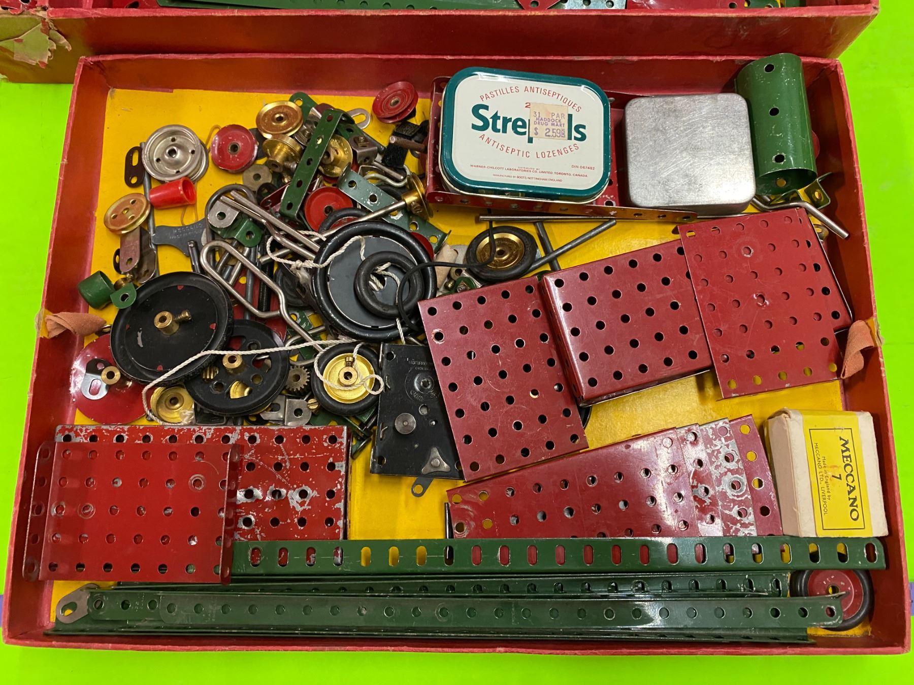 Meccano #7 Original Box 2 Rows Meccano Pieces