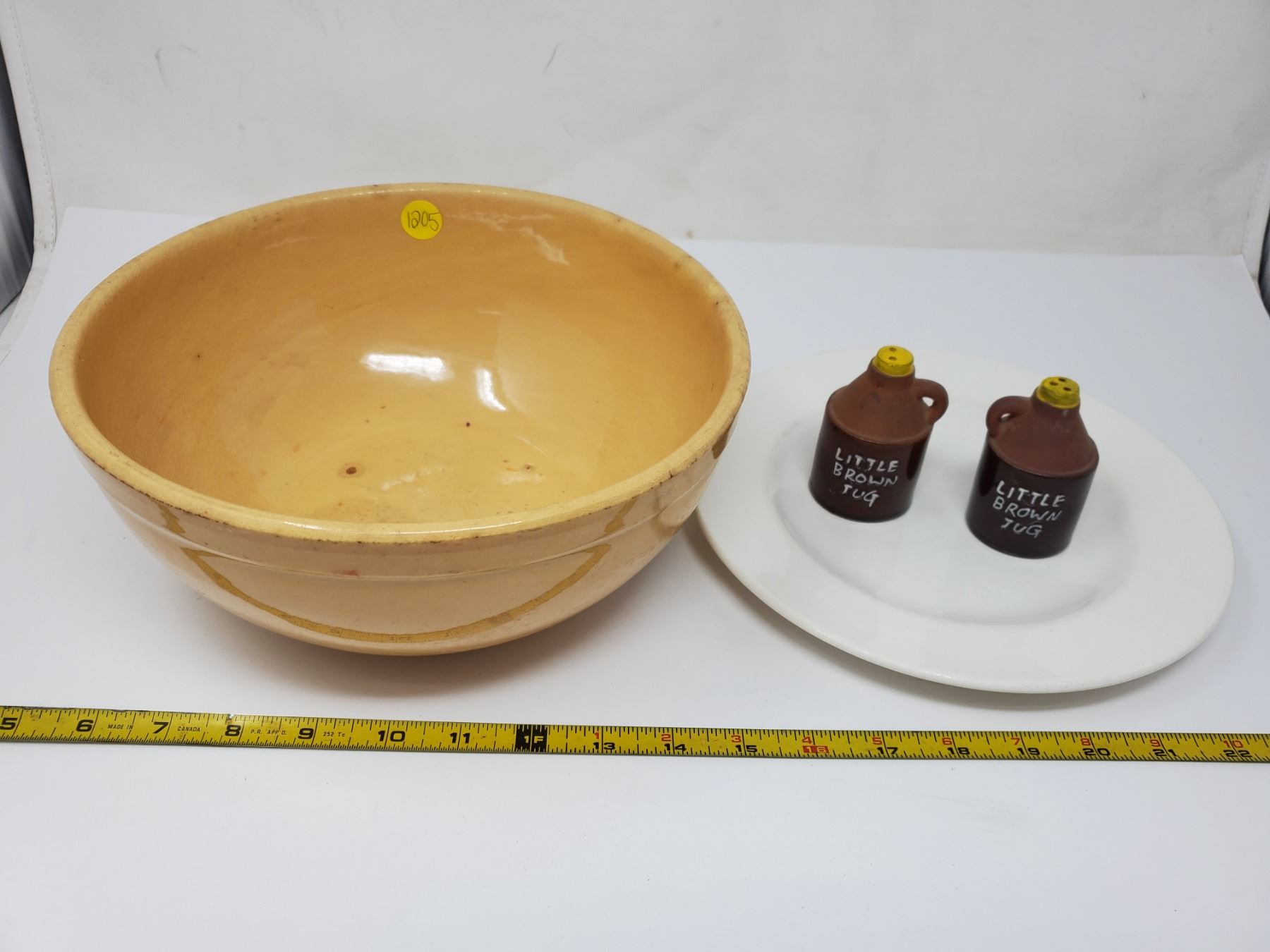 Medalta 10 inch bowl, sleeping Indian plate & pottery salt & pepper