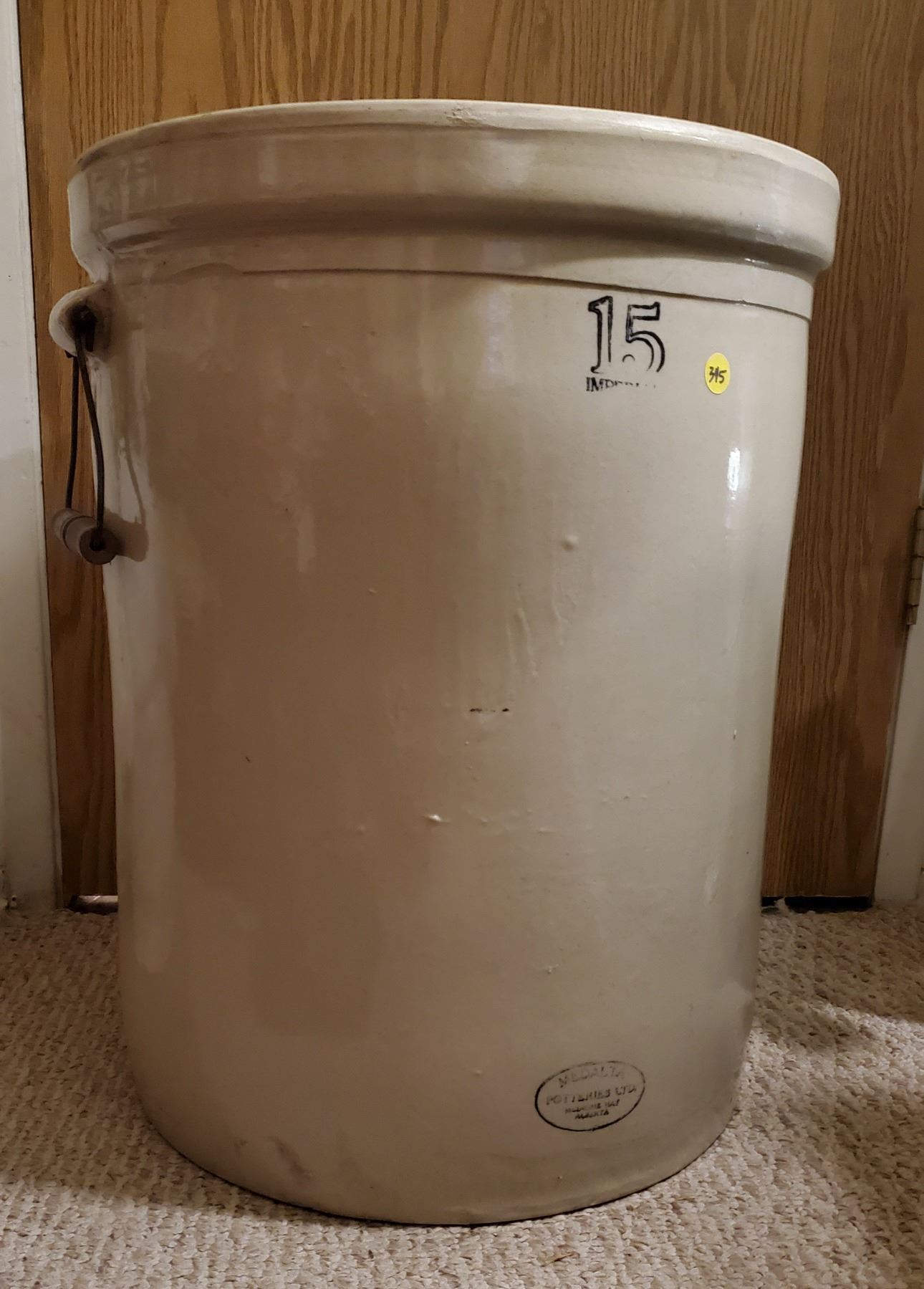Medalta # 15 crock w/ handles * some minor chips & one hairline crack *