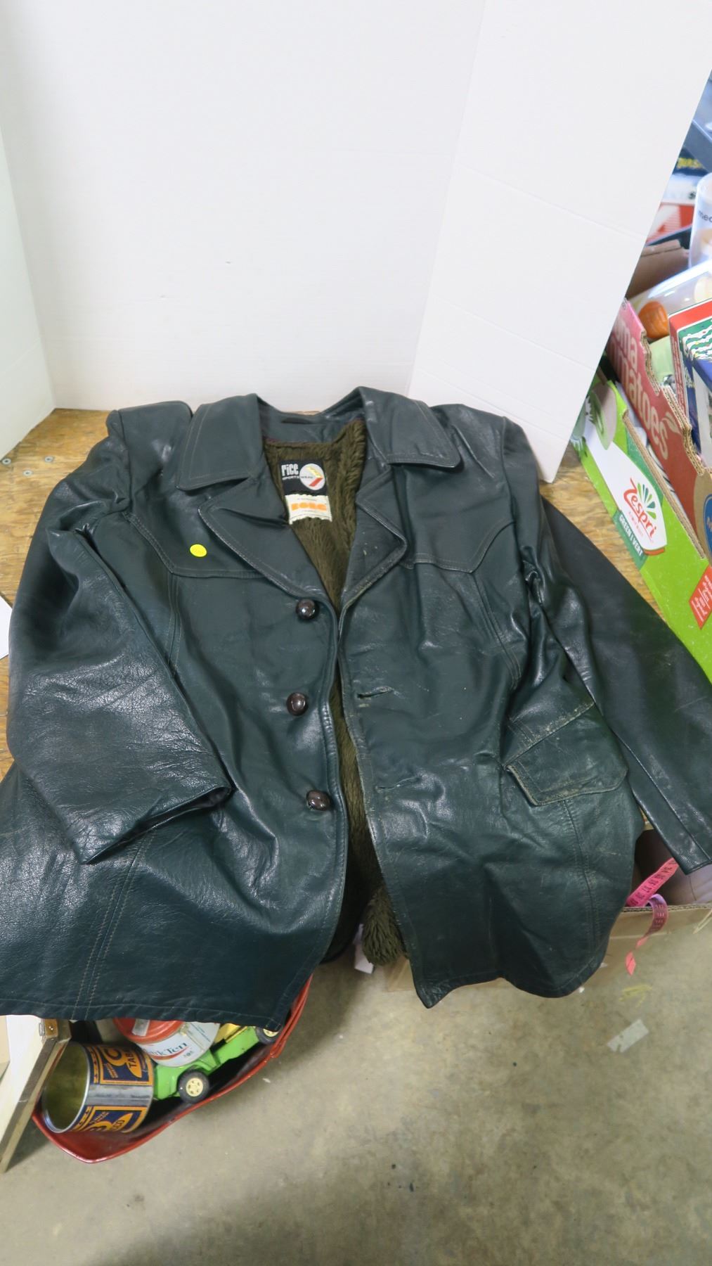 Men's Lined Green Leather Coat and Men's Blue Velvet Velcro Bowtie