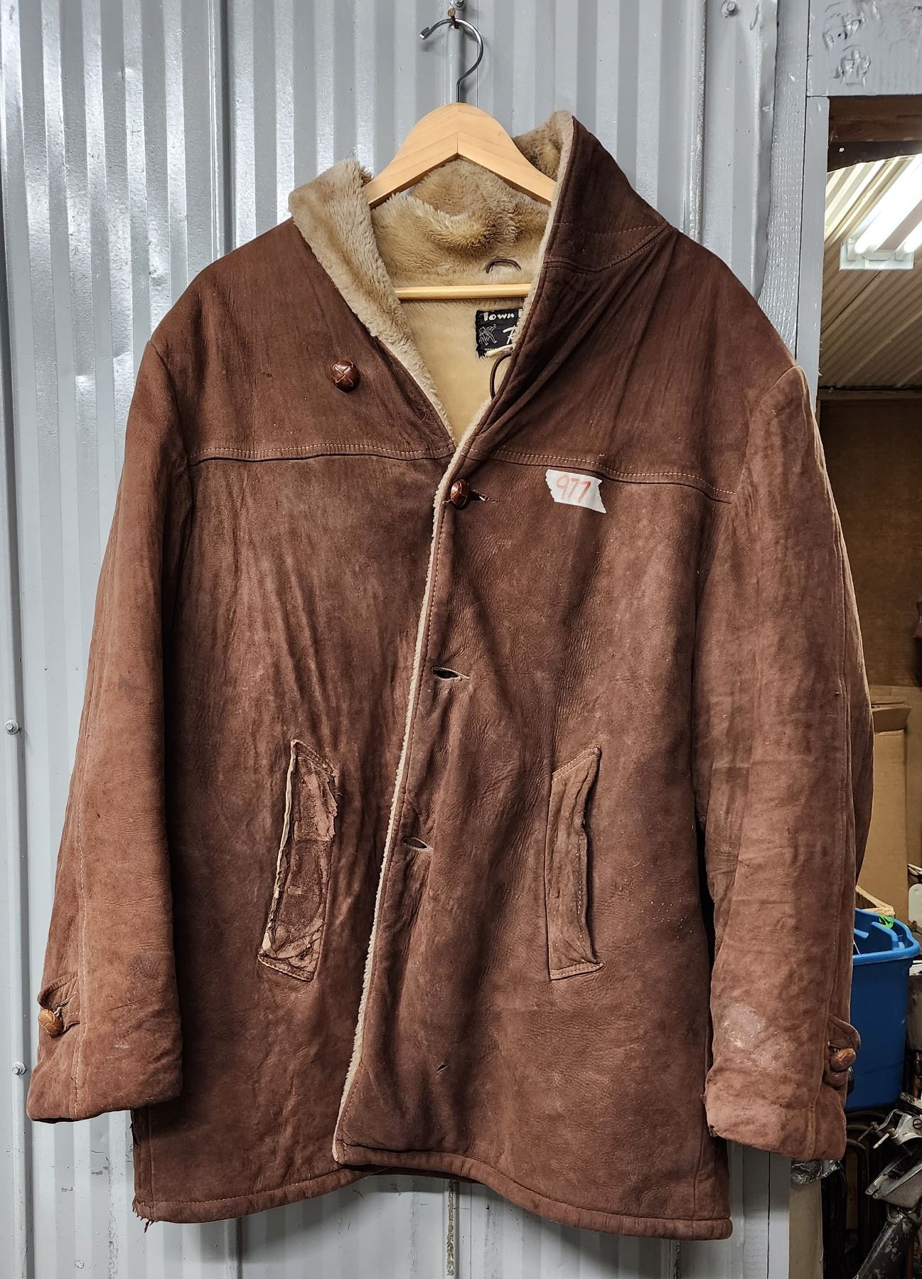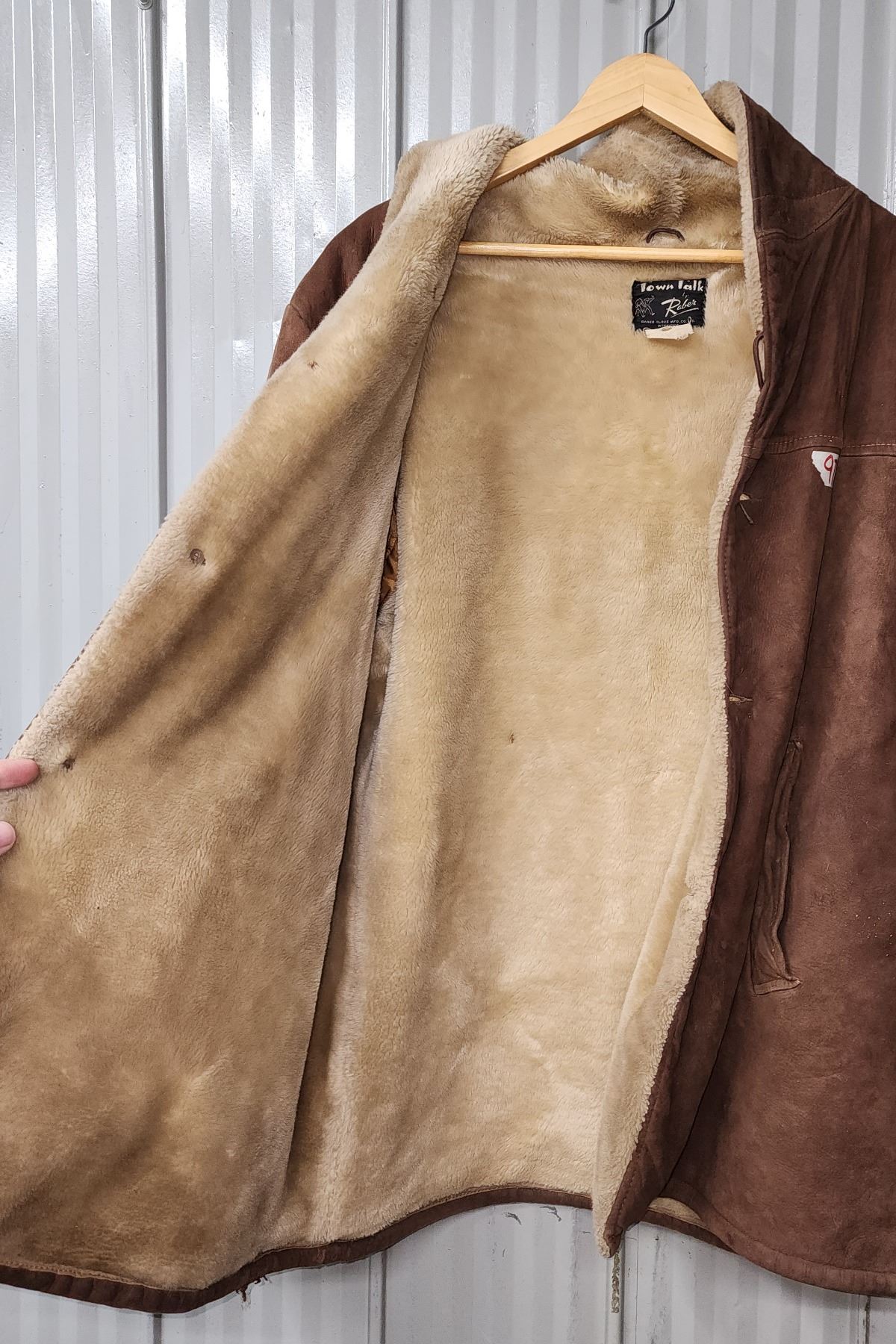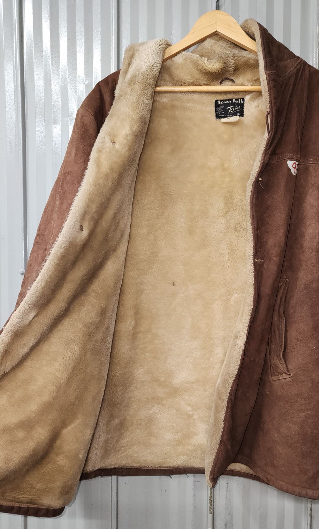 Men’s Suede Fleece Lined Winter Coat. 42 Tall. Brown, good condition.