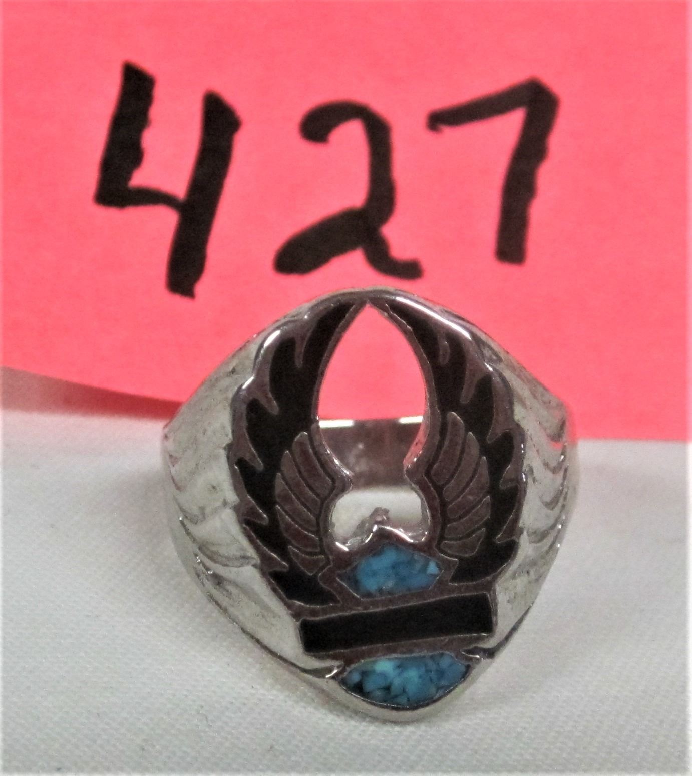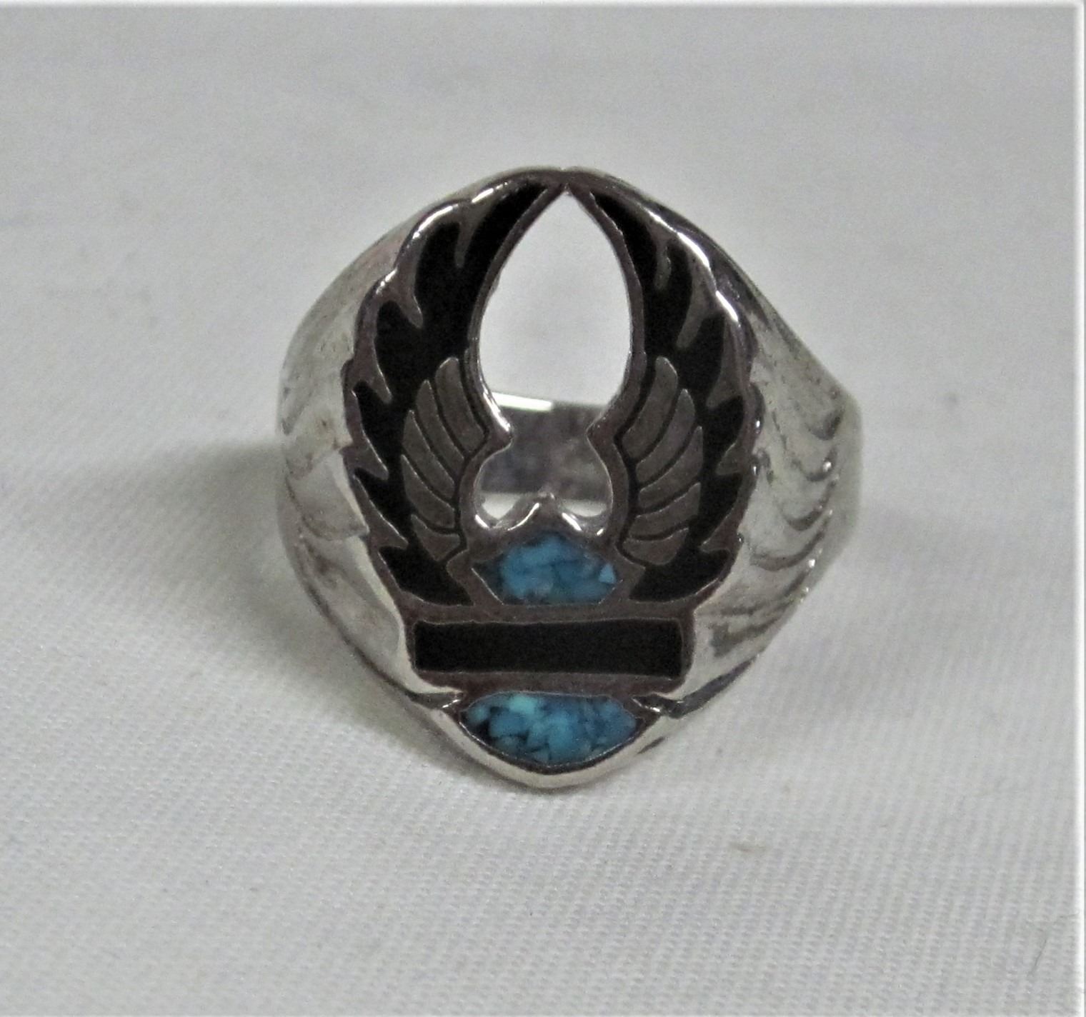 Men's size 11-12 silver plated turqoise & onyx Harley Davidson biker ring