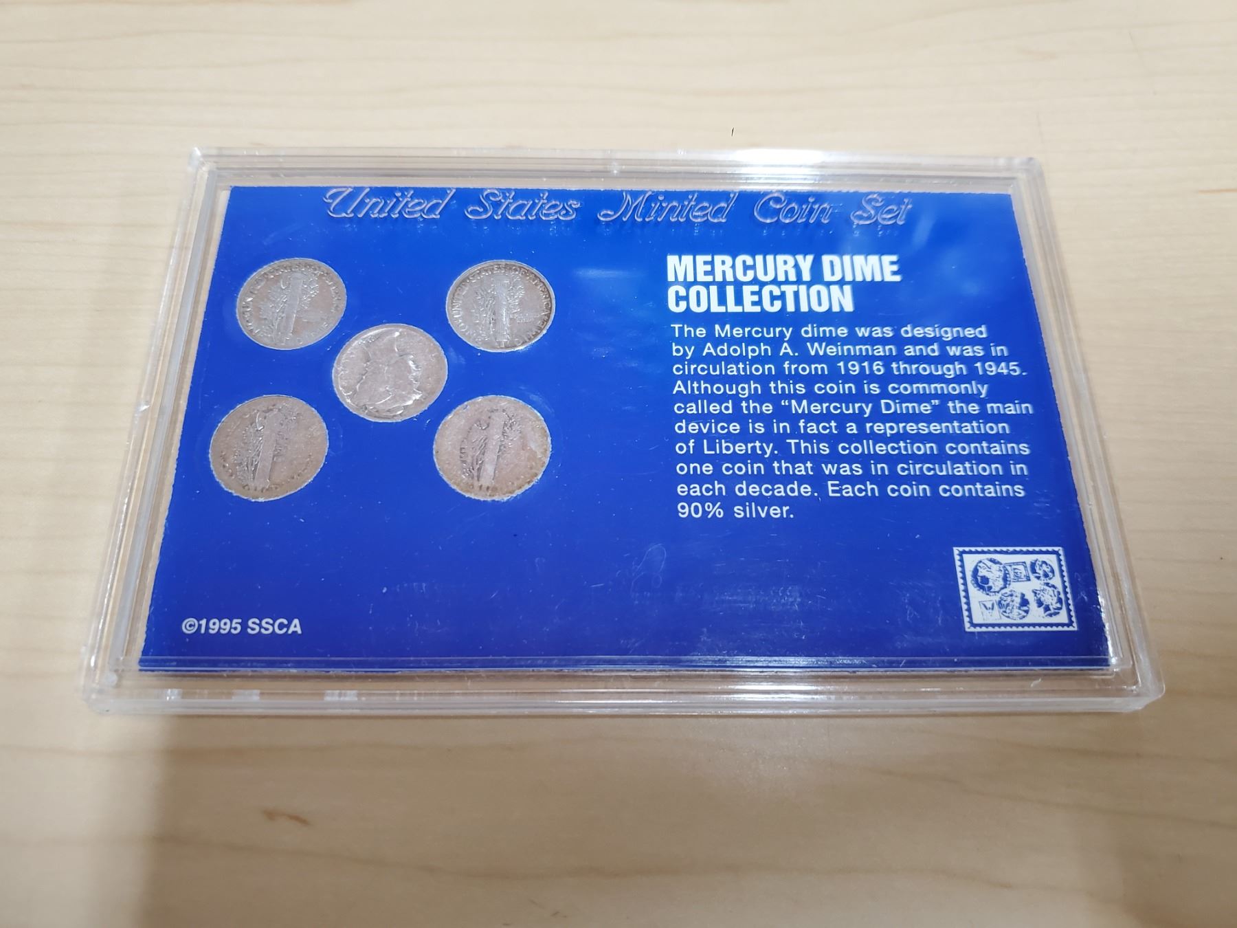 Mercury Dime Collection. 5 U.S. Mercury Dimes including 1917S. Housed in a hard plastic holder.