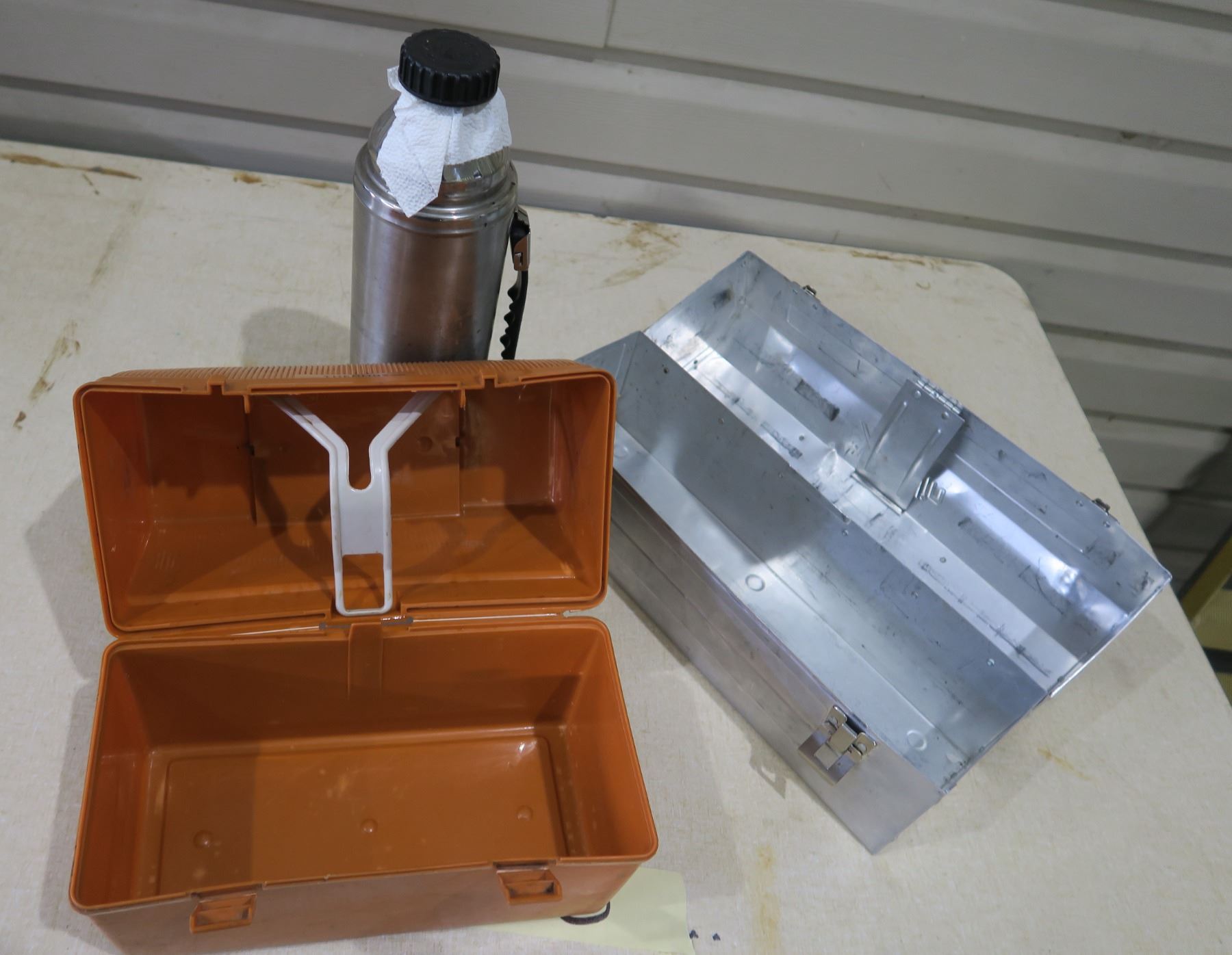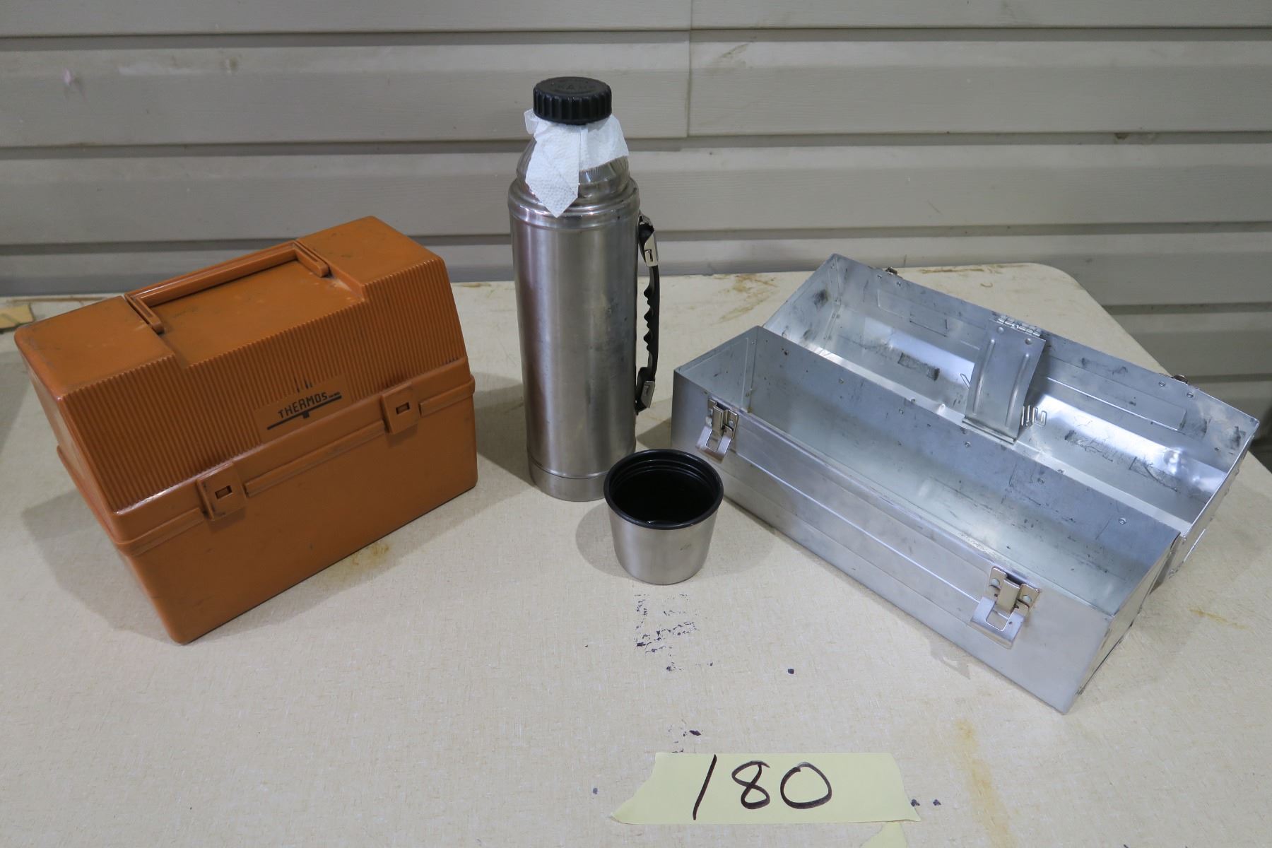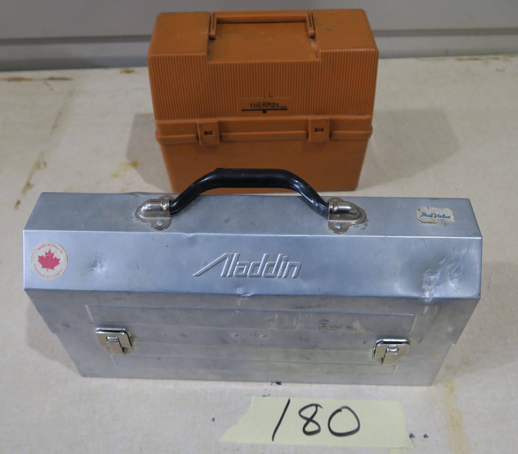 Metal Aladdin Lunch Box, Thermos and Plastic Lunch Box