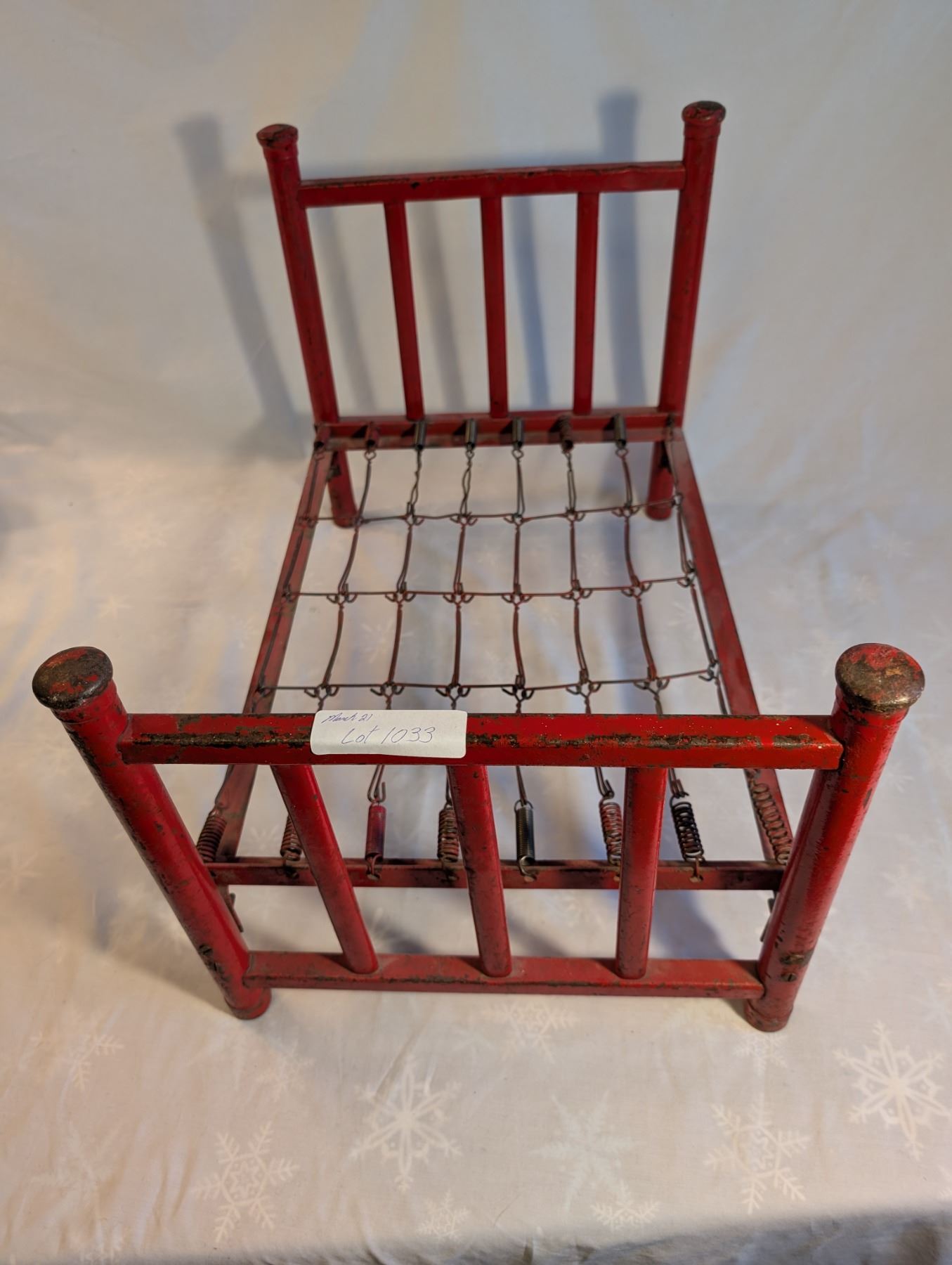 Metal Doll Bed 1920's Original Red Paint.