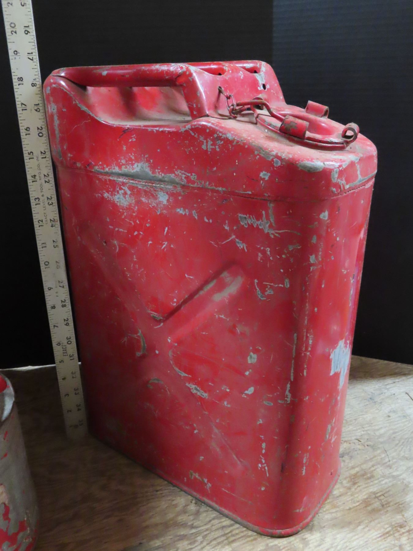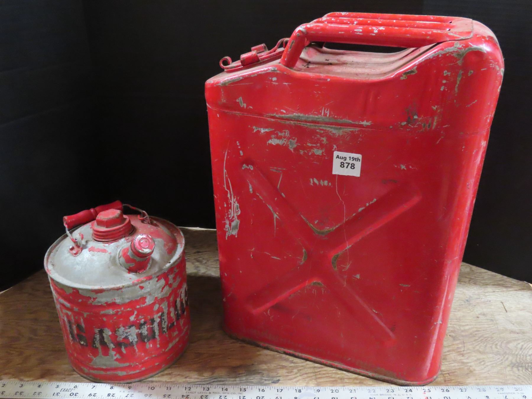 Metal Gas Can (5 Gallon) & Small Vintage Metal Gas Can