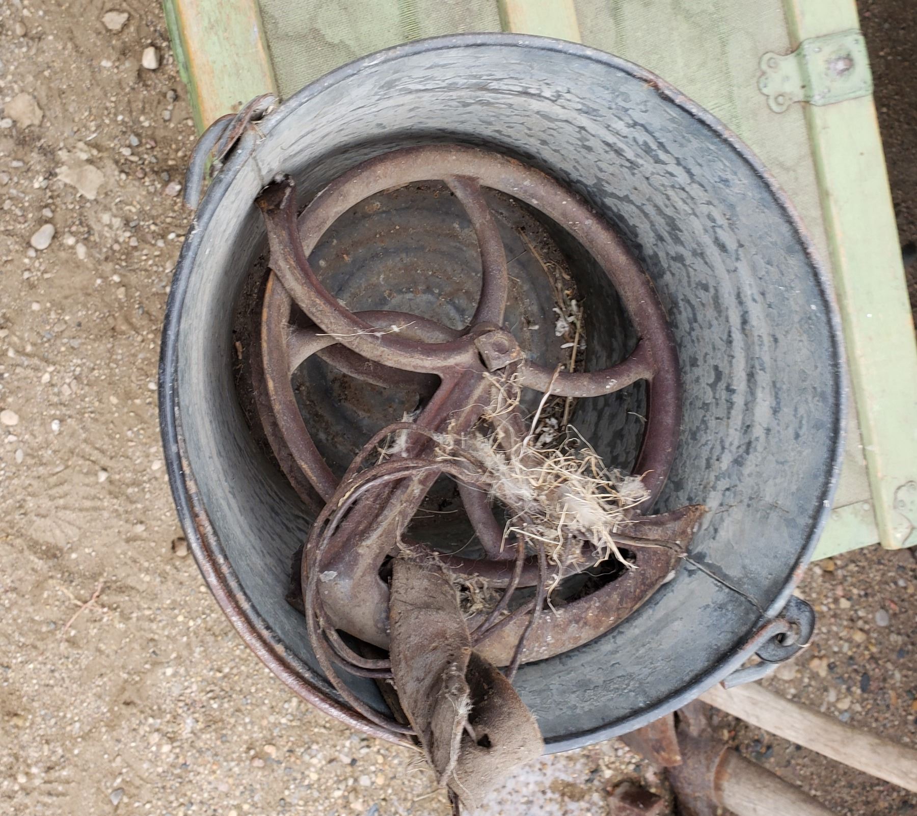 Metal Pail & Well Pulley -(Broken)