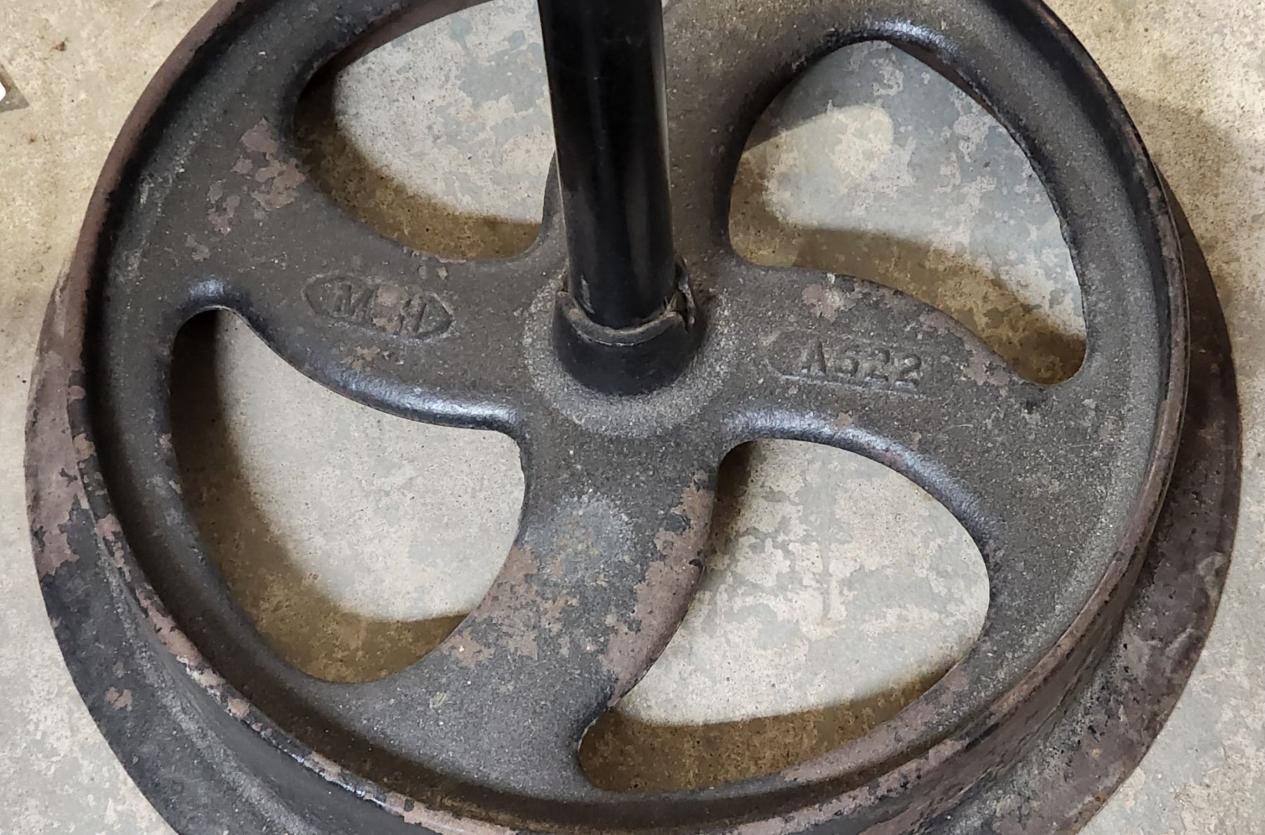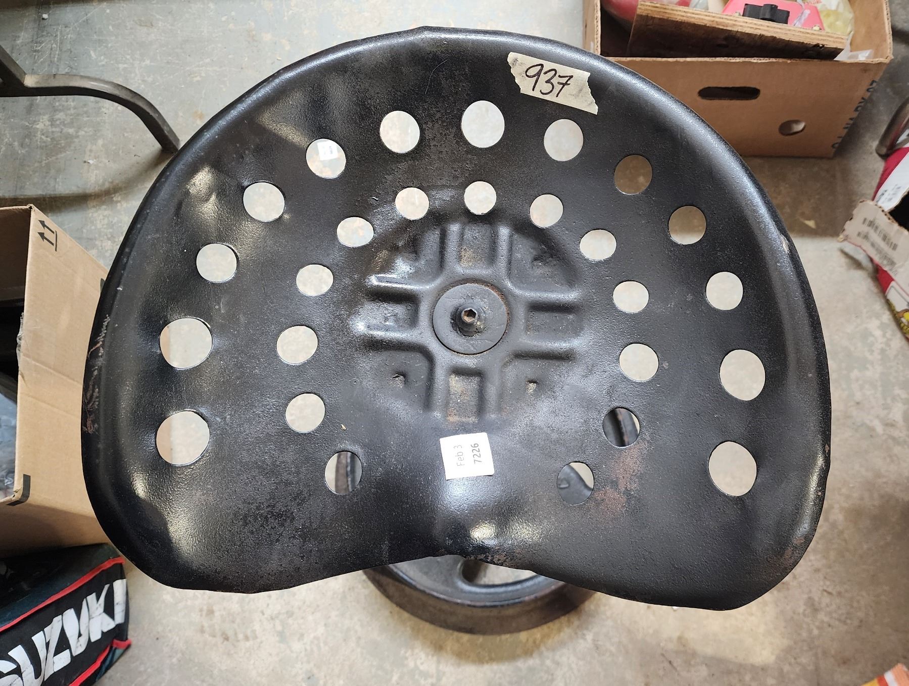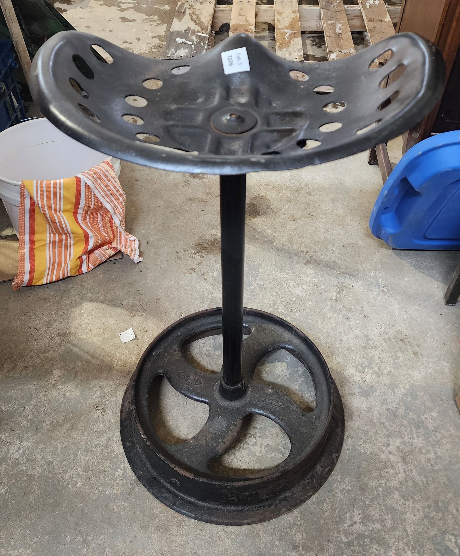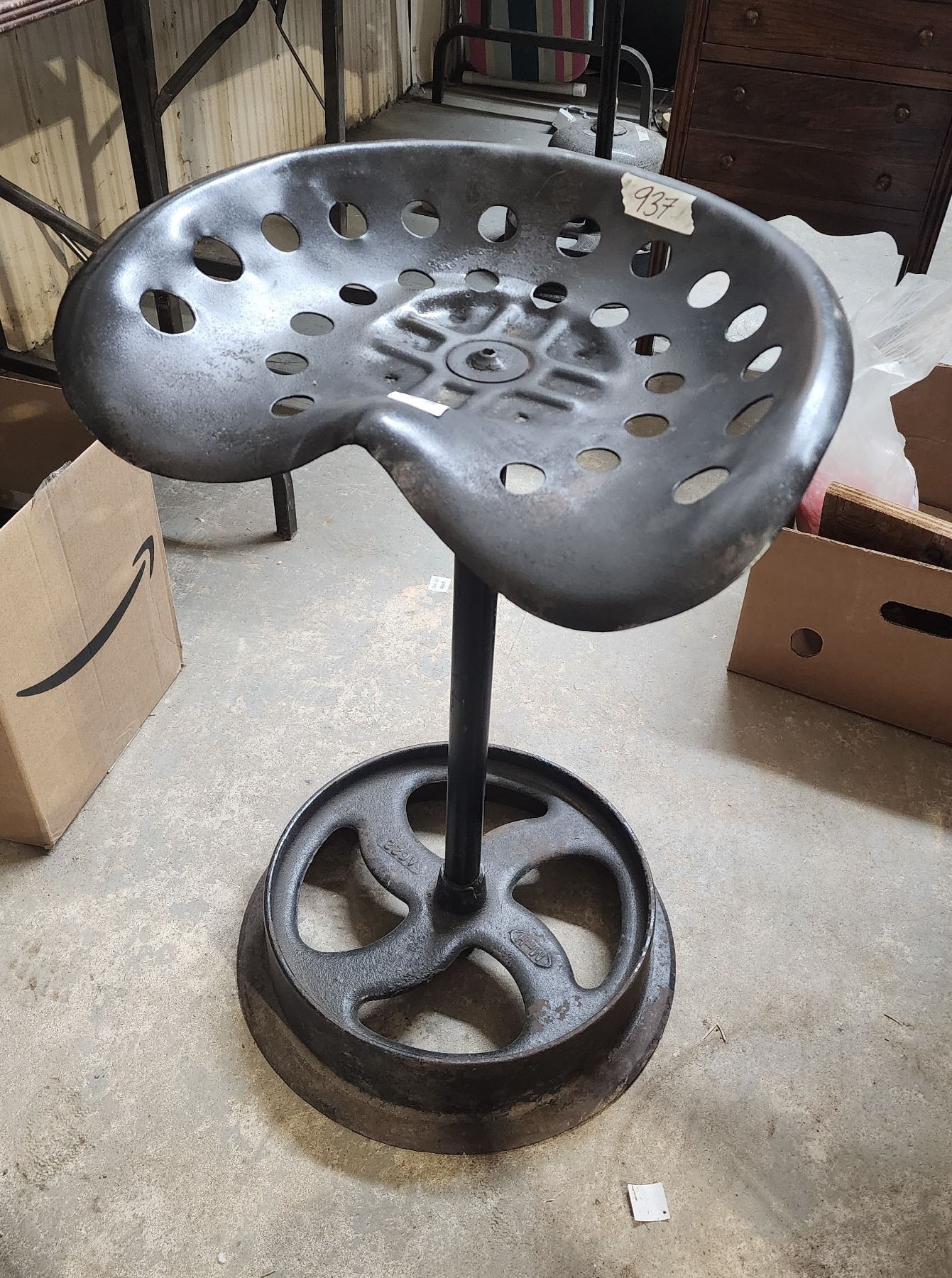 Metal tractor seat stool, on Massey-Harris wheel - 28"H