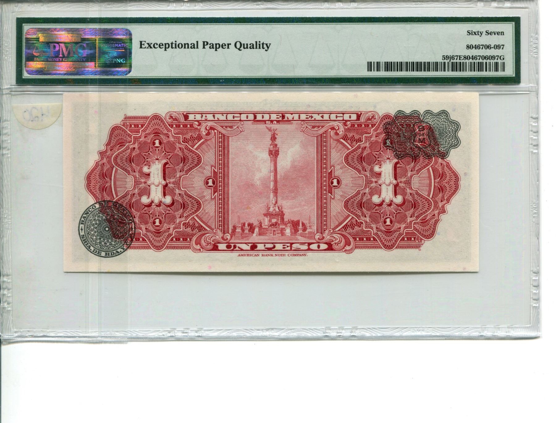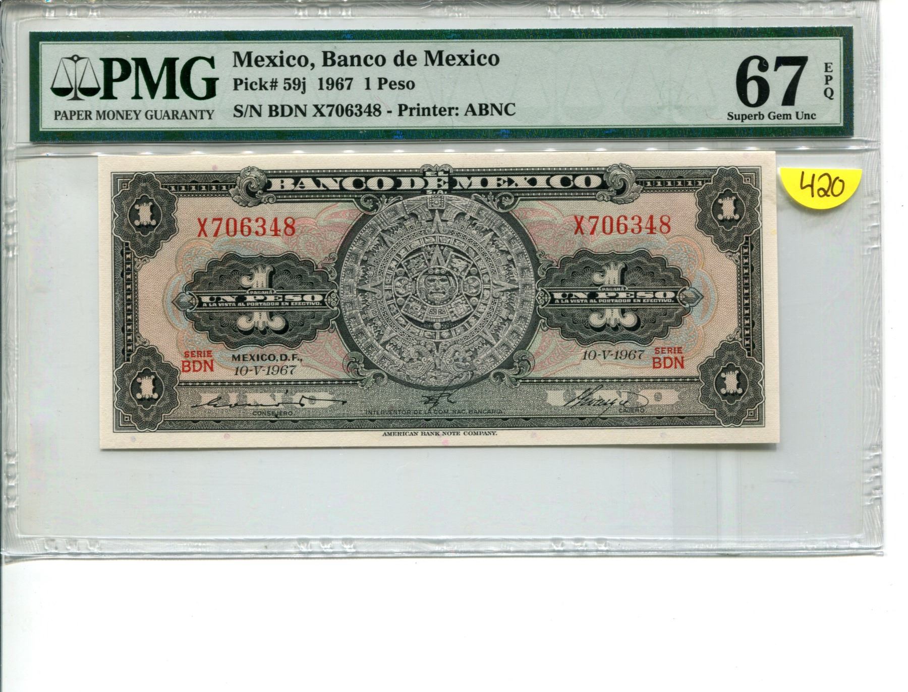 Mexico 1 Peso 1967 P59 j S/N BDN SUPERB GEM UNC PMG 67 EPQ