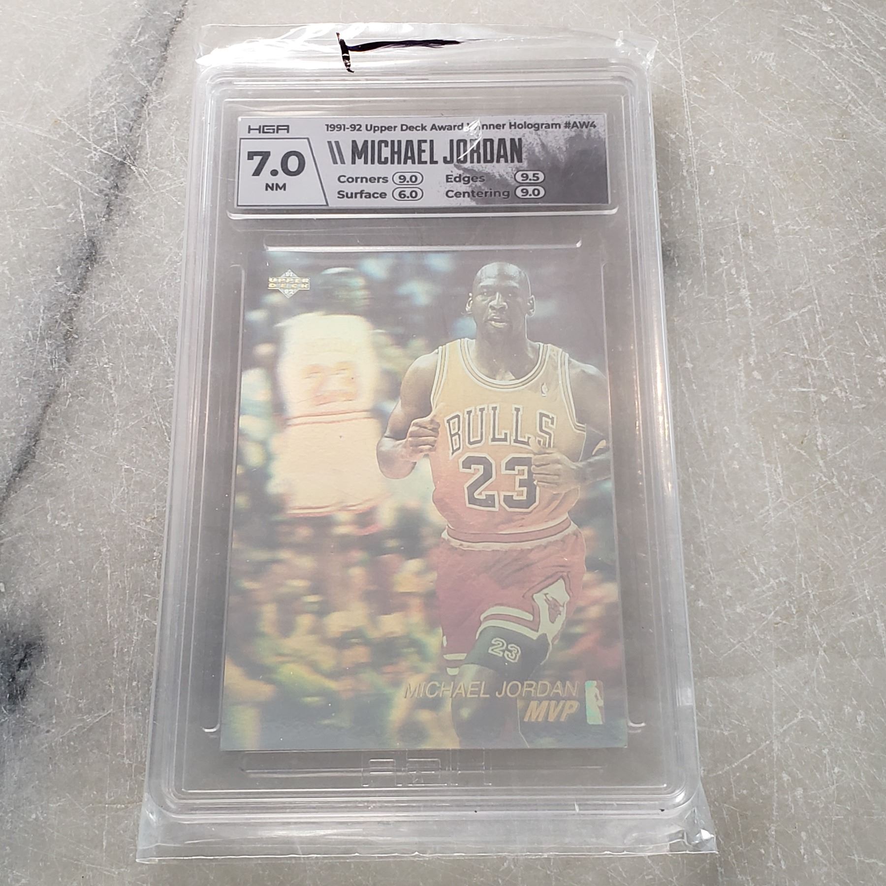 Michael Jordan HGA 7 Near Mint Hologram 1991-92 Upper Deck Award Winner #AW4 high grade Basketball cards HOF