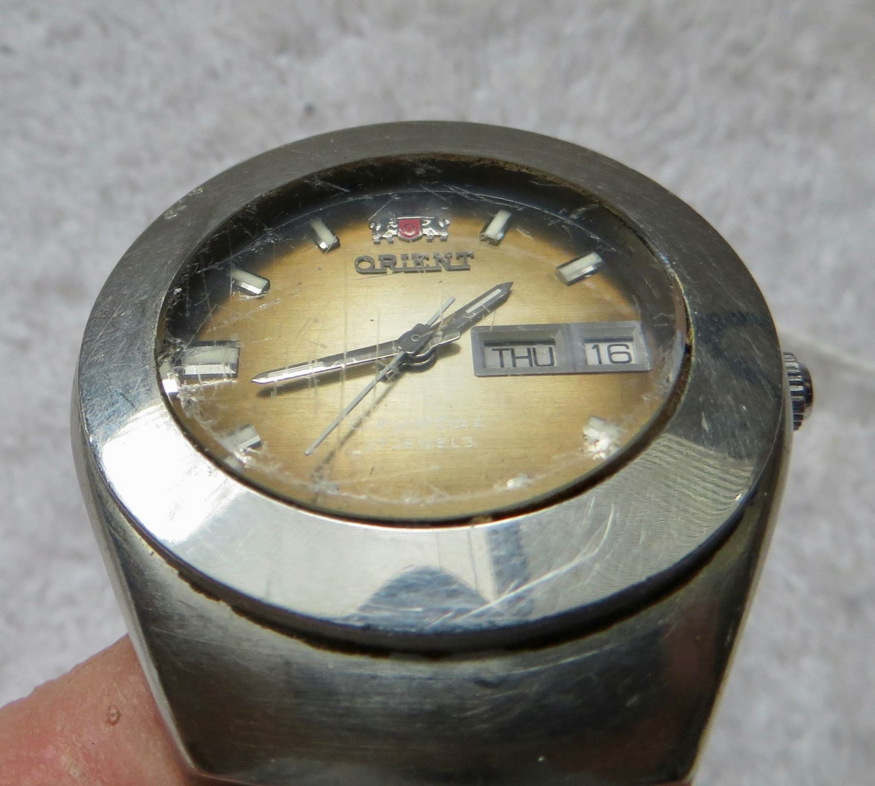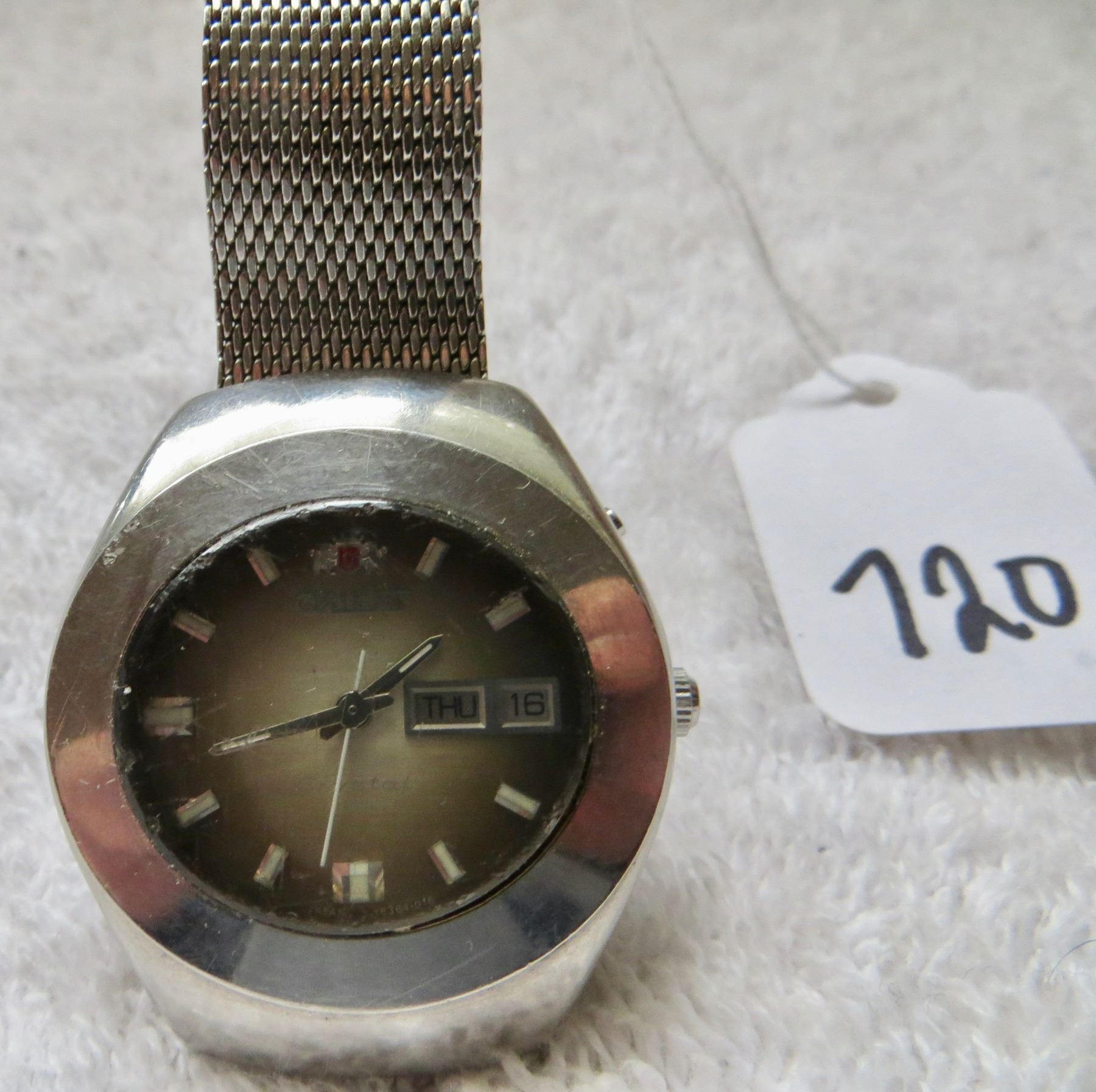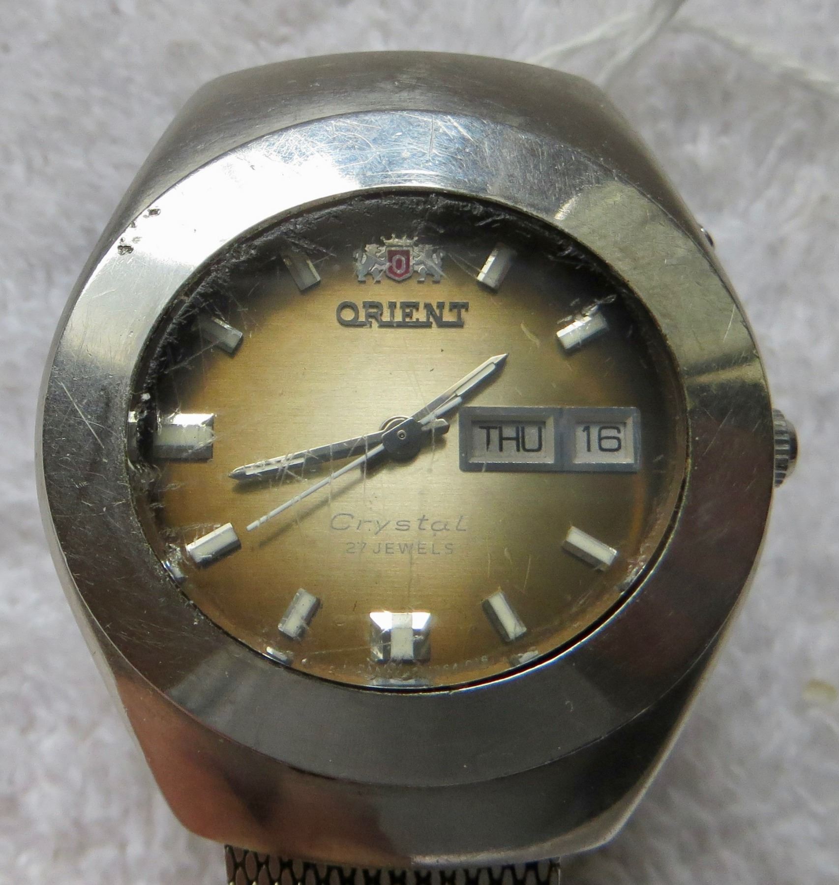 Mid Century 1970's "Orient" automatic wrist watch 27 jewela calendar/date stainless