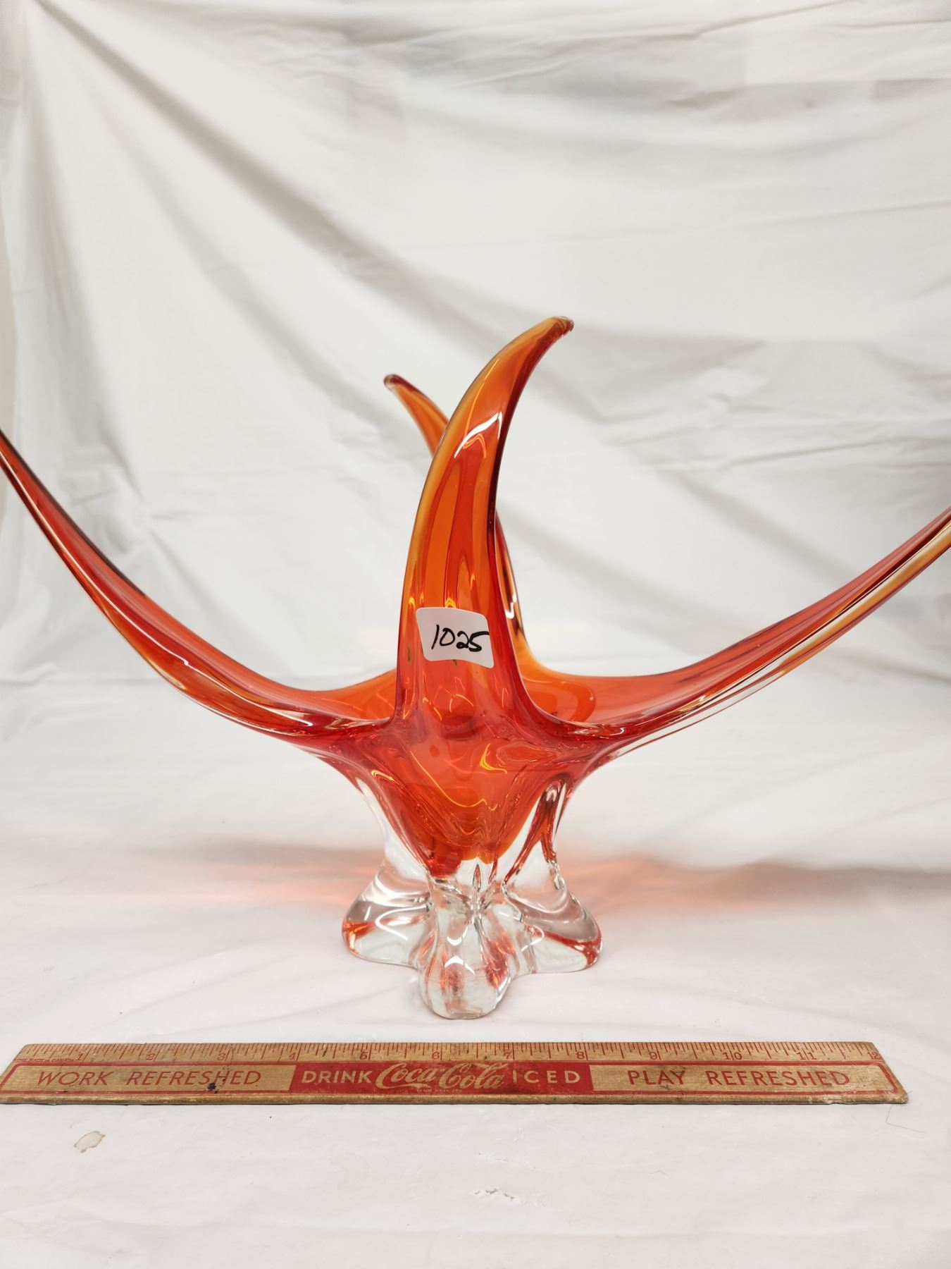 Mid Century Orange Art Glass Centerpiece signed by Chalet