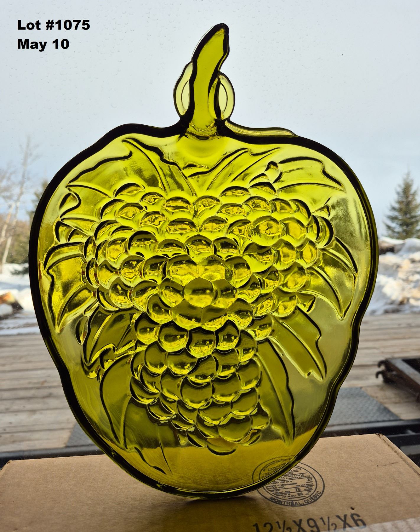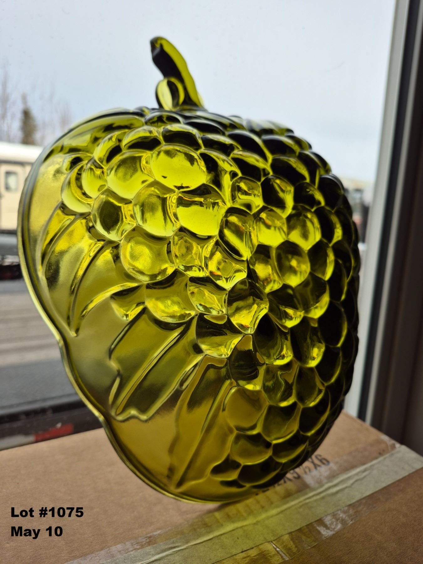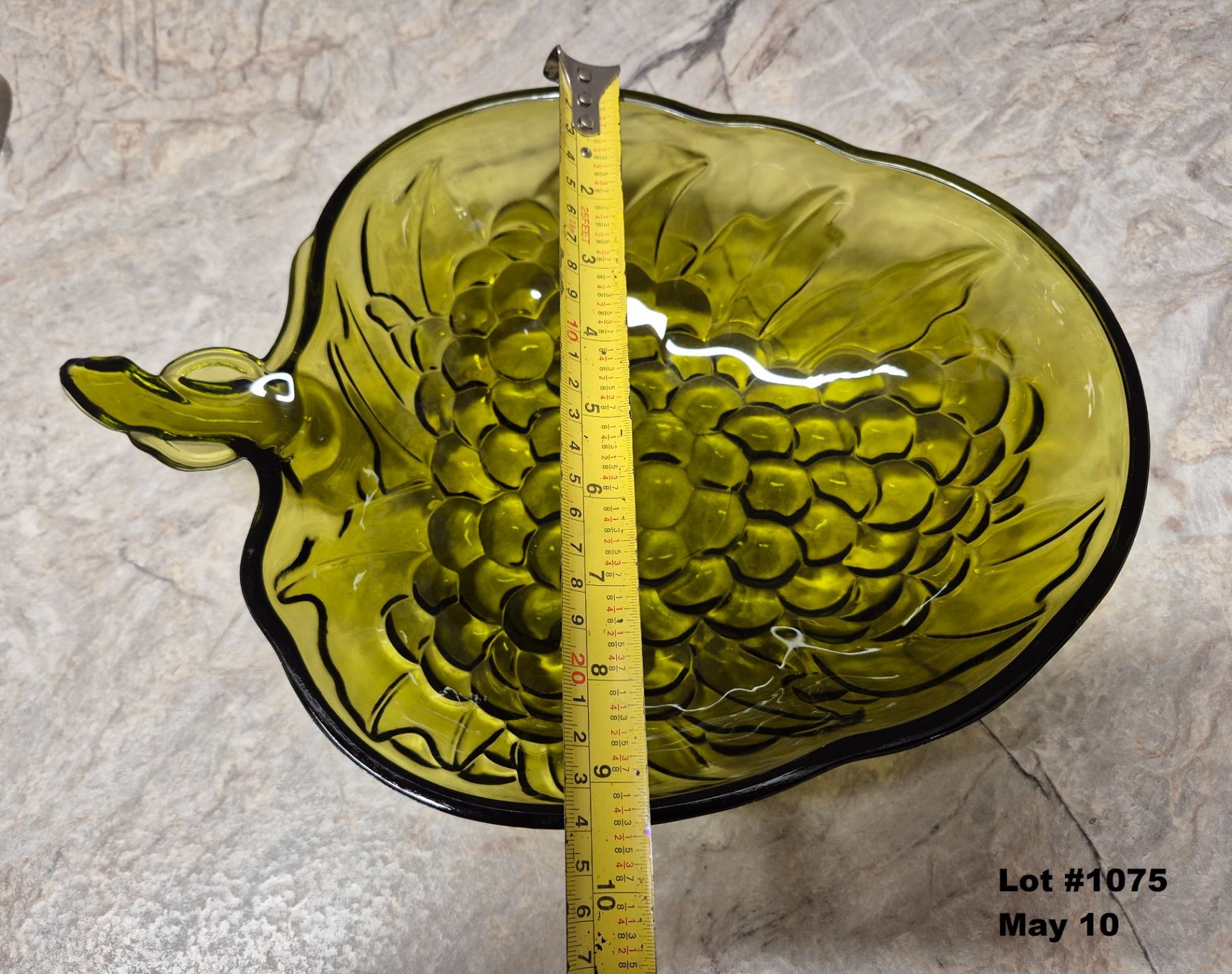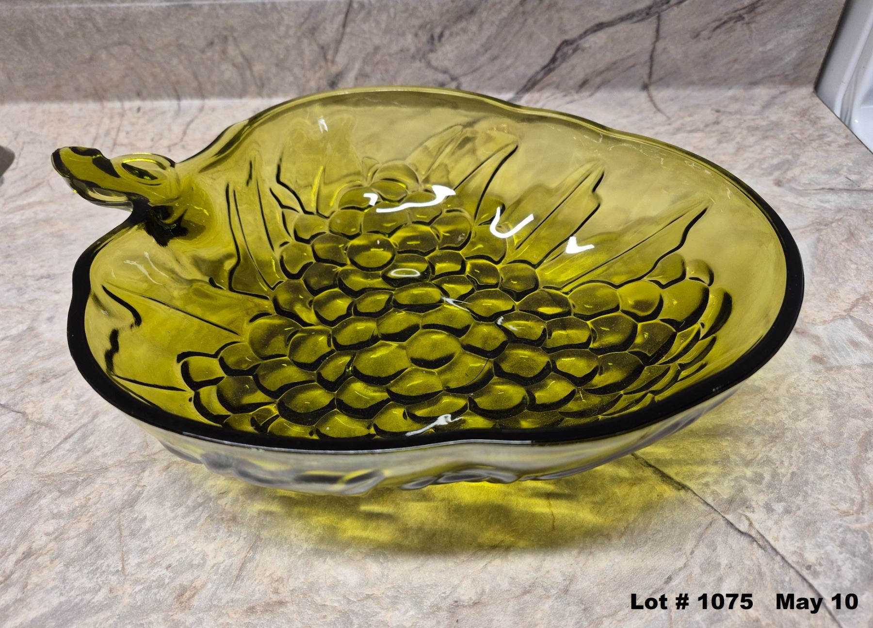 Mid Century Vintage 1970's Indiana Glass Avocado Green Grape Fruit Bowl. Heavy Thick Glass.