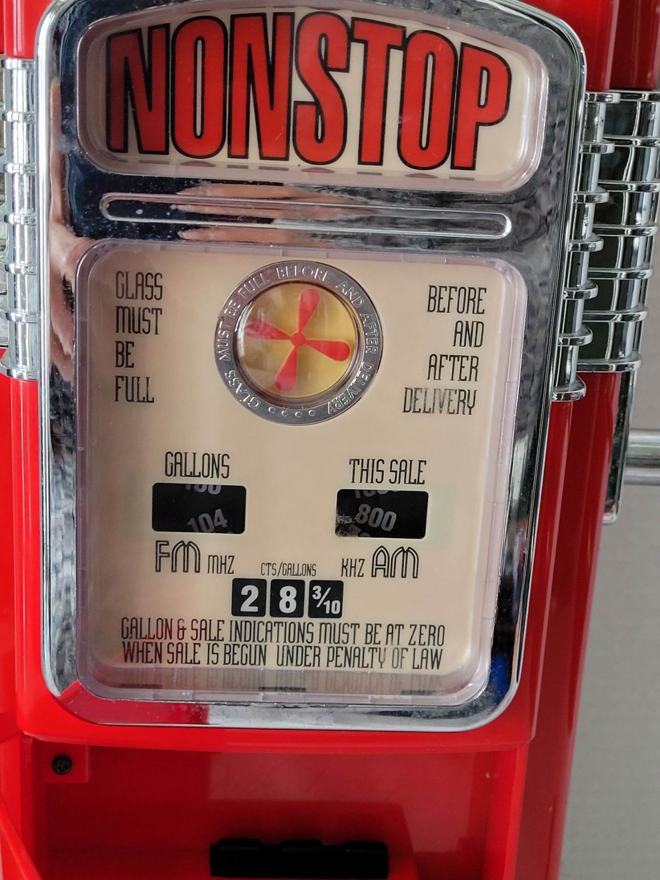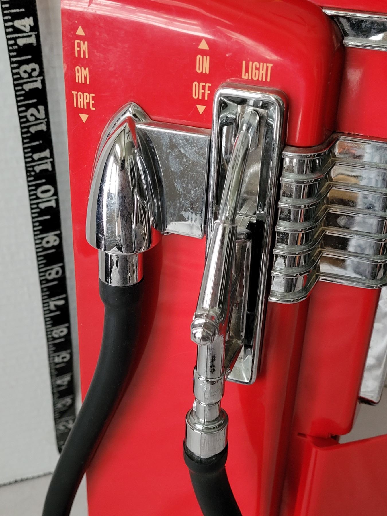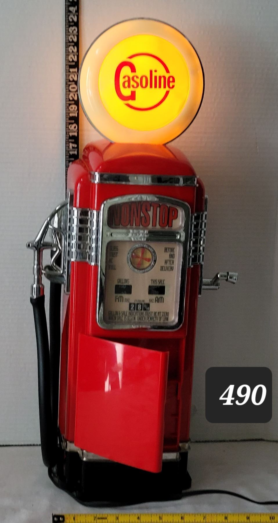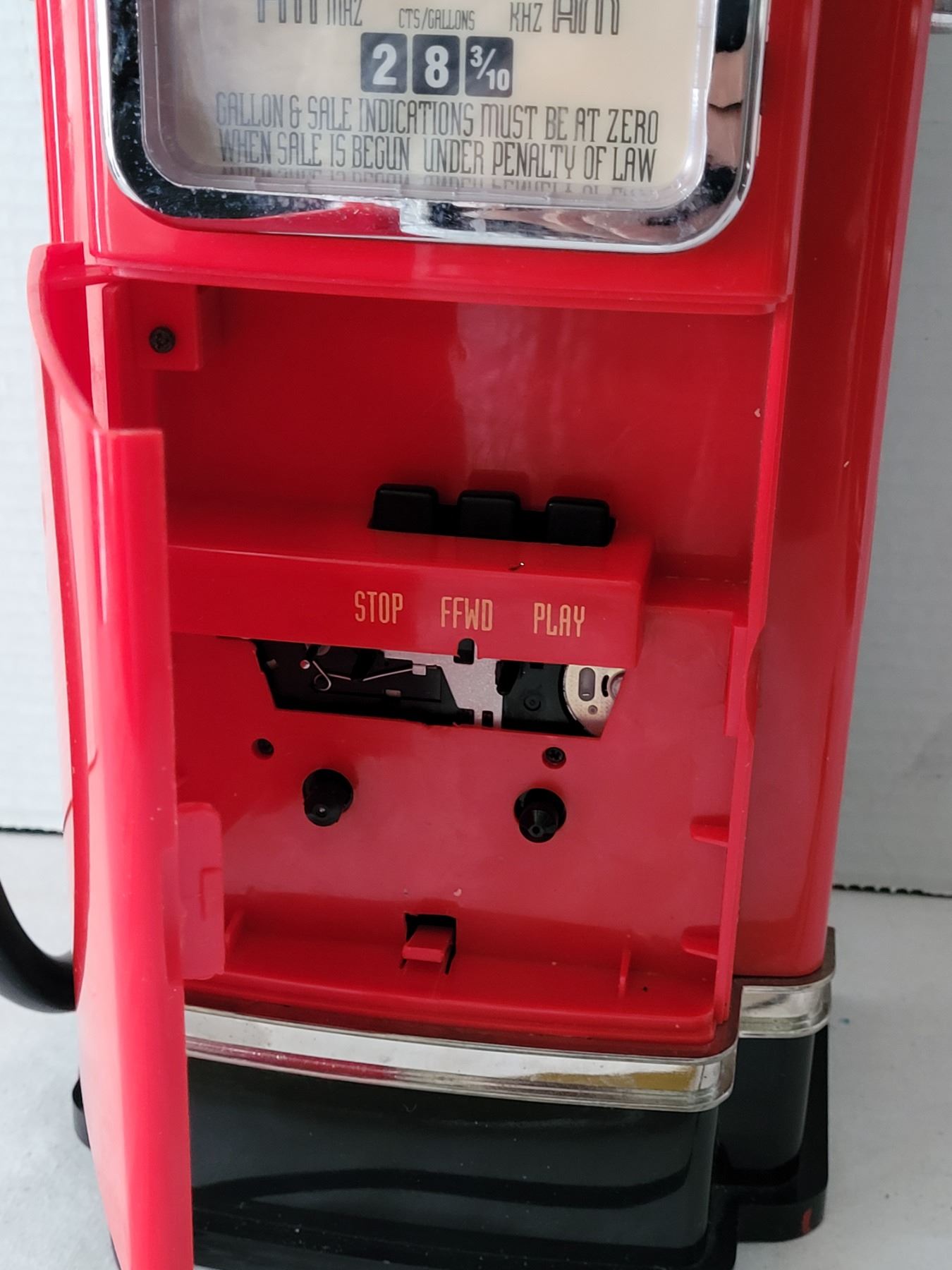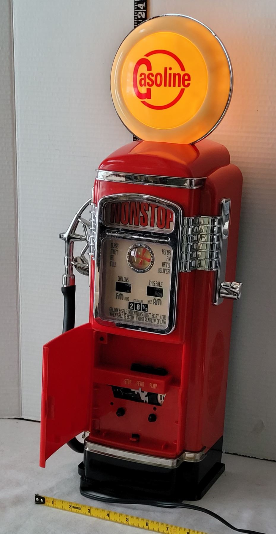 Mid century Gasoline pump AM/FM radio cassette player. Lighted globe, head phone jack & tape slots. Working,tape drags from lack of use.