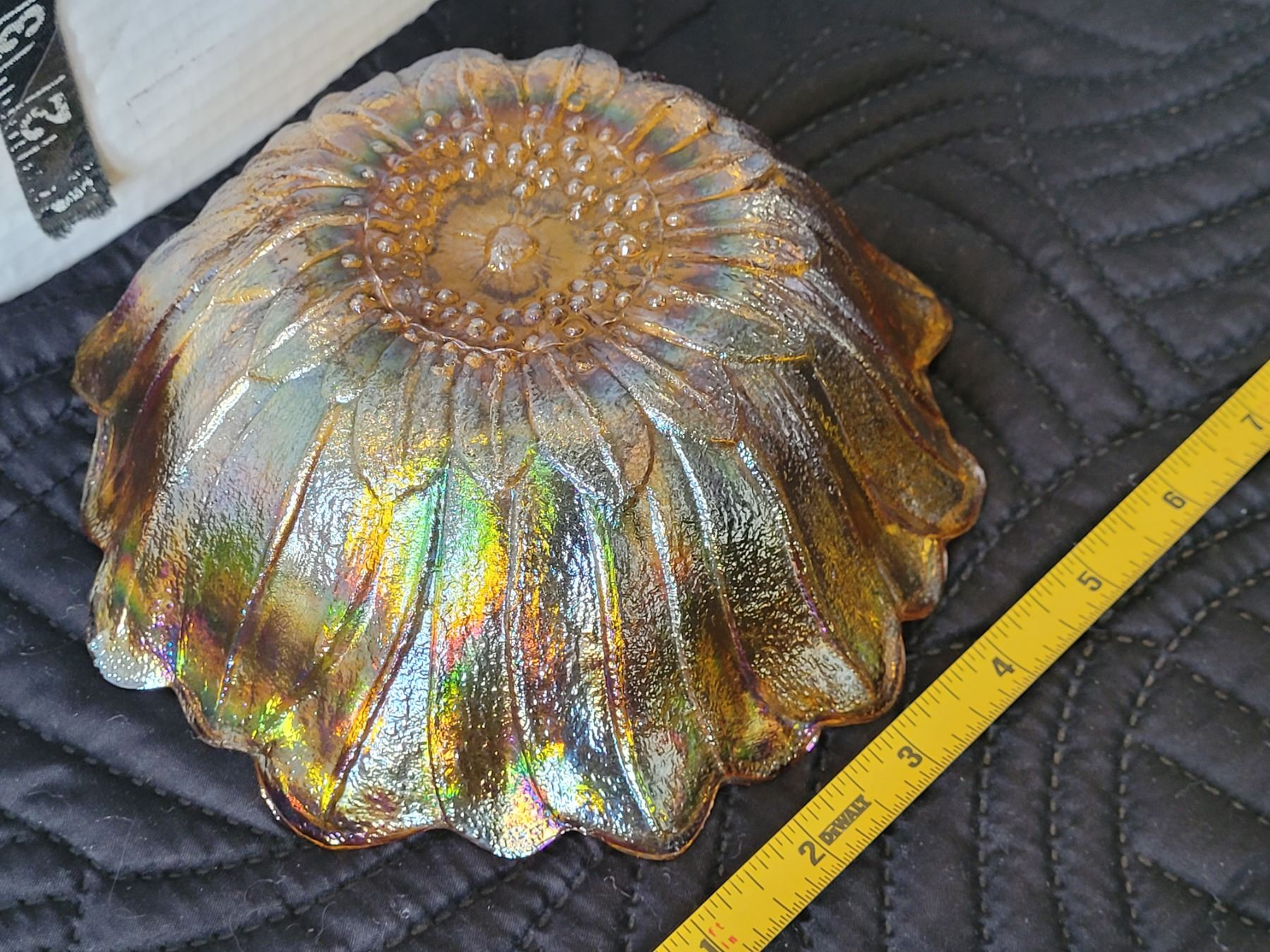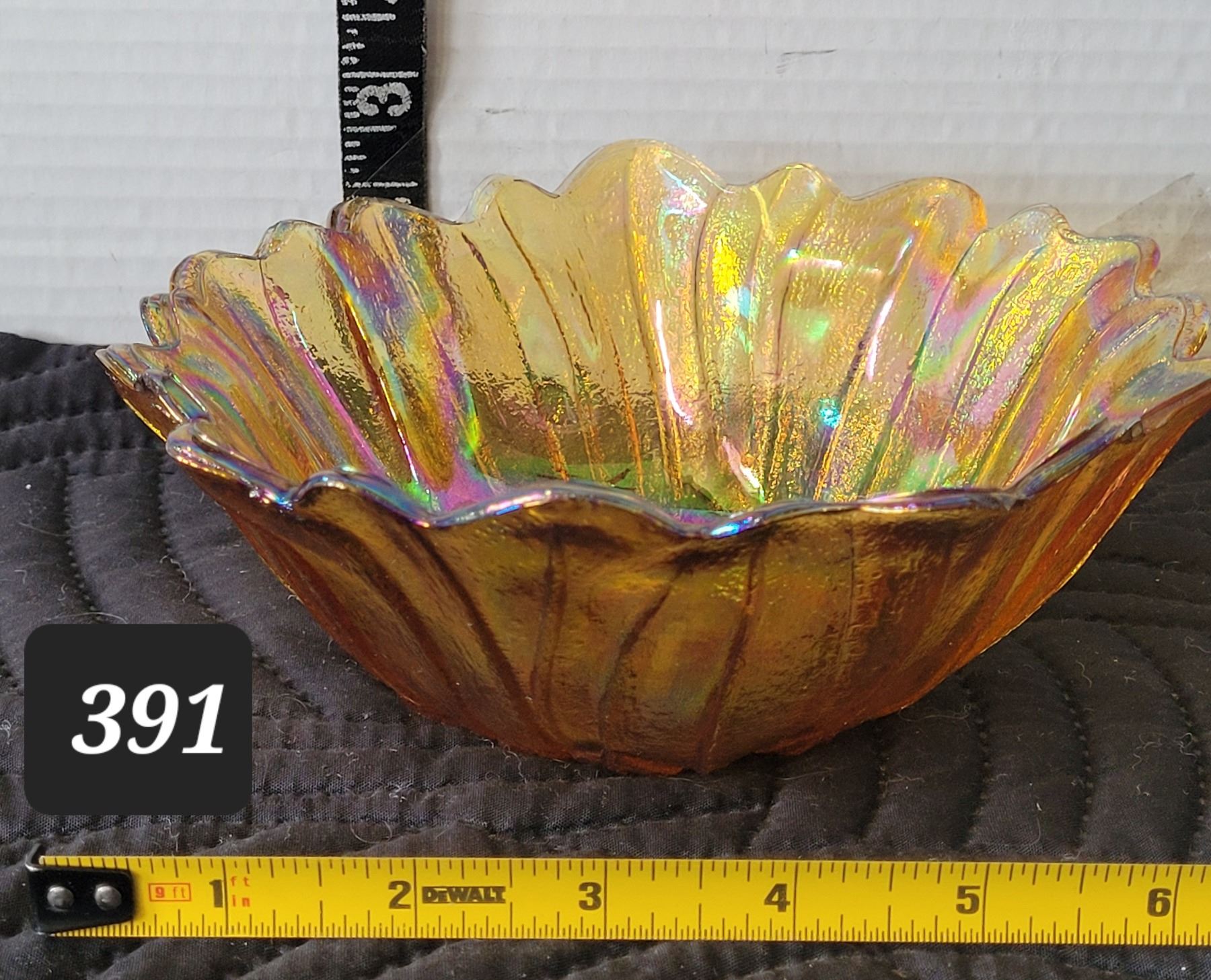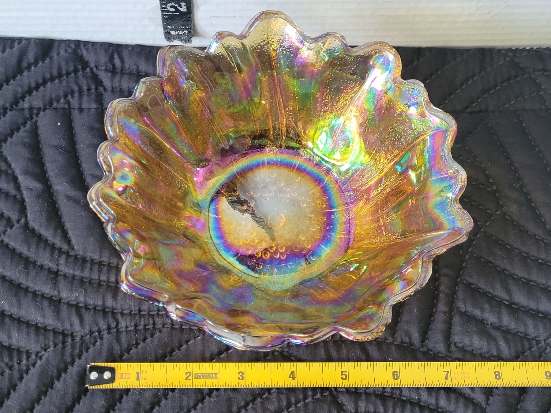 Mid century marigold carnival glass bowl.