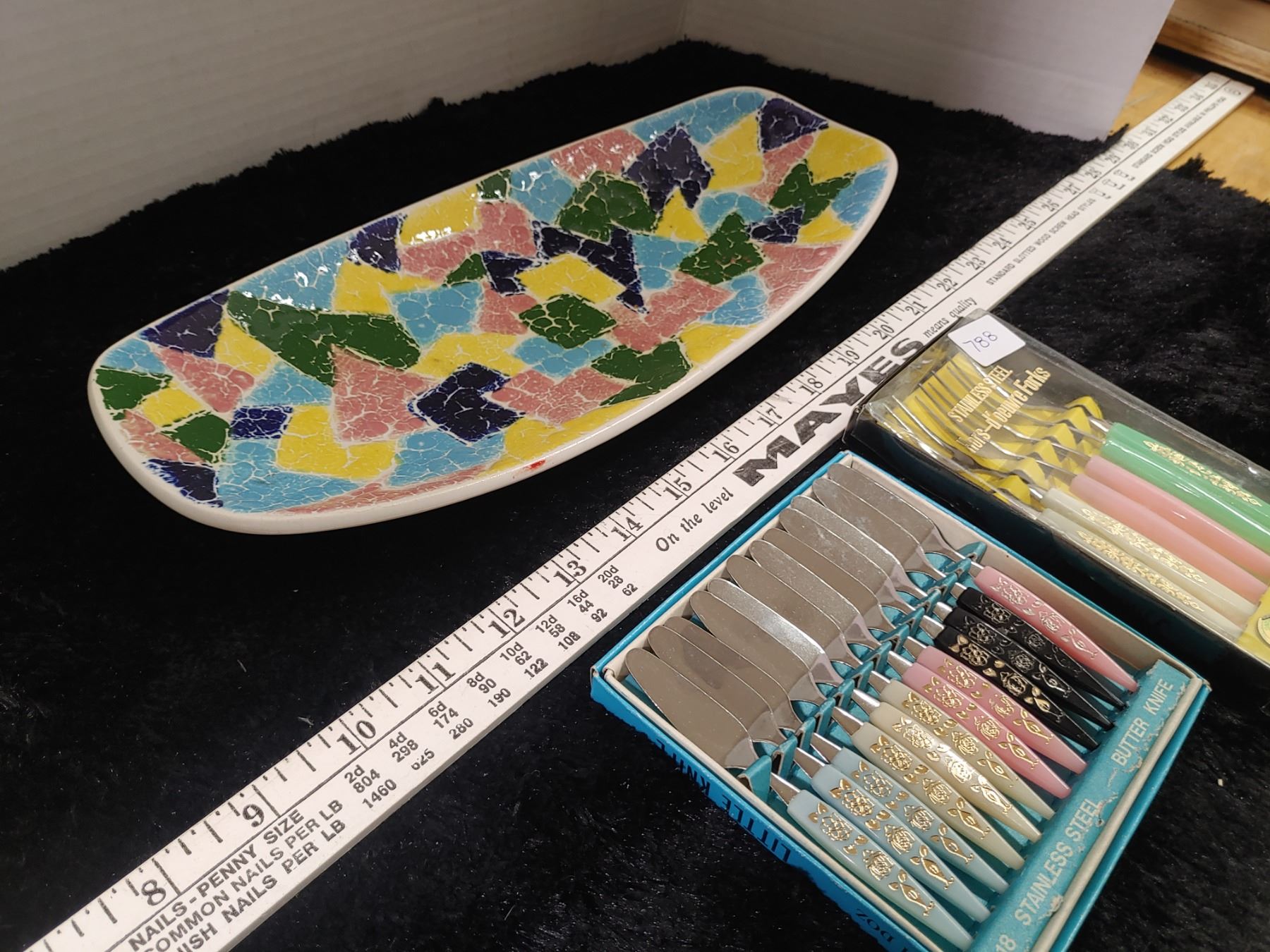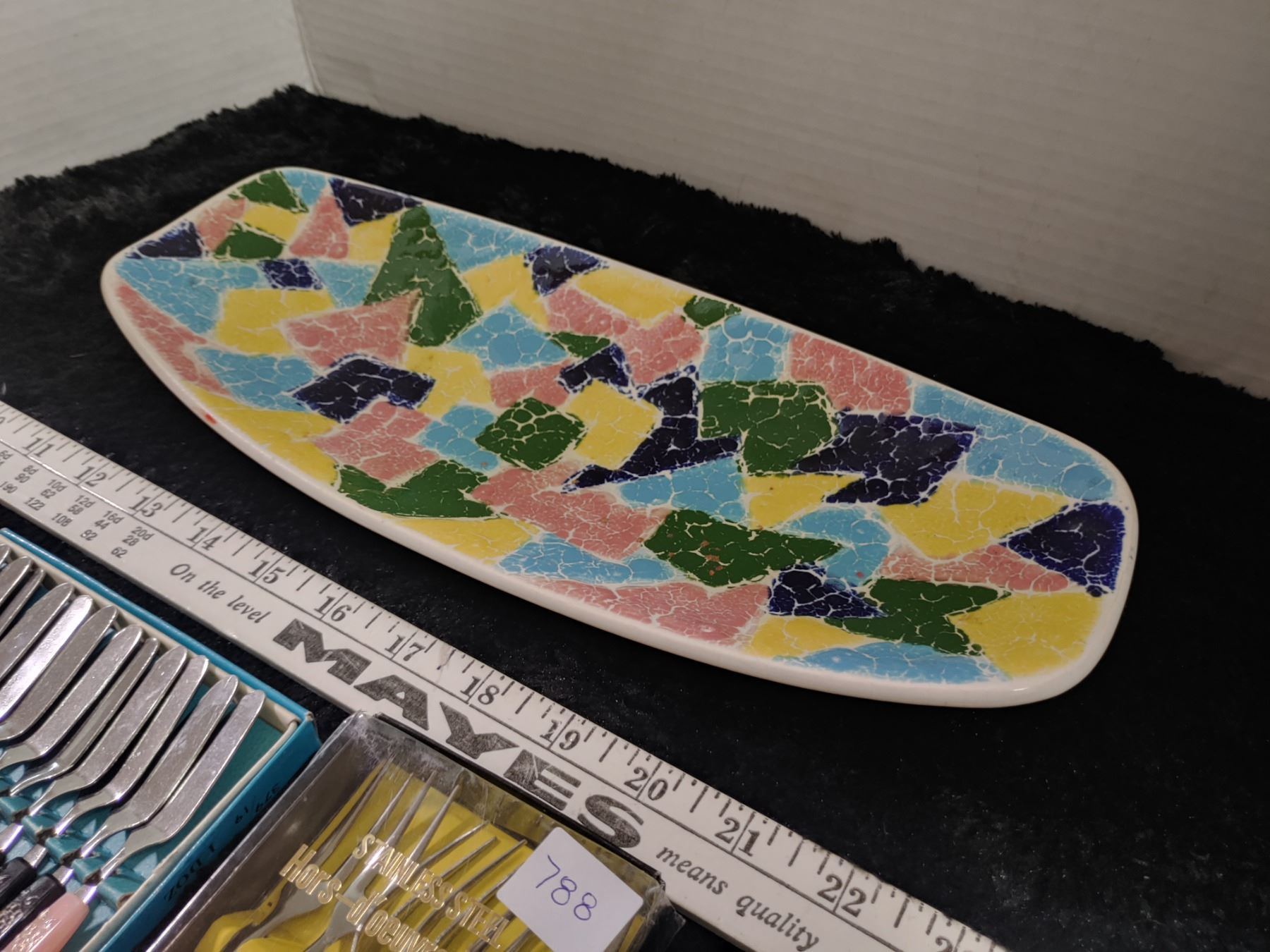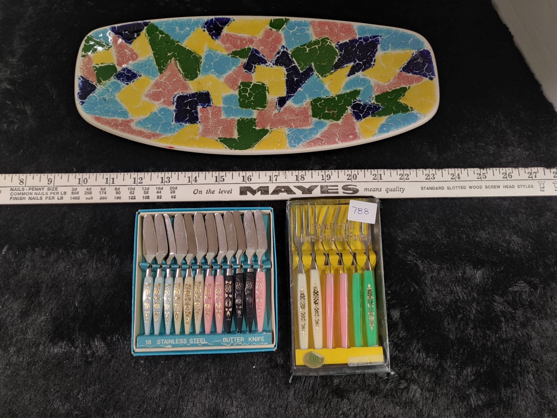 Midcentury Pottery Appetizer Server + Knives + Forks