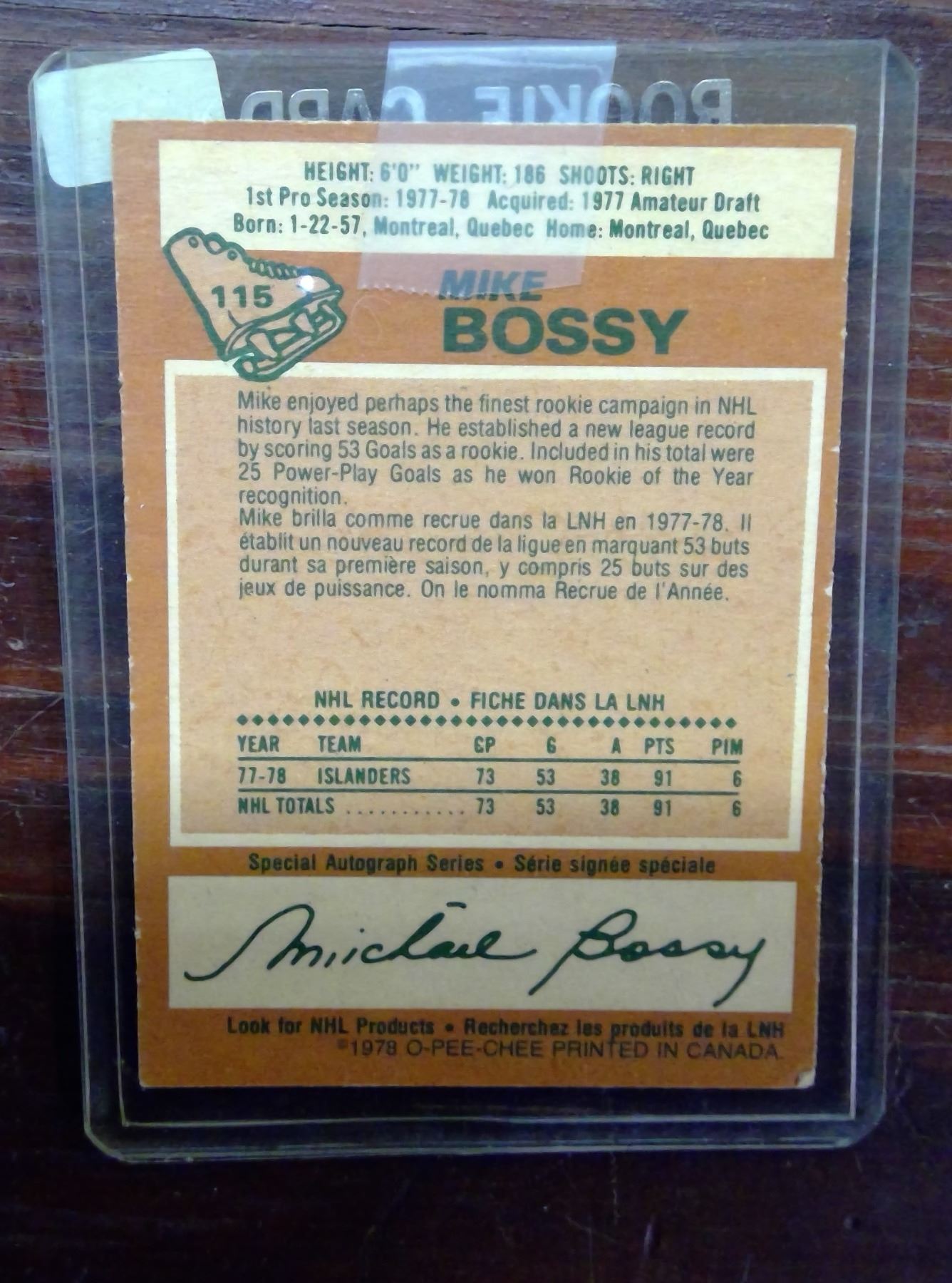 Mike Bossy Rookie Card #115
