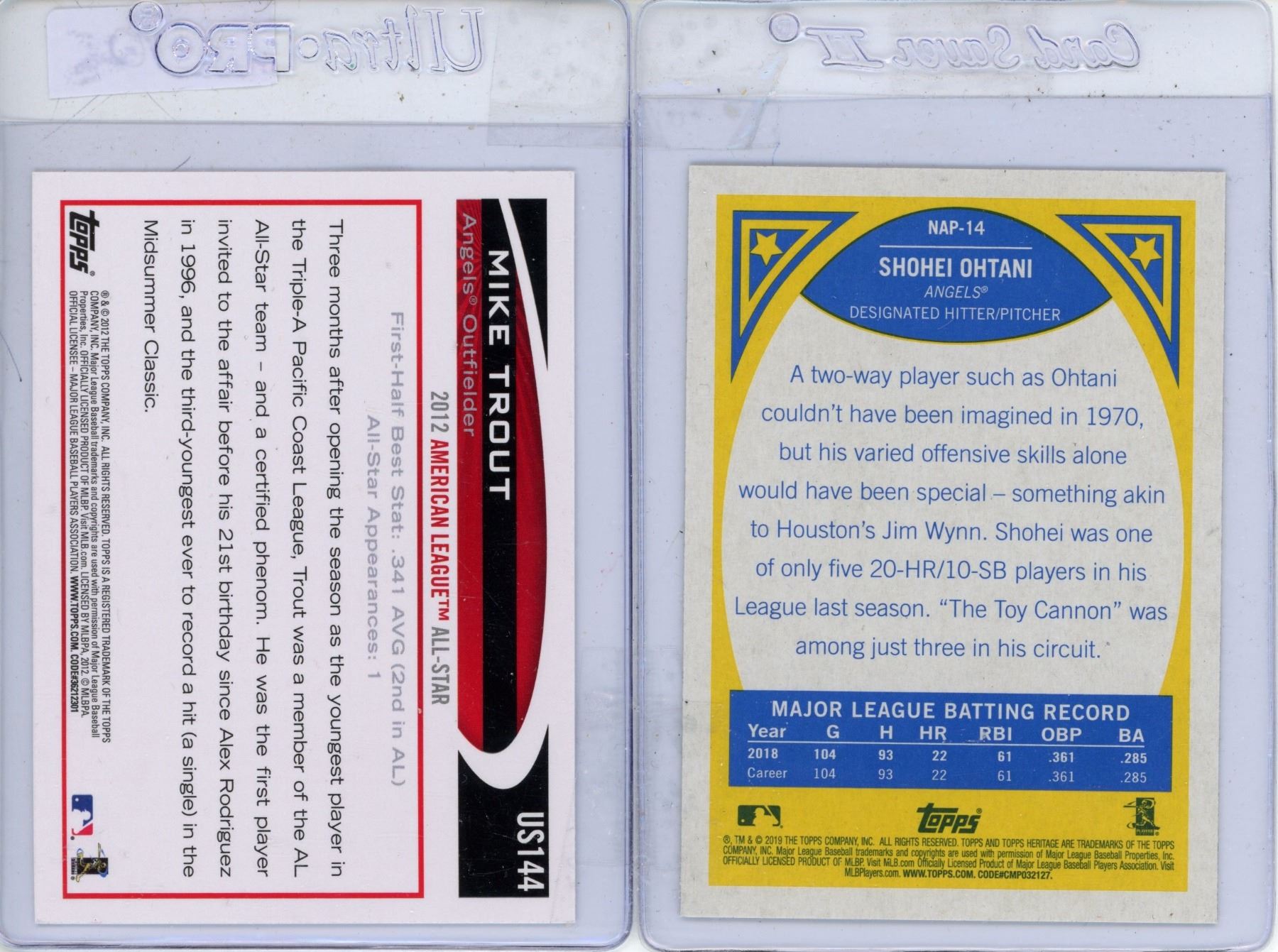 Mike Trout 2012 Rookie All-Star & Shonei Ohtani 2019 Topps Mint