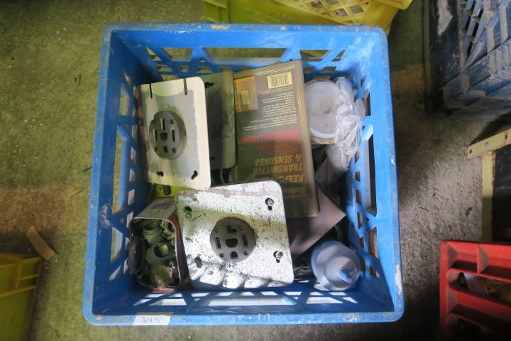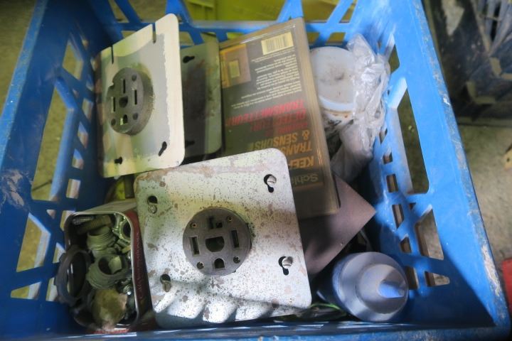 Milk Crate of Misc. Items Including Electrical Outlets