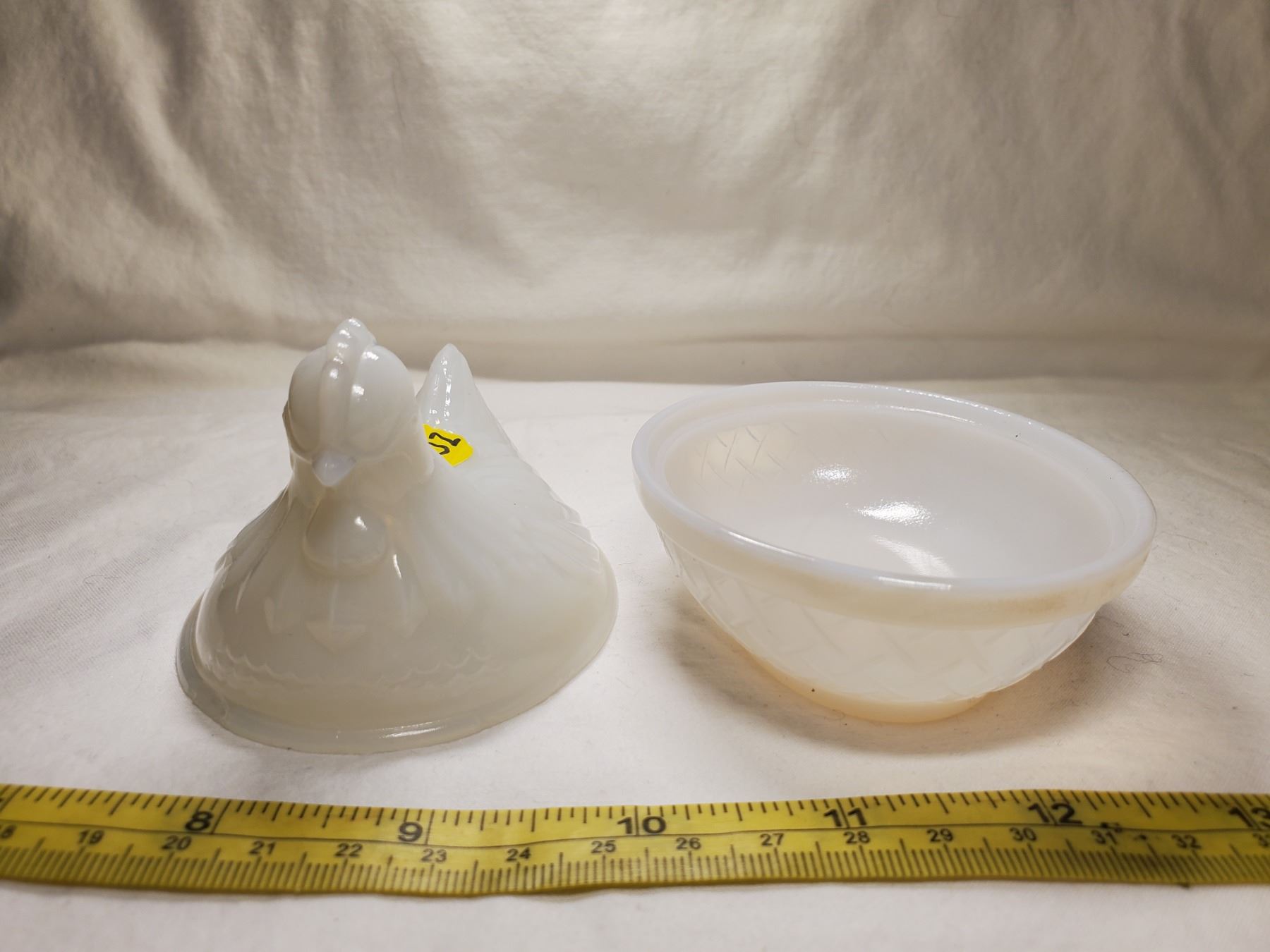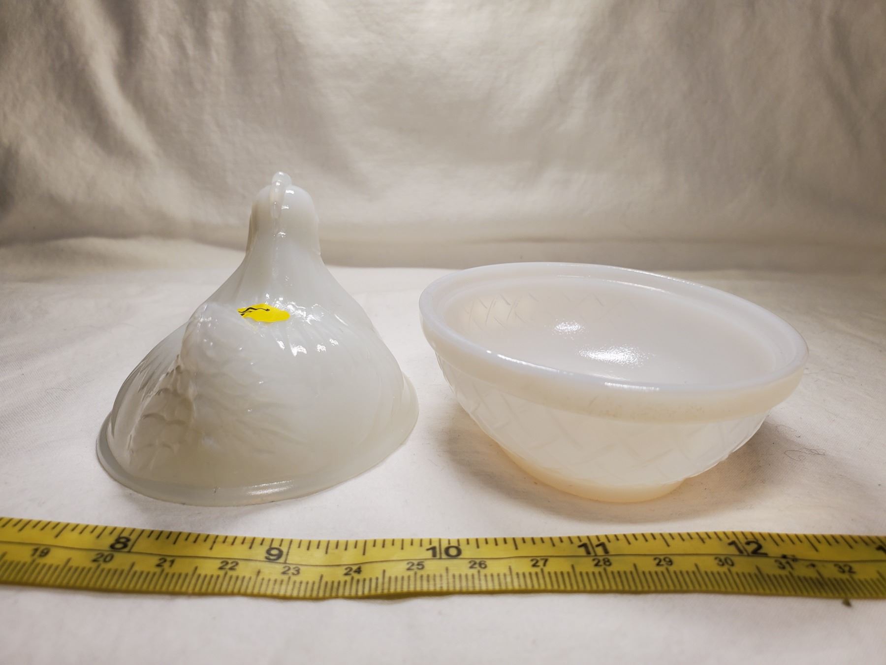 Milk Glass Hen on Nest (see photos of colour of glass w/ light)