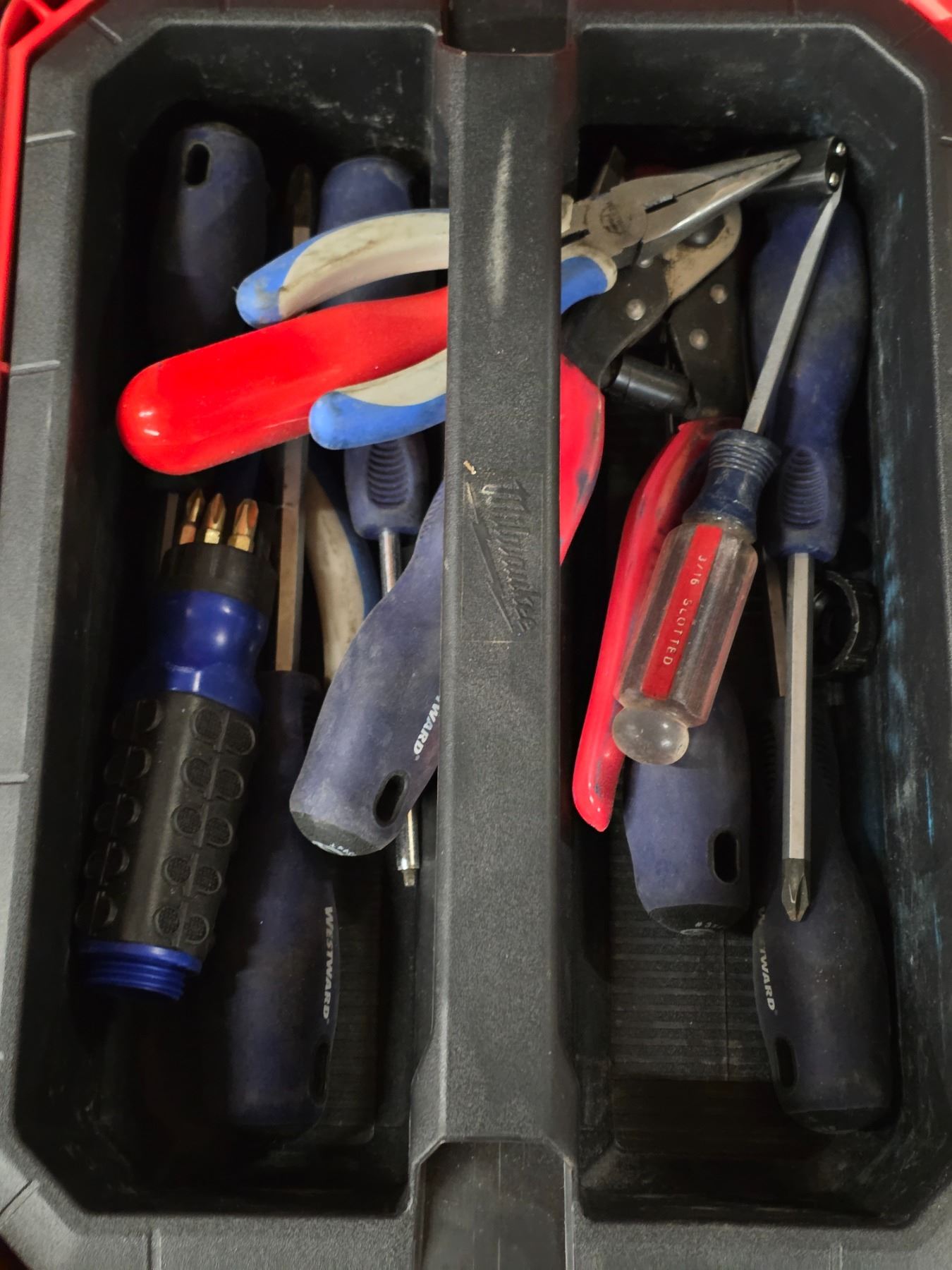 Milwaukee tool chest and- with wrenches, pliers, cutters
