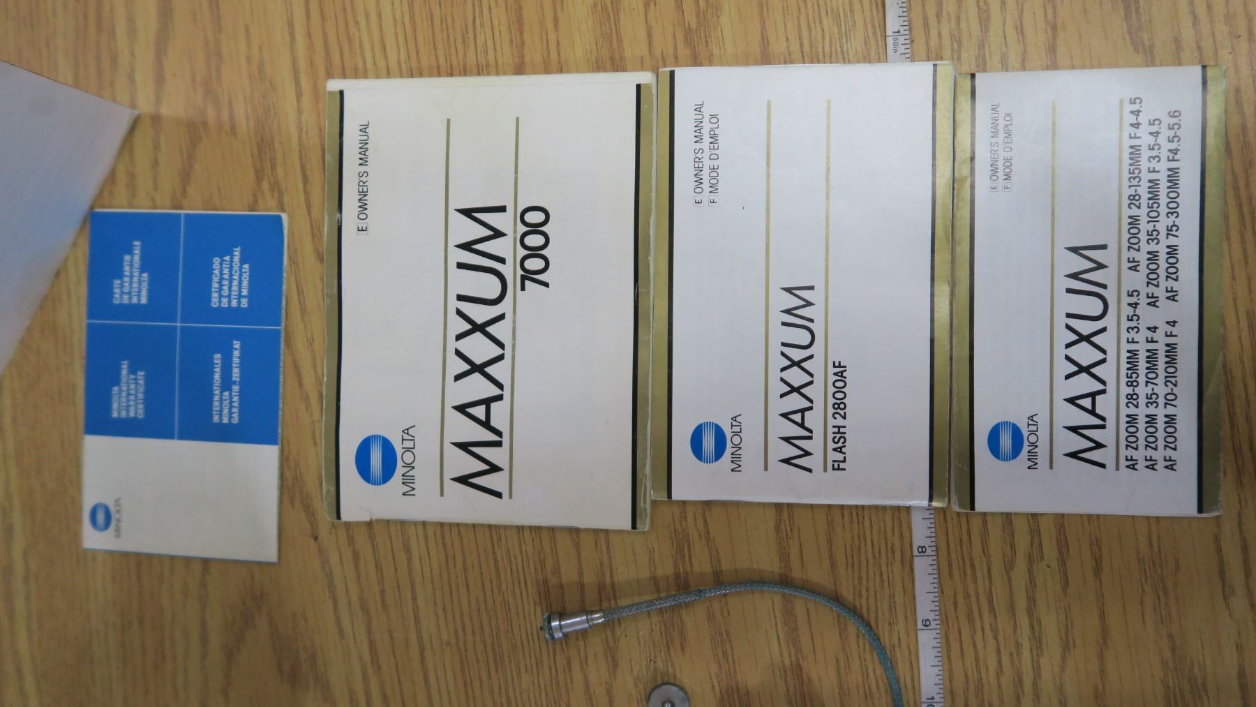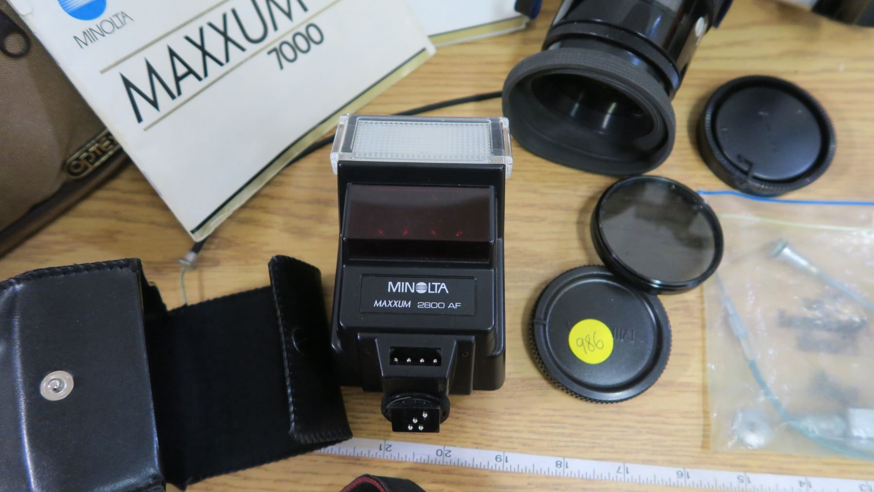 Minolta Maxxum Auto Camera Outfit with Flash, Tripod, Manuals and Camera Case