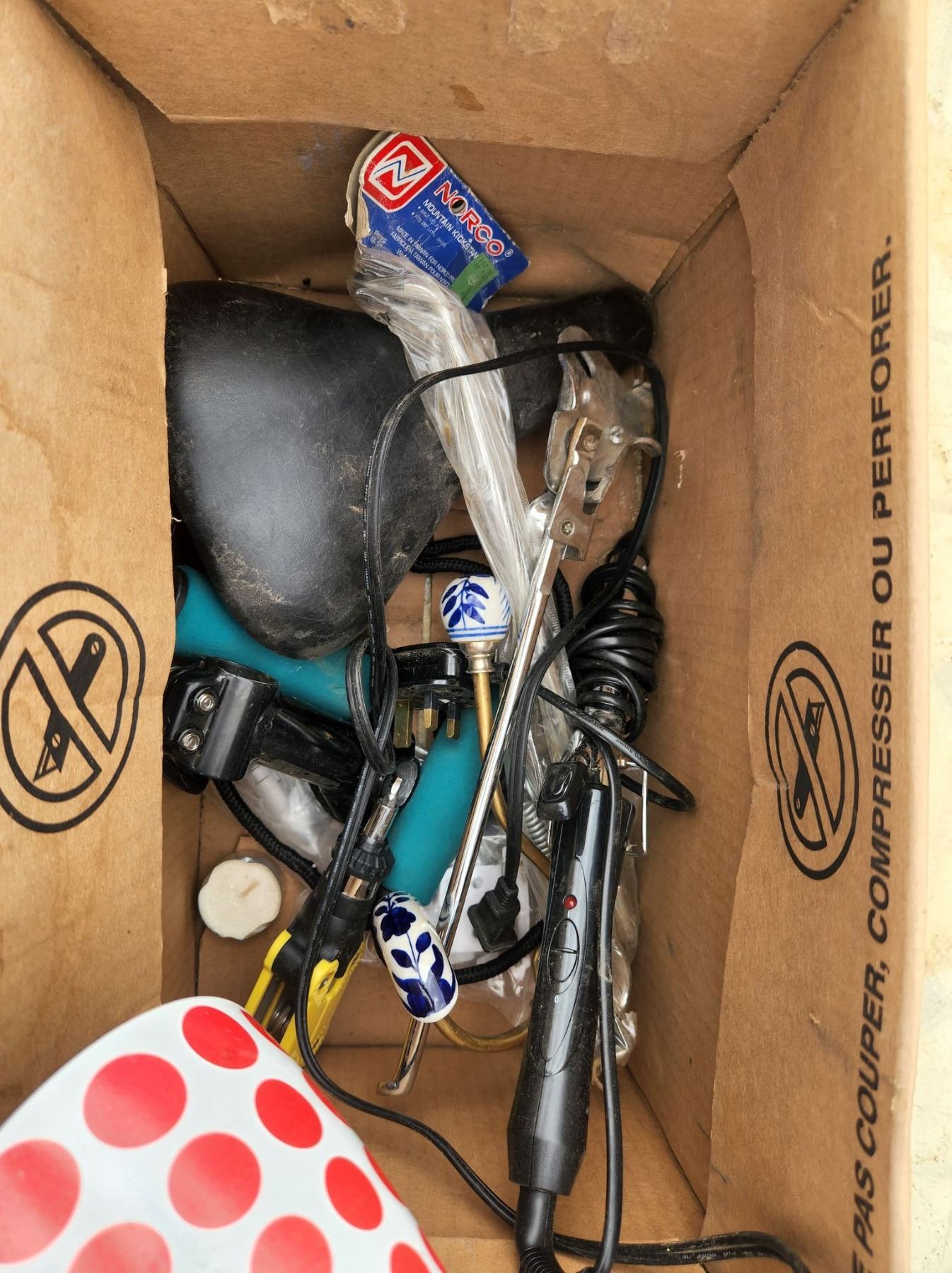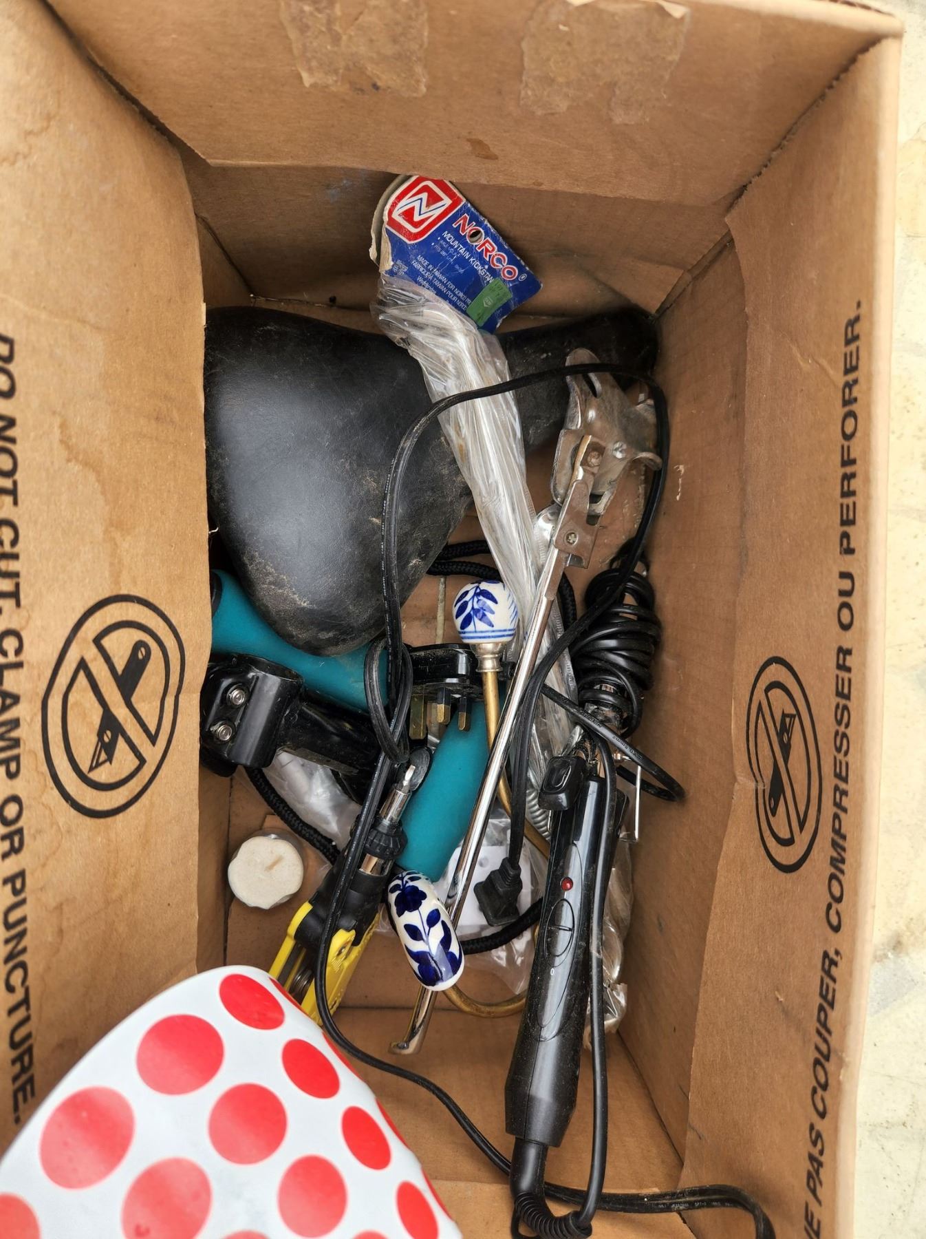 Misc. Box - 2 Reading Lamps, Bike Seat, Curling Iron