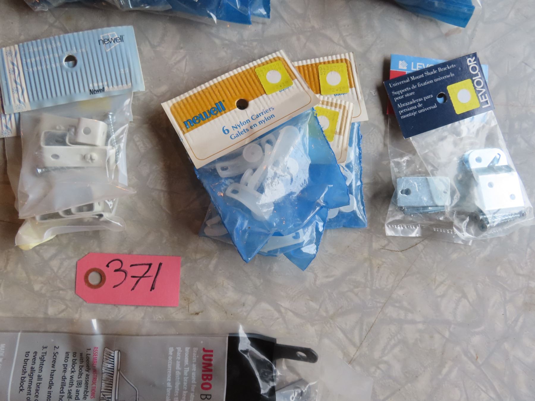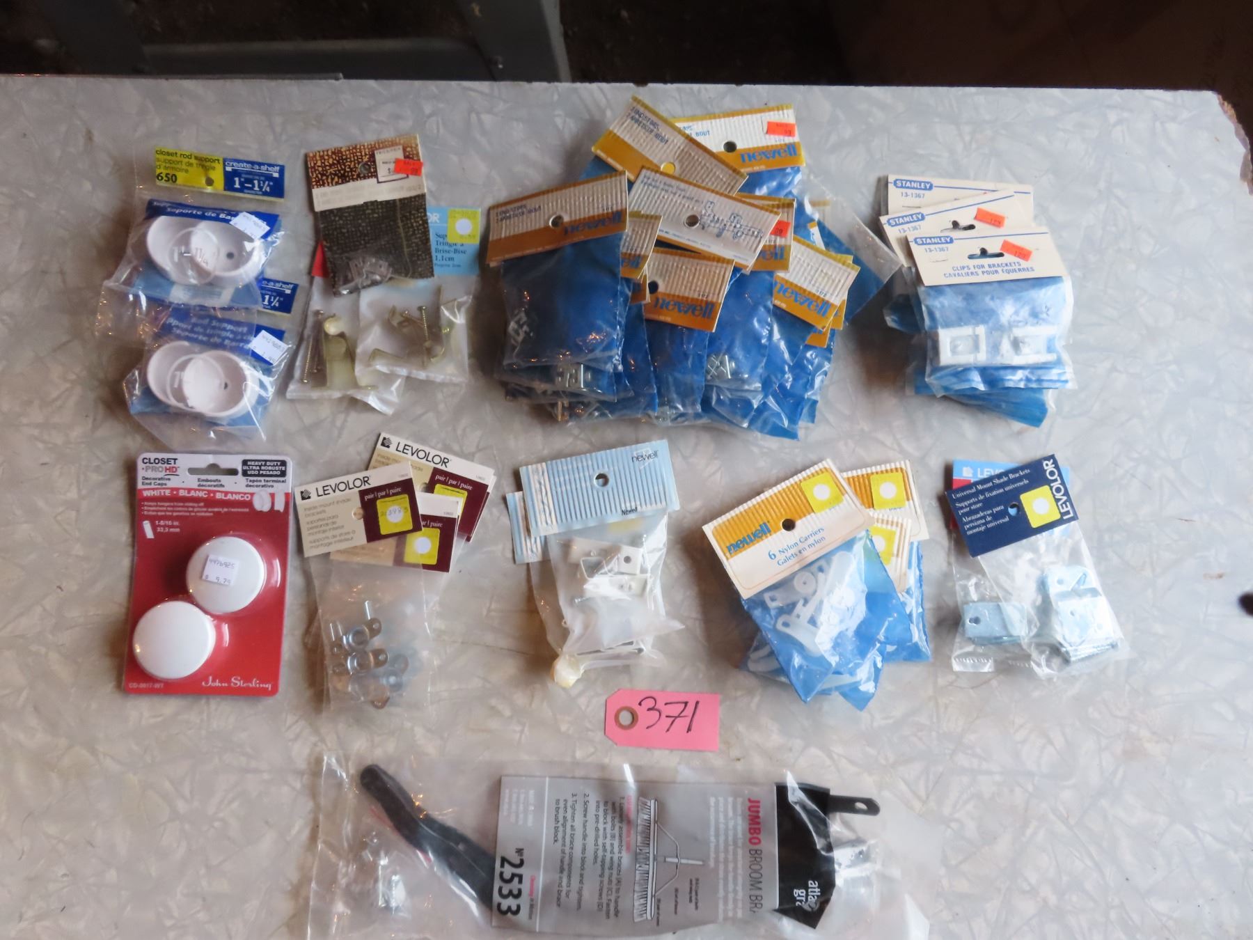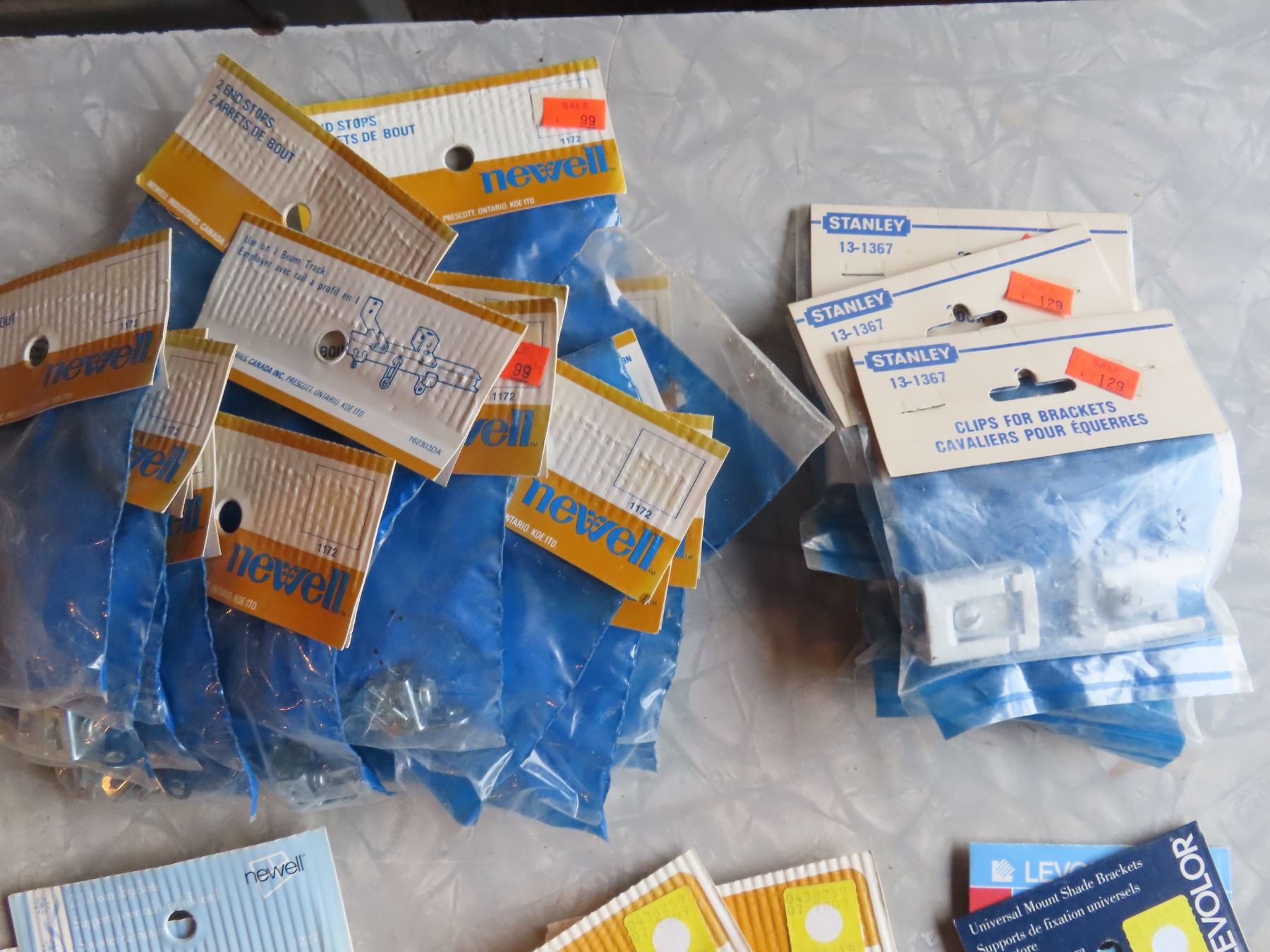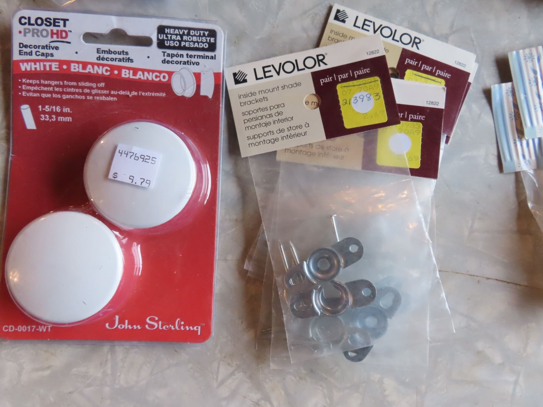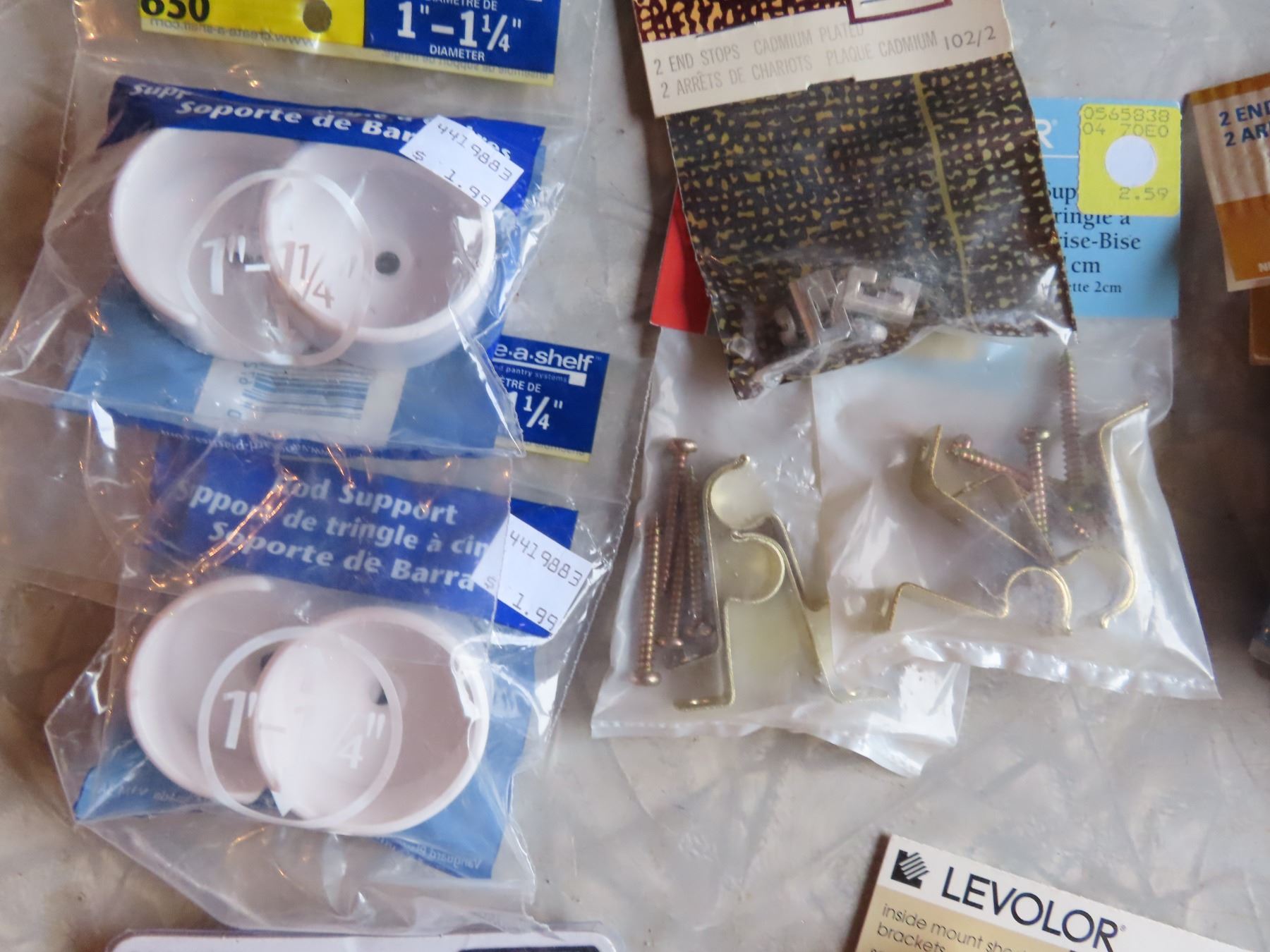 Misc Hardware - New in package (11 different SKU'S & 43 Individual Pieces) Shade Brackets. Rod Brackets, Clips for Brackets, White End Cap / Jumbo Broom Brace