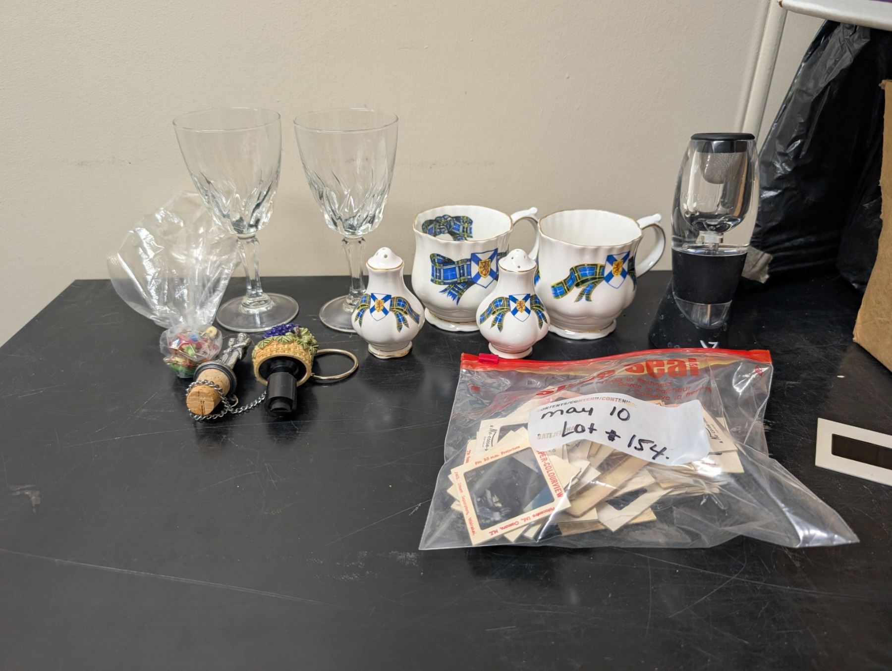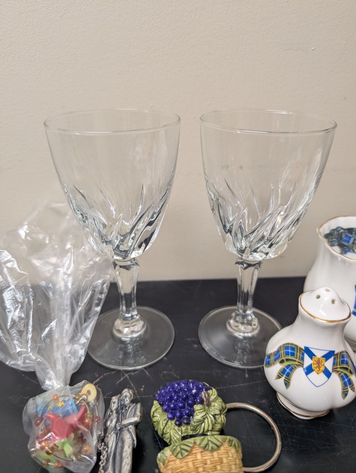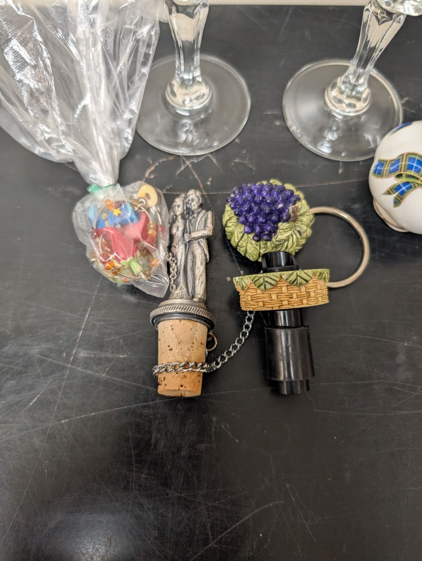 Misc. Lot Wine Glasses, Cork Tops w/ Unique Designs, Salt and Pepper, and etc. as Shown)