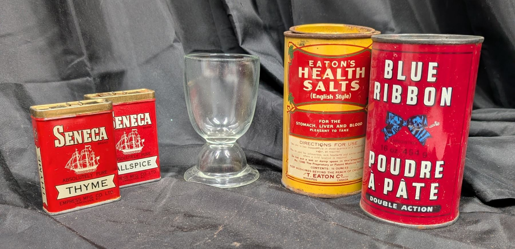 Misc. Vintage Items (Eaton's Health Salts, Blue Ribbon Baking Powder, seasonings, etc.)