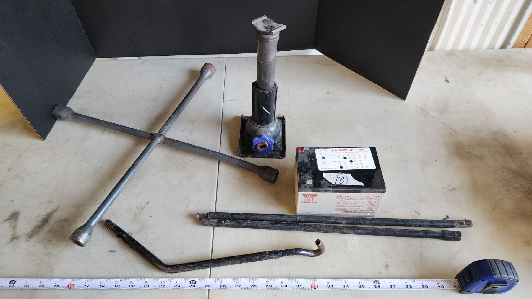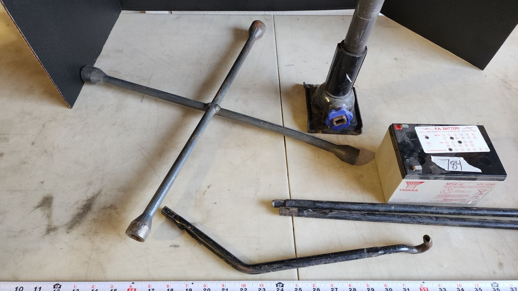Misc items - Car jack, tire iron and 12v battery