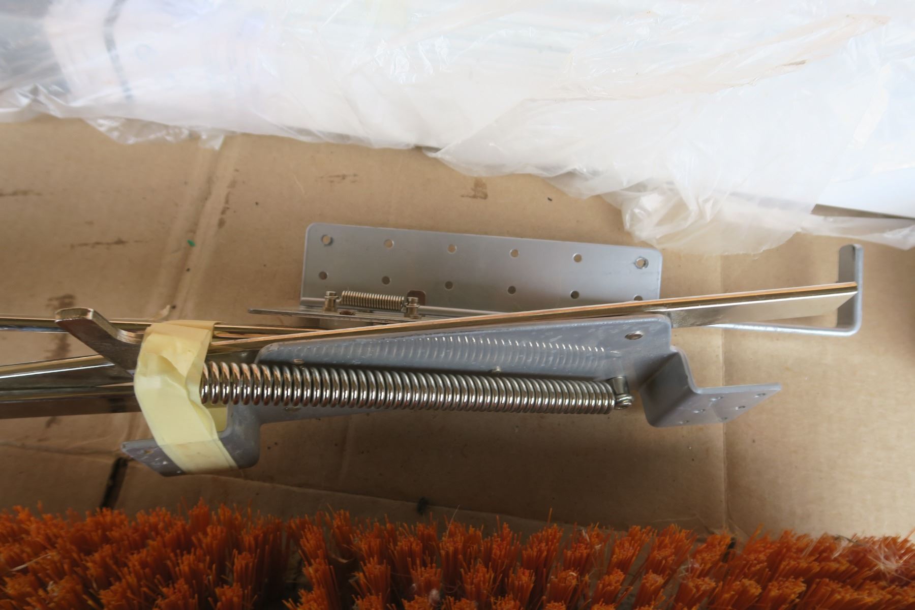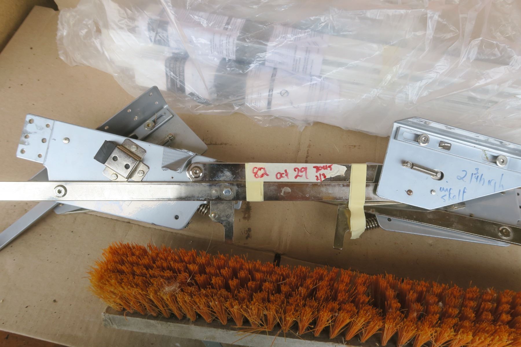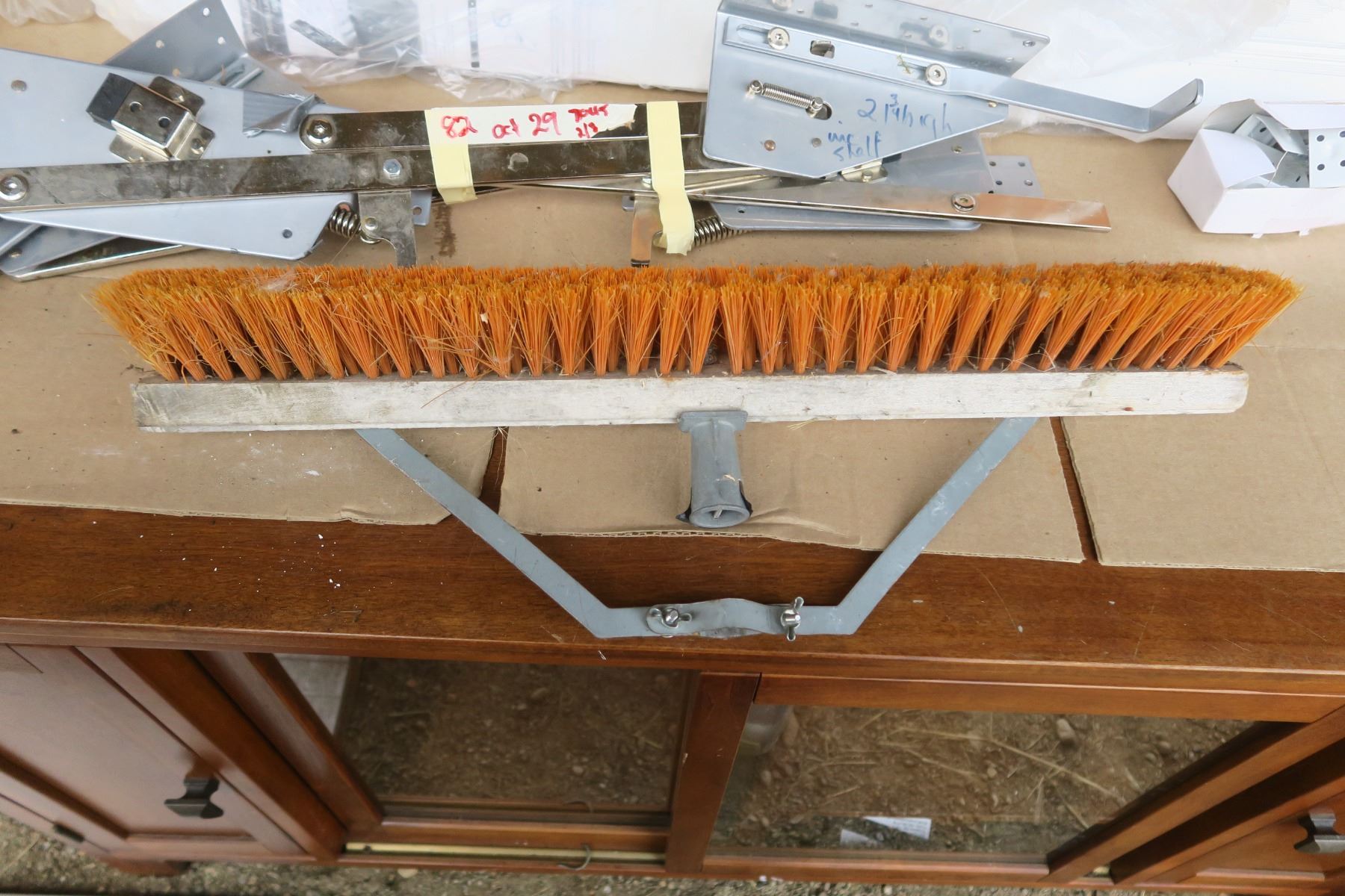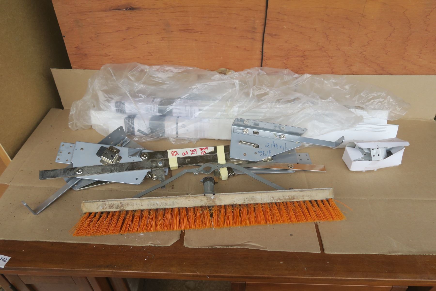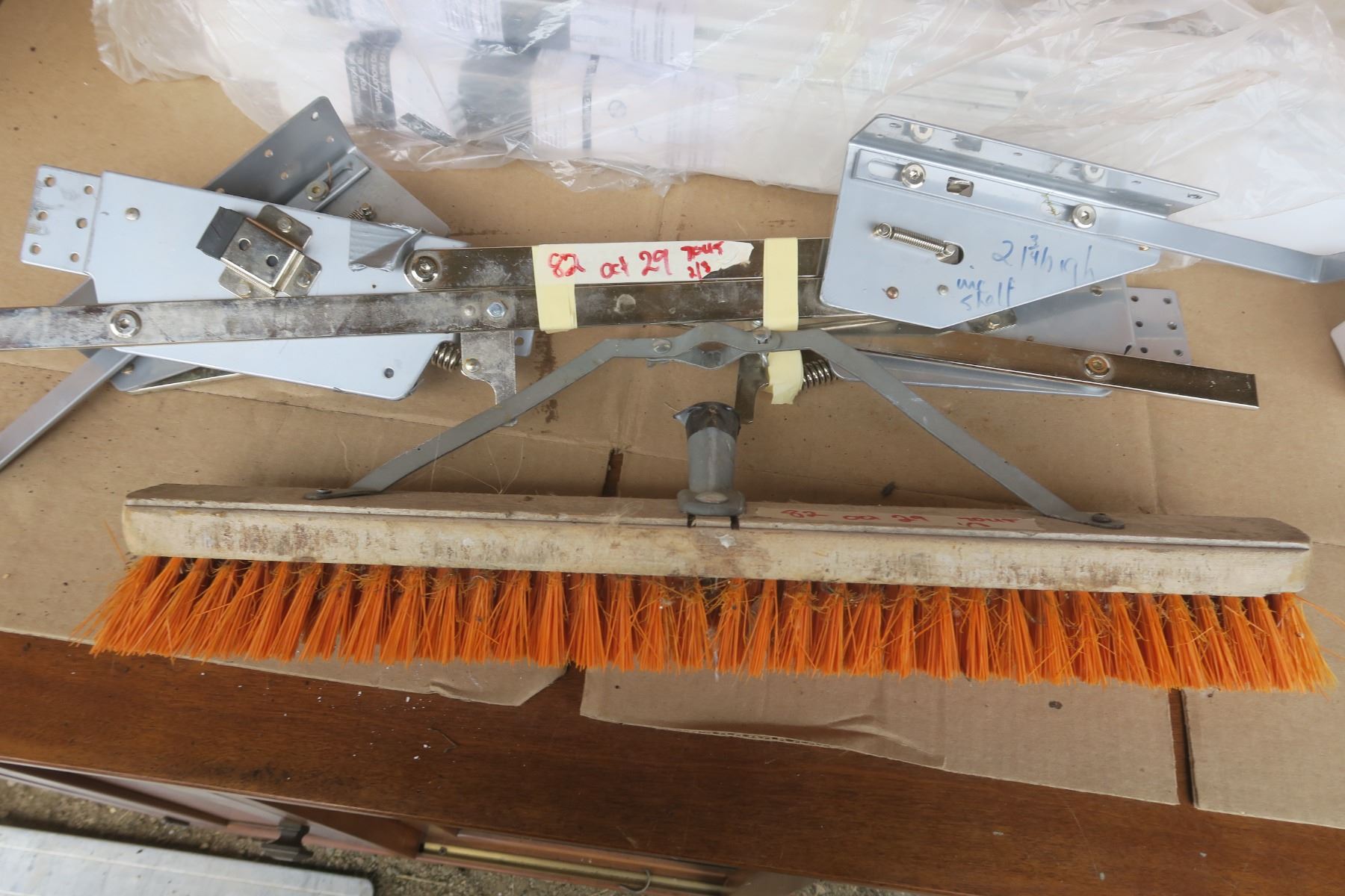 Misc lot, blind slats, heavy duty hinges, broom head