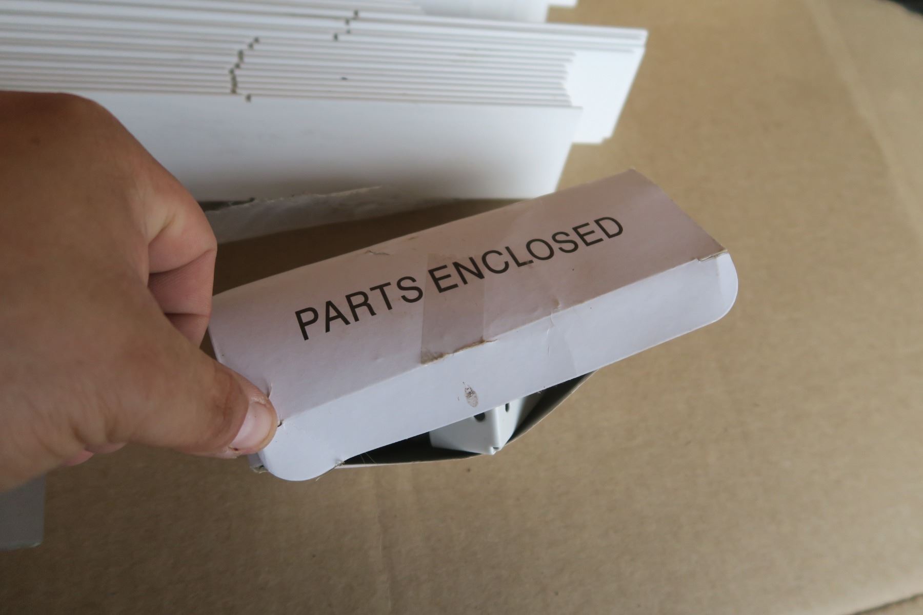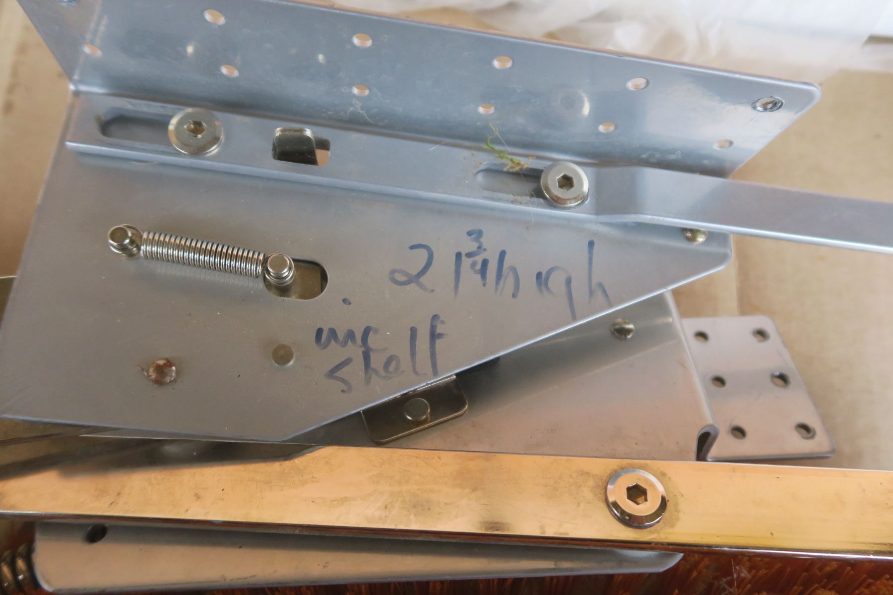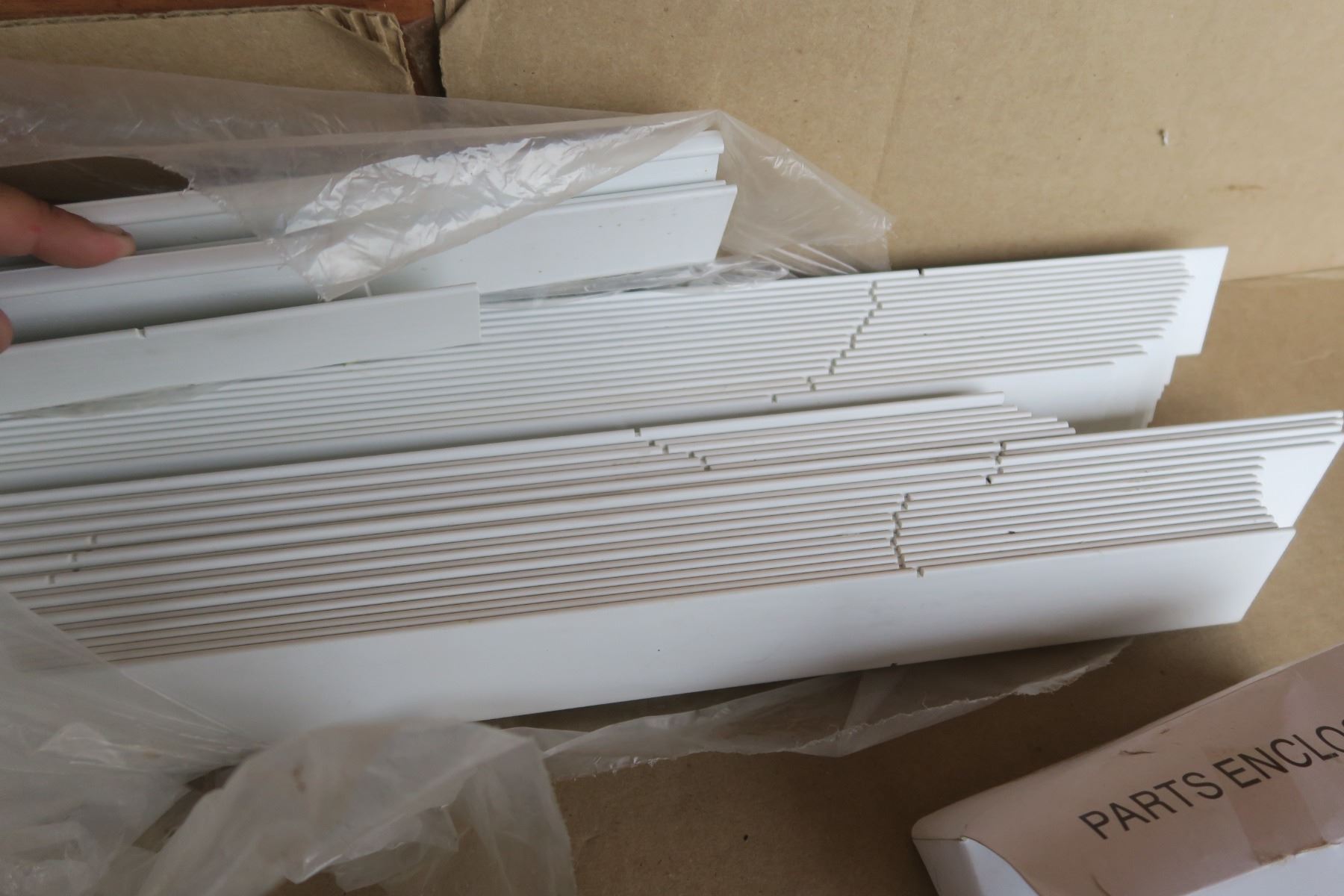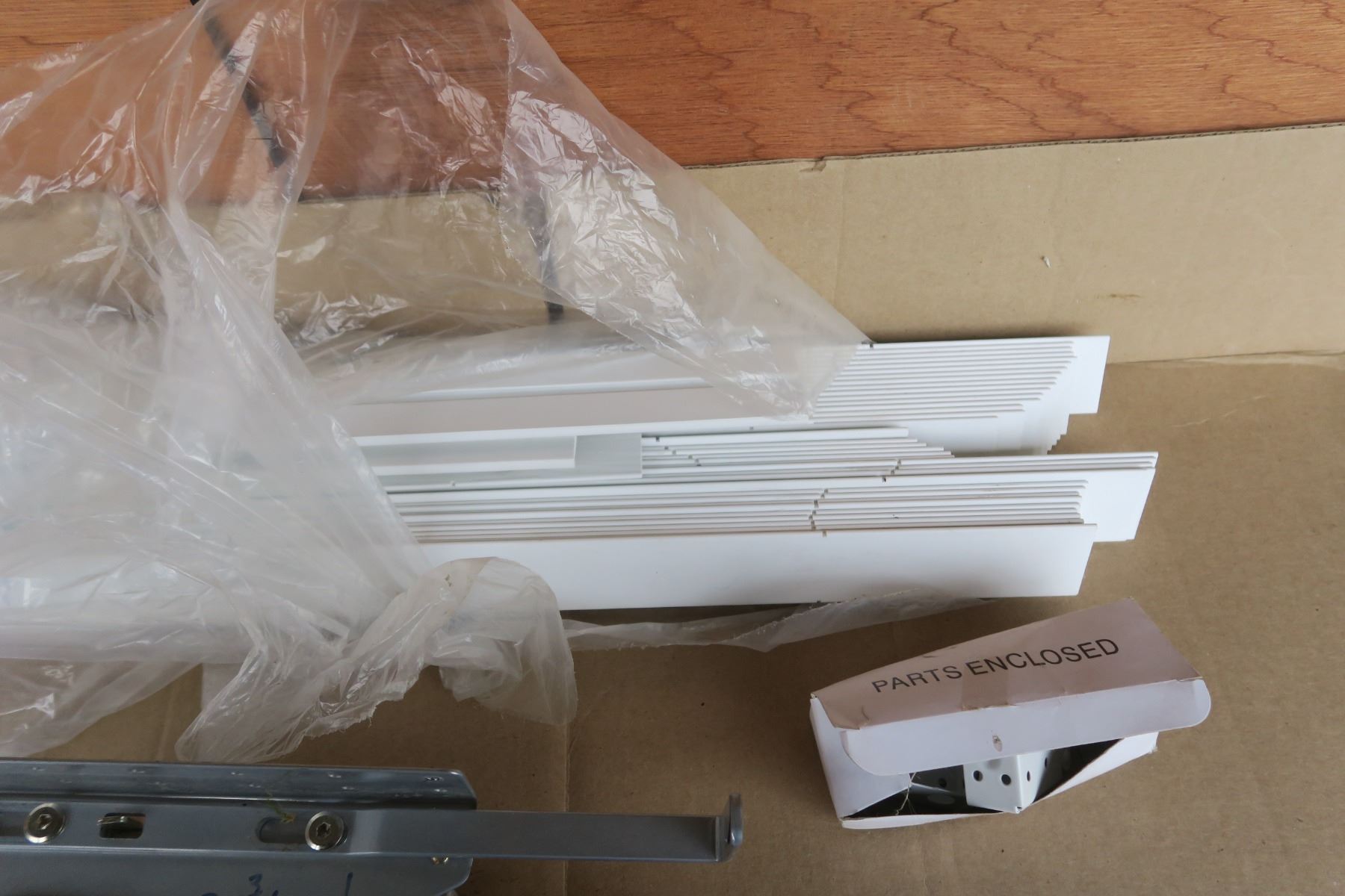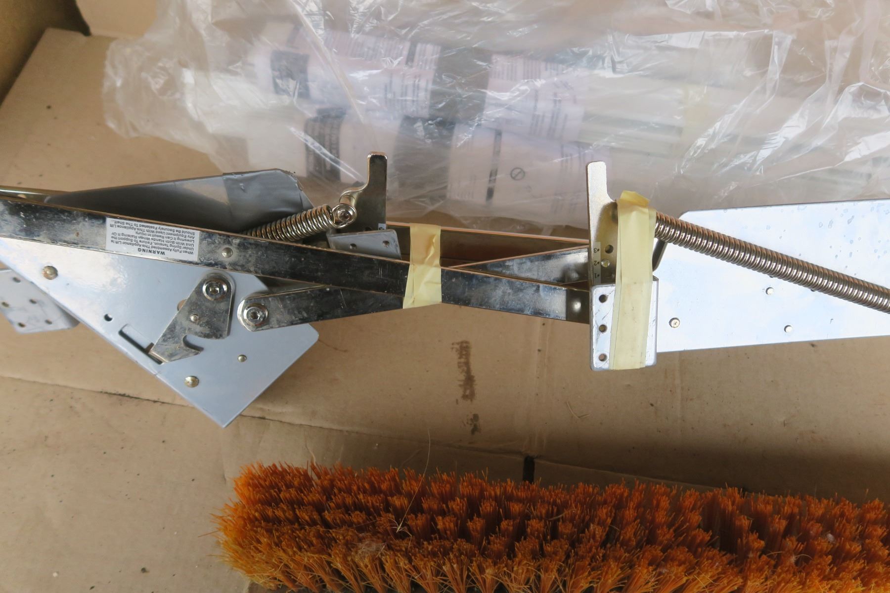 Misc lot, blind slats, heavy duty hinges, broom head