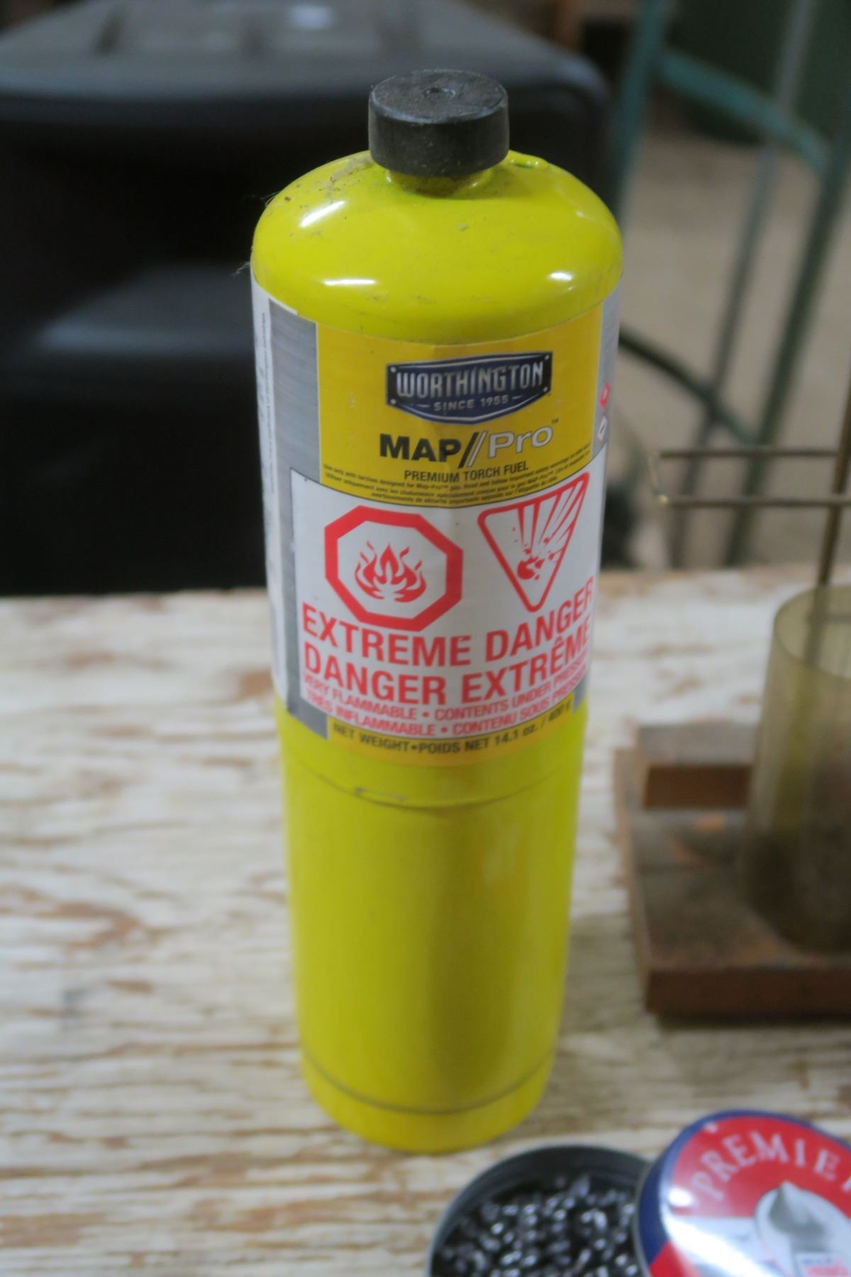 Misc lot of items , cans of .177 BB ammo, MAP-Pro bottle, lamp ..Etc..