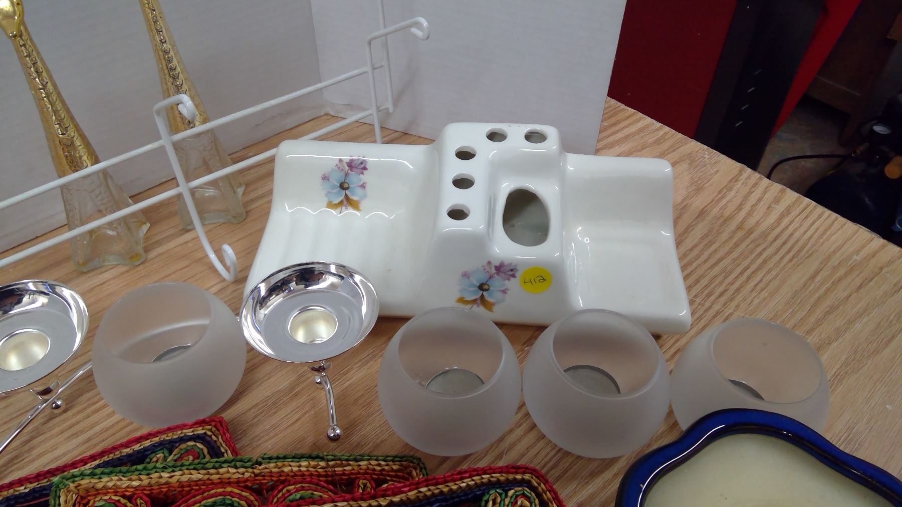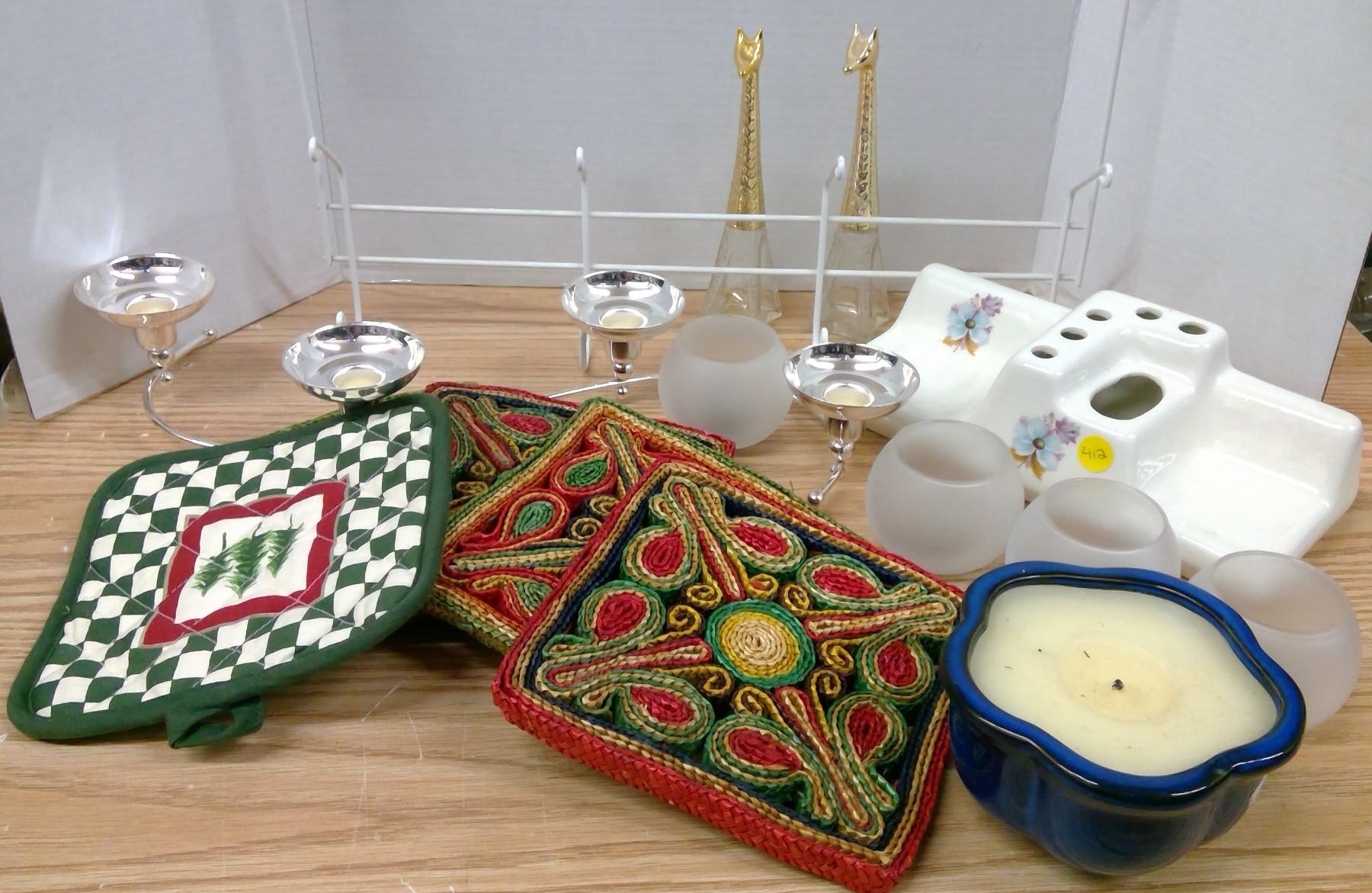 Miscelaneous Lot (Candle Holders, Toothbrush Holder, Potholders)