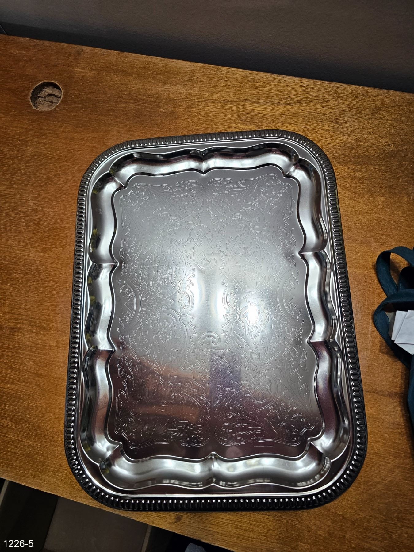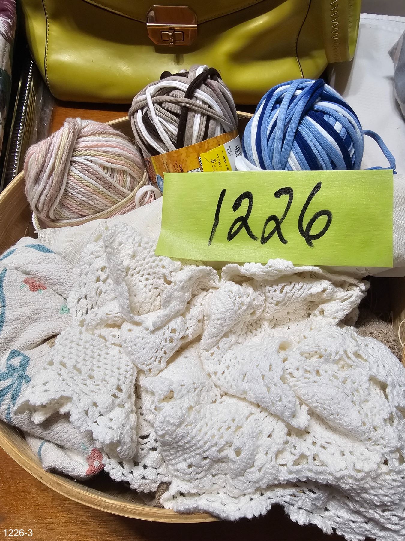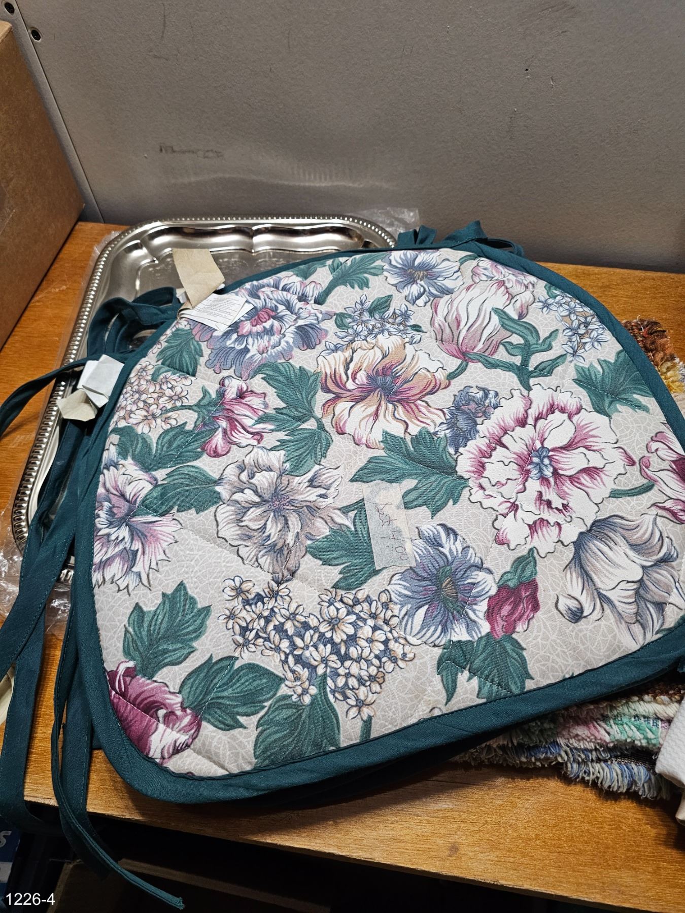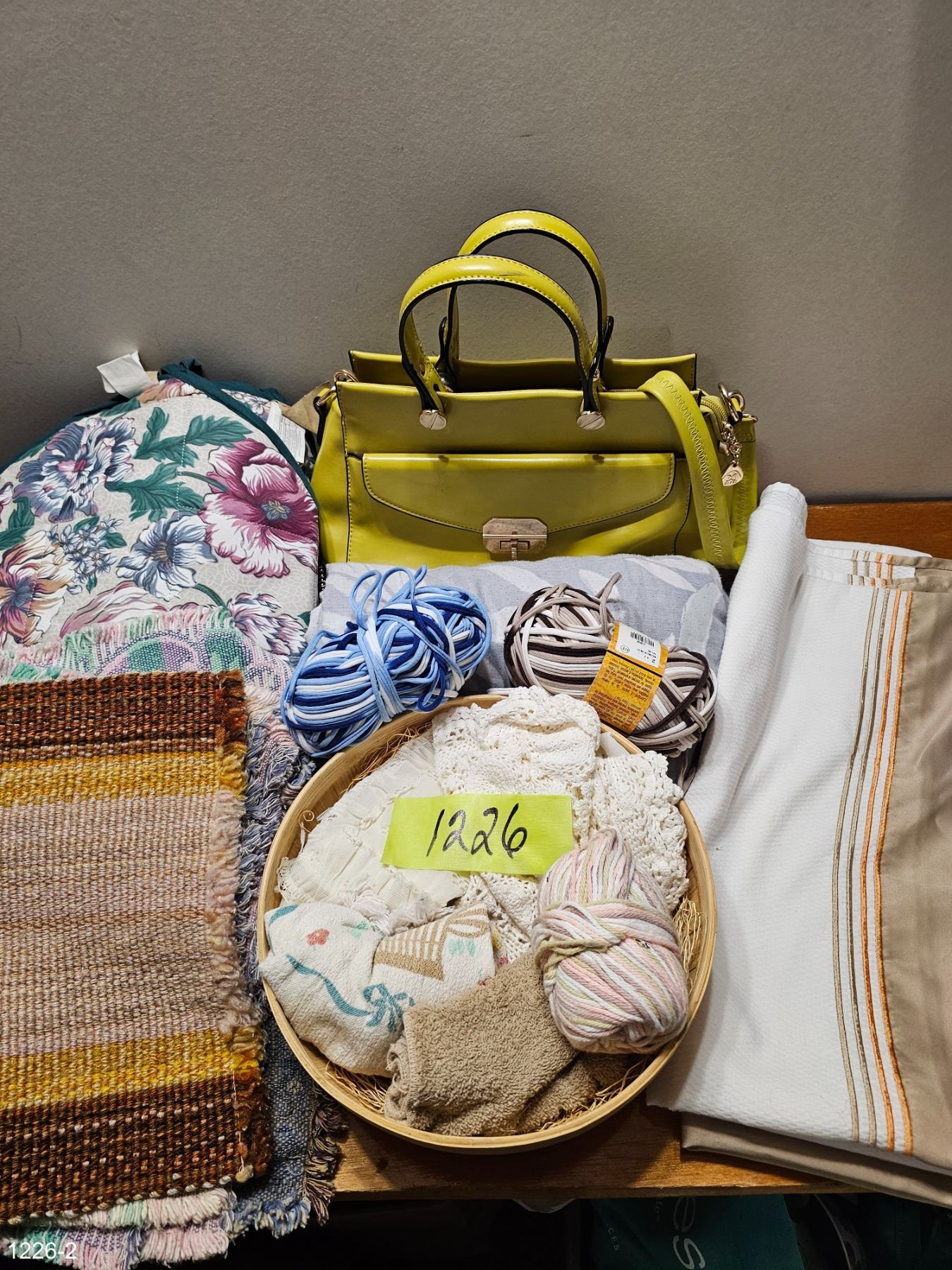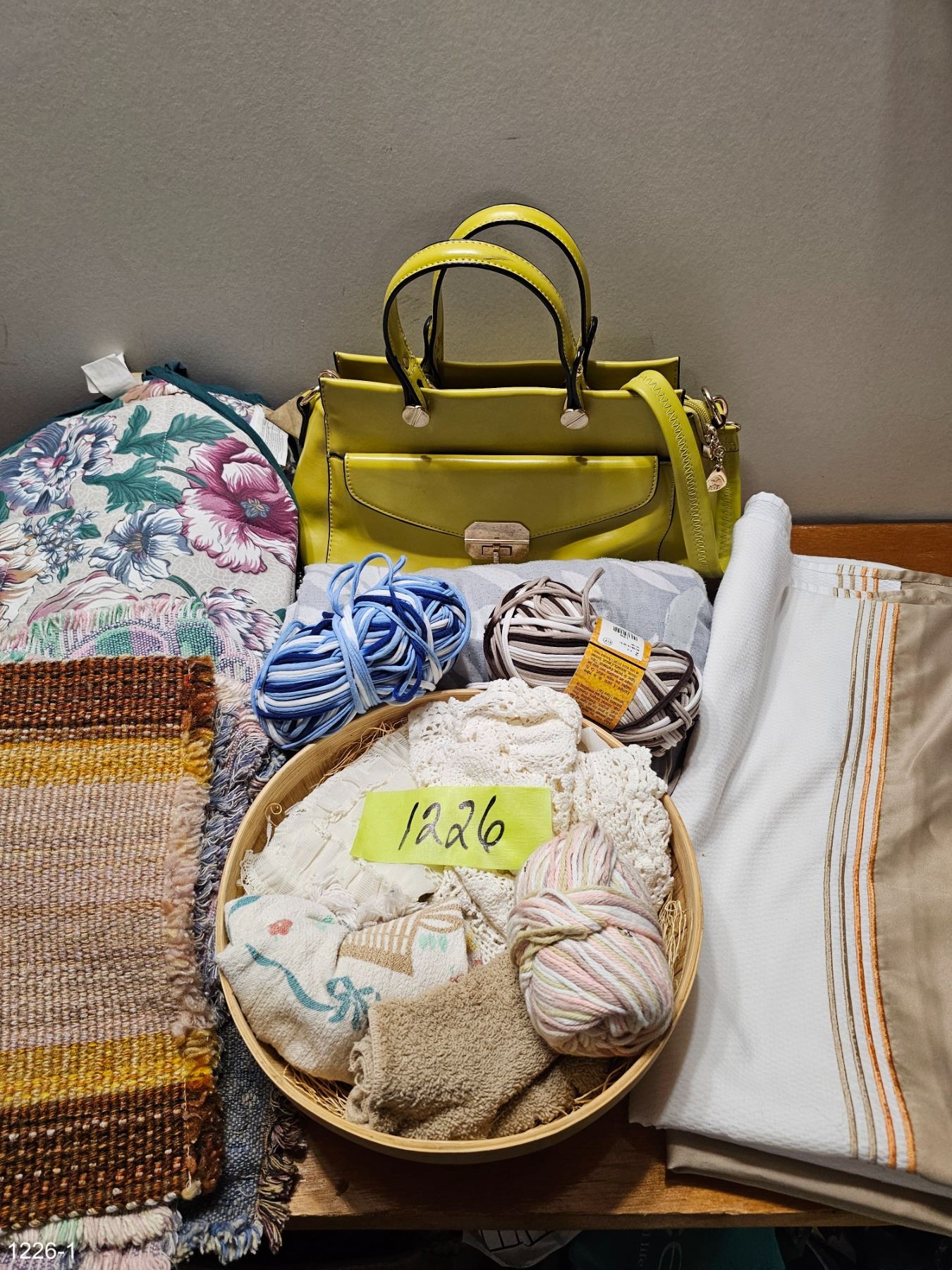 Miscellaneous items. Place mats, Chair Covers, Shower Curtain, Wool, four silver trays and a Purse