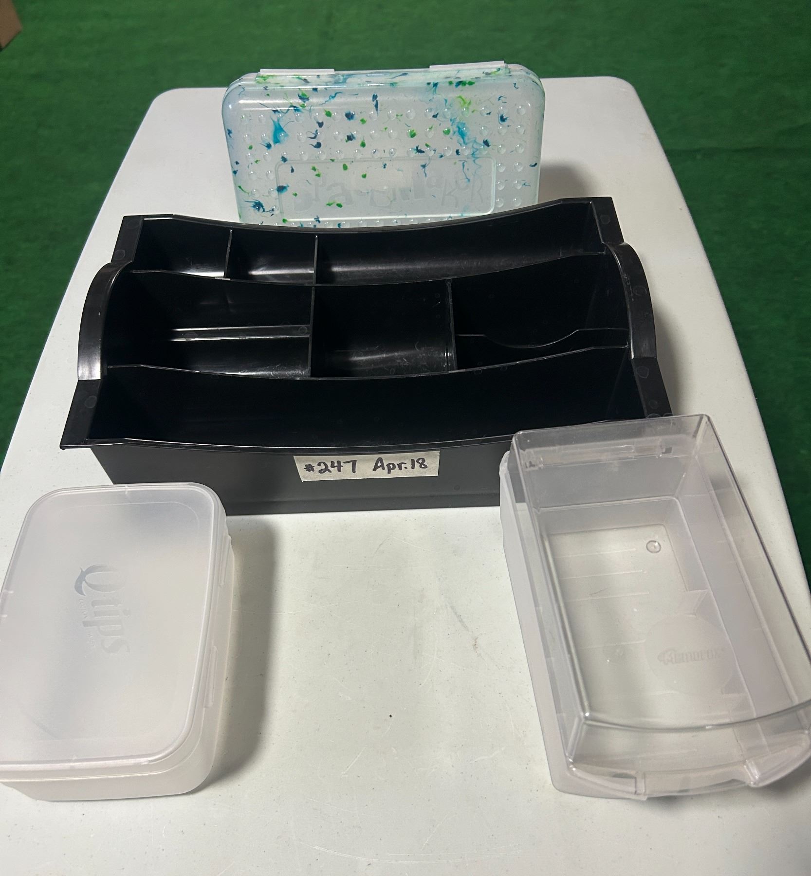 Miscellaneous storage boxes and organizer (organizer is 13”w x 8”d x 4”h)