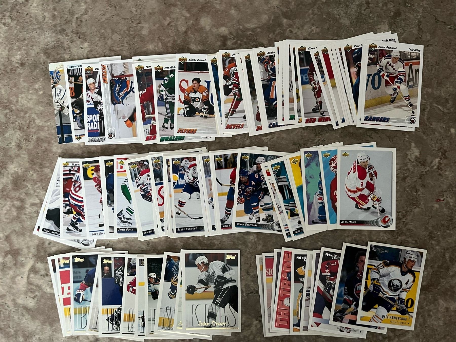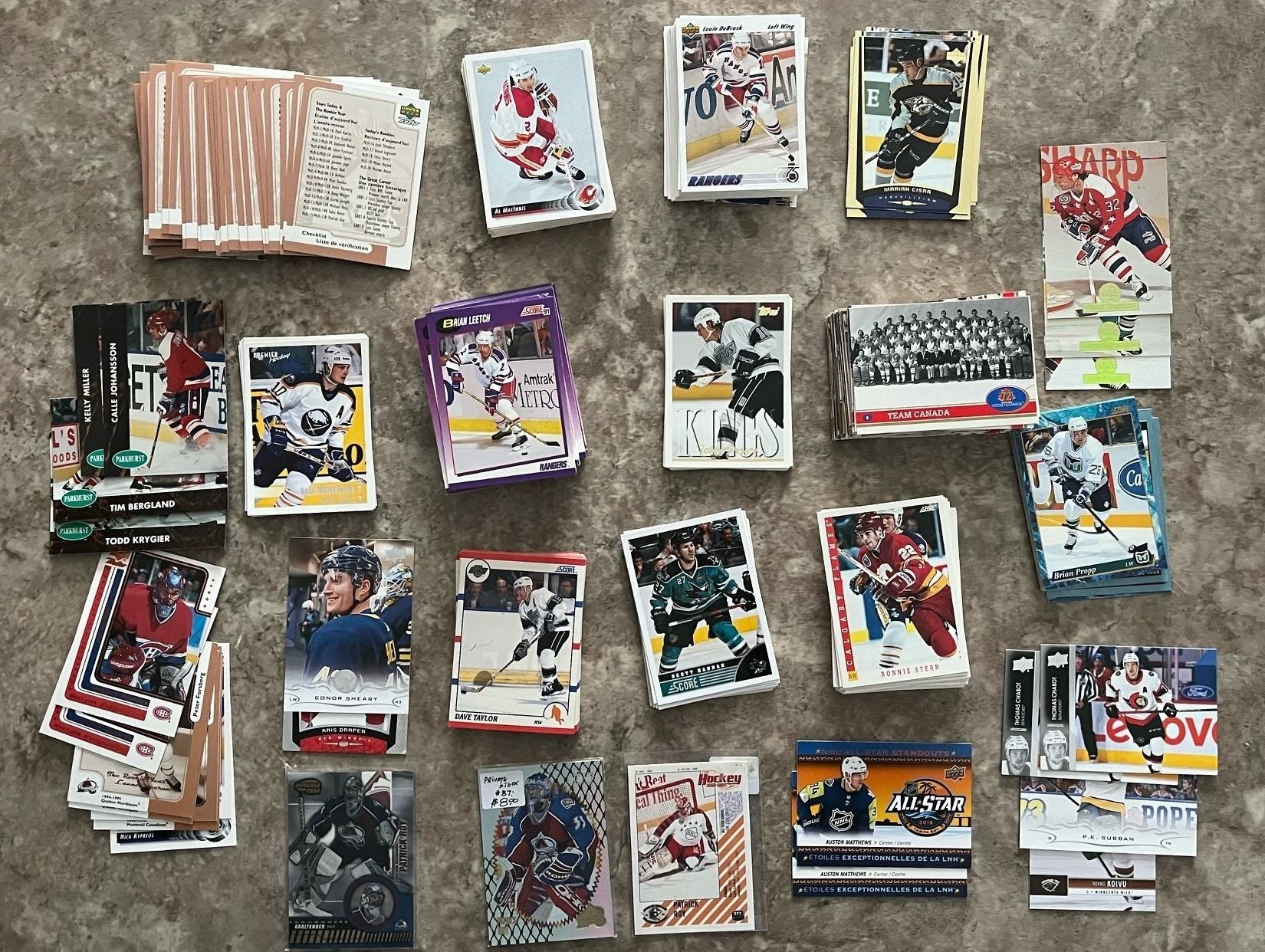 Mixed lot of 350+ hockey cards. Score, Premiere, Upper Deck, Topps, 72 Team Canada by Future Trends. Some duplicates.