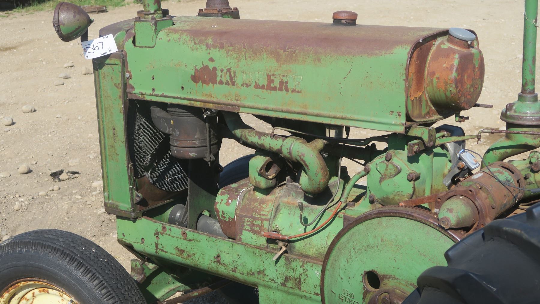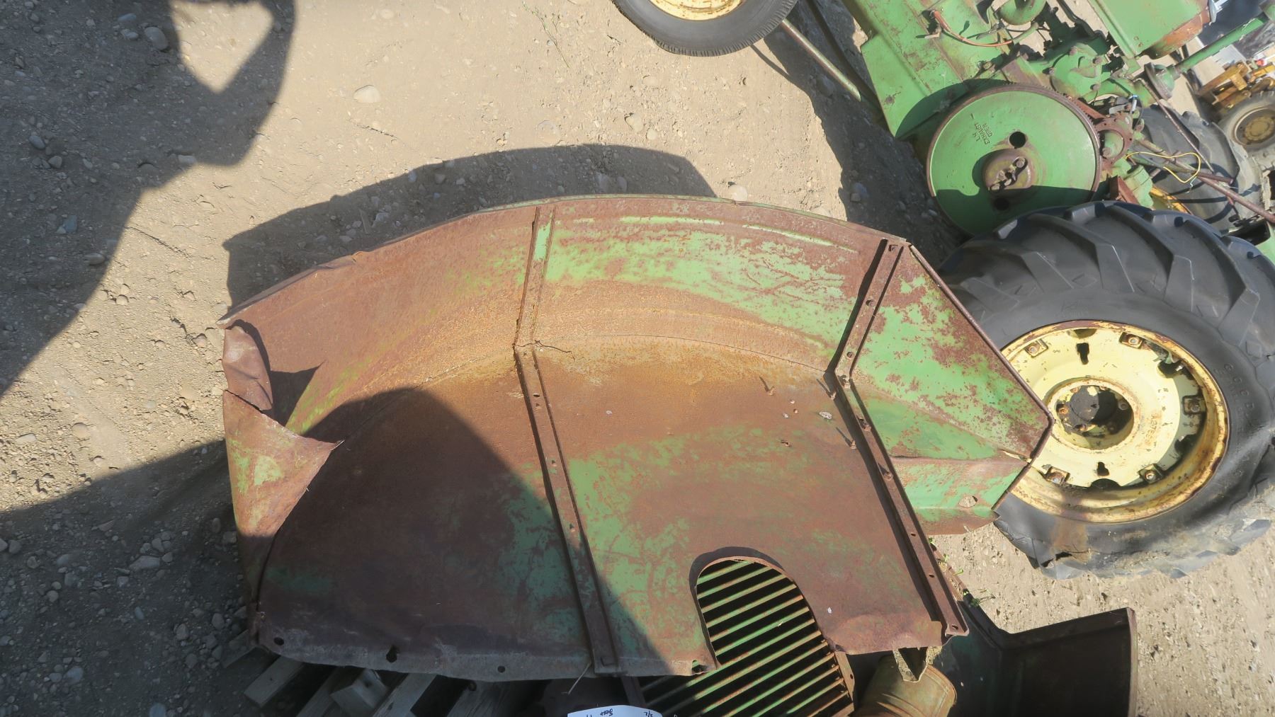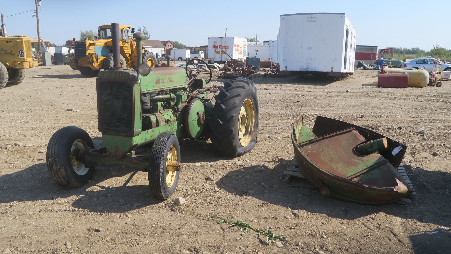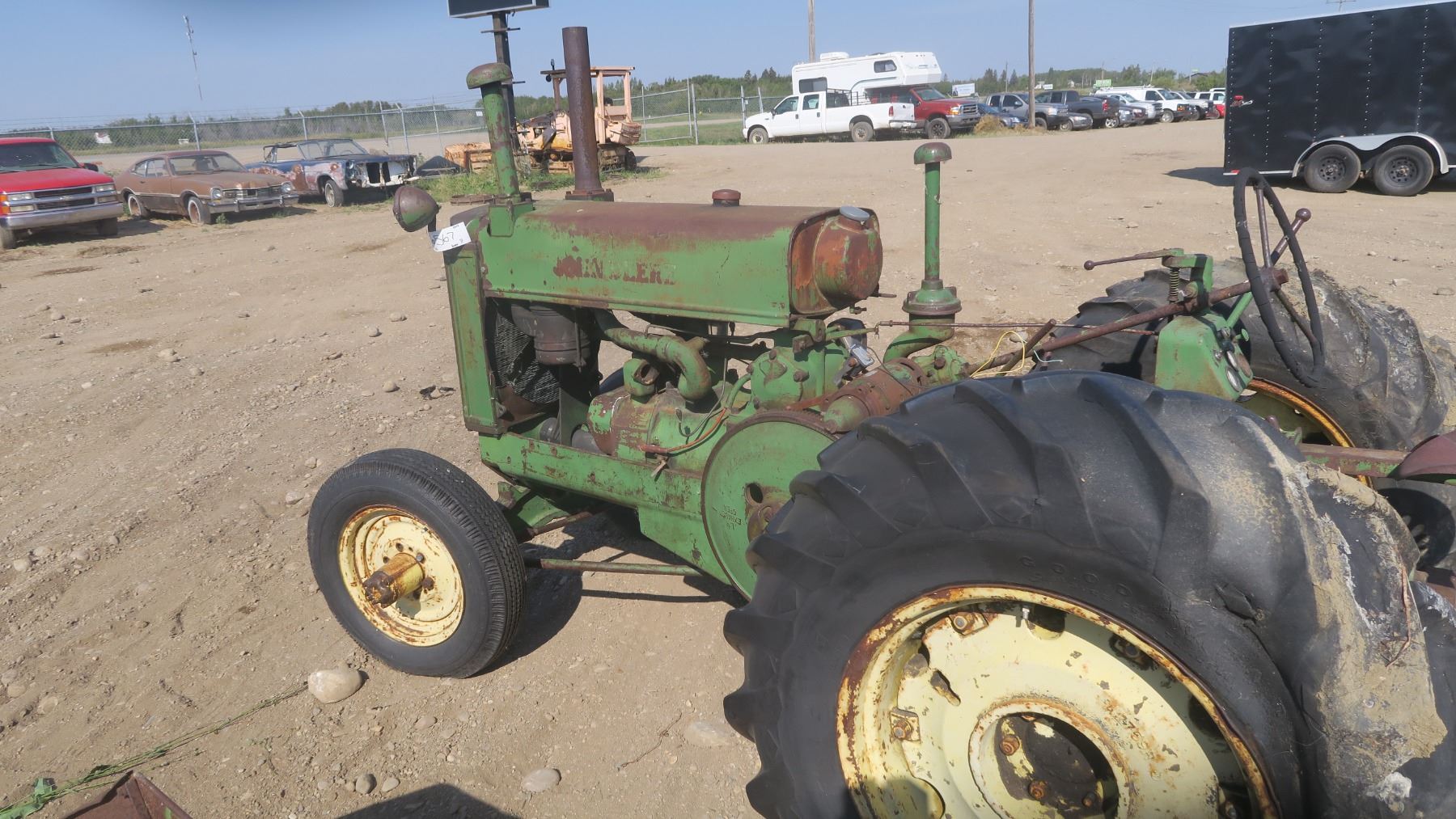 Model A John deer tractor #269444 with pallet of fenders and items for tractor.